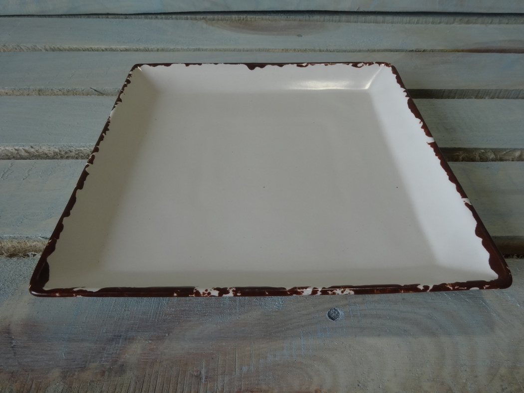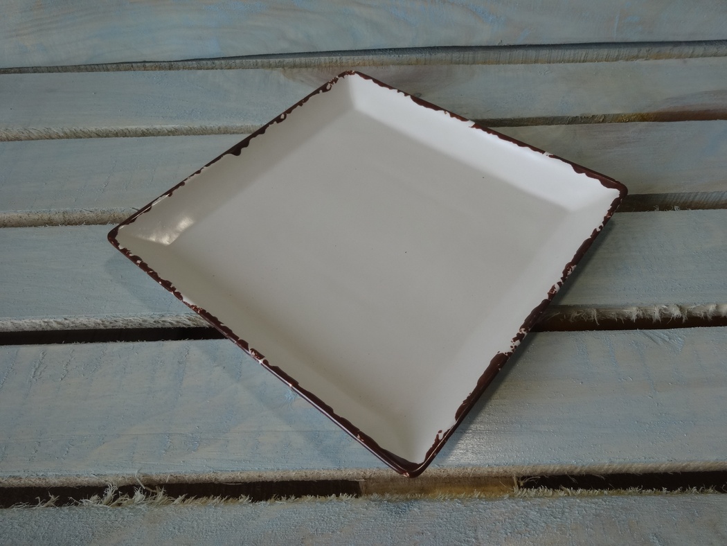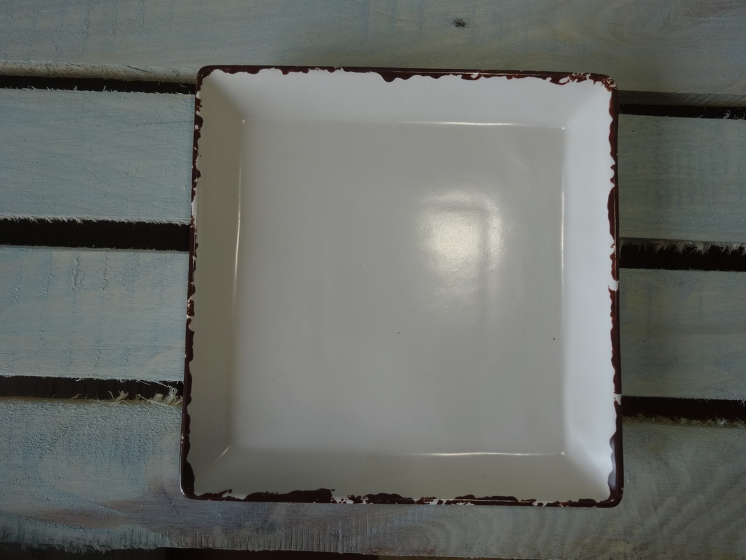 Большое блюдо квадратной формы. Такая форма практична, позволяет экономить место как при хранении так и при сервировке стола, блюда, поданные на таких тарелках, выглядят аппетитно и оригинально. Матовая поверхность.