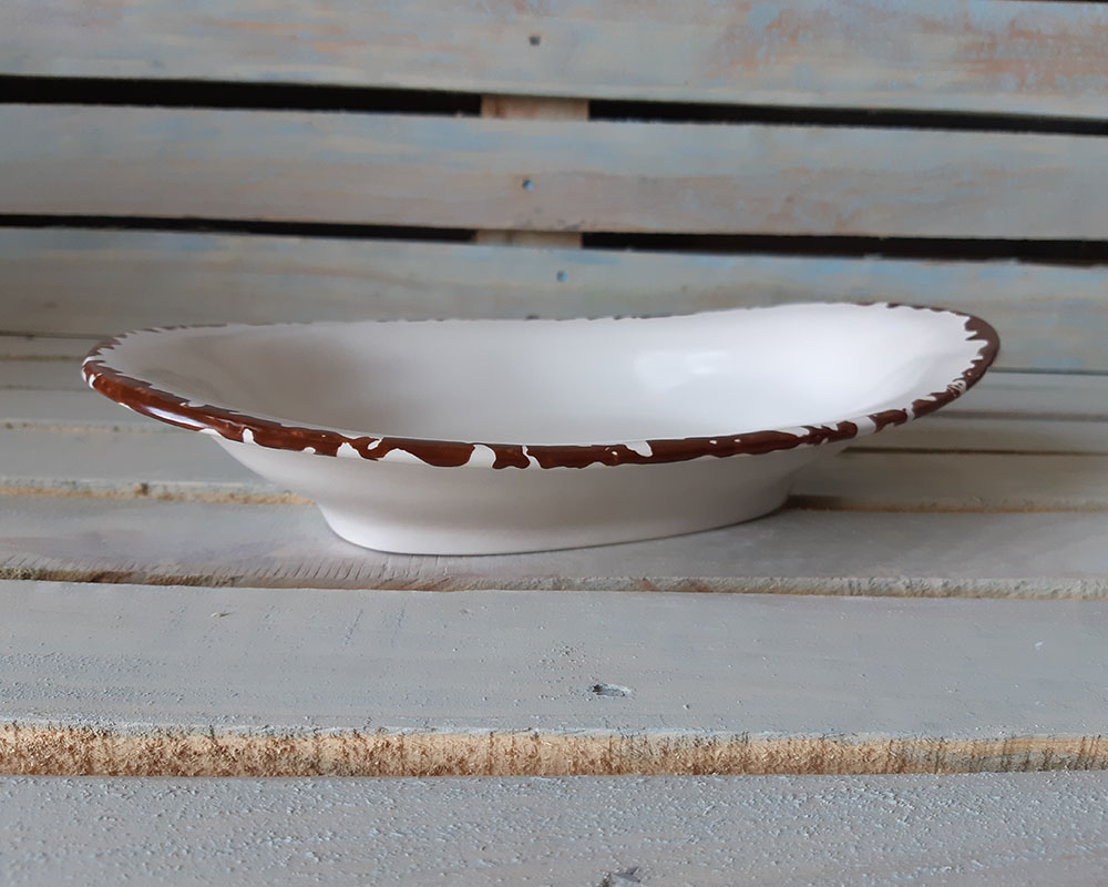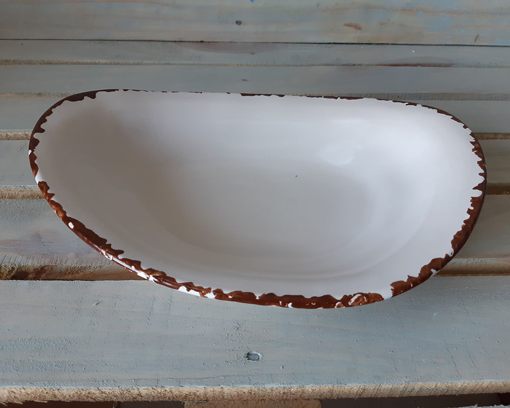 Тарелка неправильной формы. Грациозное и вместительное изделие будет настоящим украшением стола. Отличная идея для необычной подачи салатов или первых блюд. Является дополнением к тарелке barchetta. Тарелка пригодна для использования в микроволновой печи и посудомоечной машине. Глянцевая поверхность.