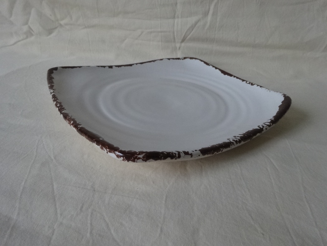 Тарелка ассиметричной формы с рельефной поверхностью. Оригинальная форма, утолщенные края. Для стильной подачи блюд и подчеркивания интерьера заведения. Пригодна для использования в посудомоечной машине и микроволновой печи. Матовая поверхность