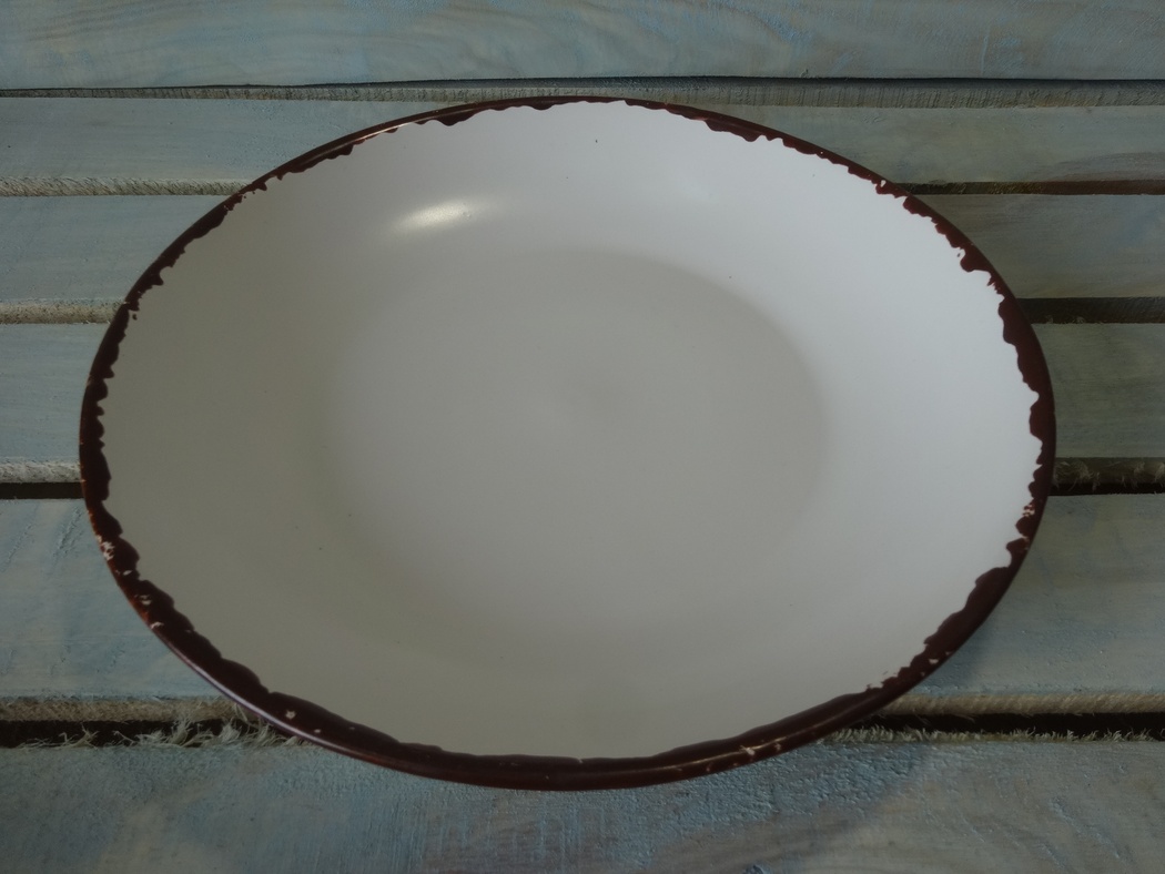 Тарелка большого диаметра с бортиками и широким дном позволяет сделать оригинальную выкладку блюда в соответствии с замыслом шеф-повара. Как говорится – ничего лишнего – поданное на такой тарелке блюдо не потеряется и будет выглядеть изысканно и аппетитно. Матовая поверхность.