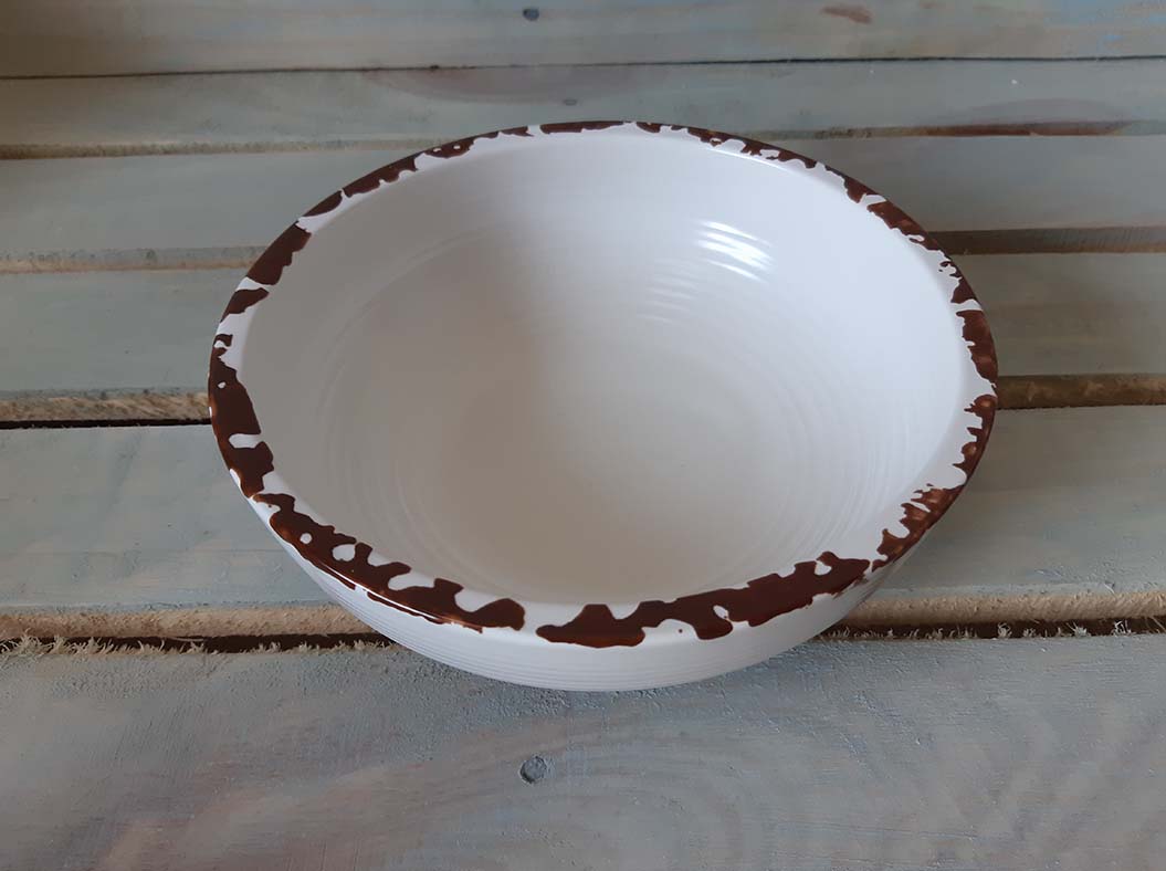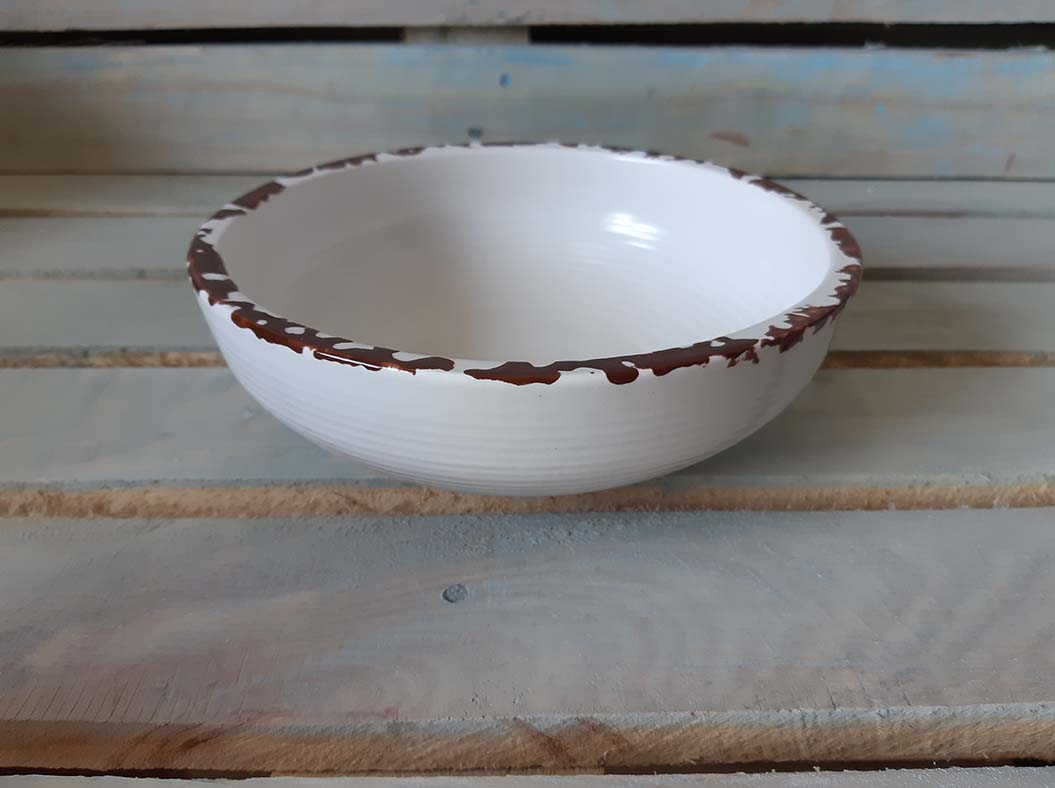 Фарфоровая тарелка, внутри и снаружи имеет рельеф, имитирующий работу гончара. Подача блюд в такой тарелке выглядит оригинально и загадочно. Модный тренд в современной сервировке. Пригодна для использования в посудомоечной машине и микроволновой печи. Матовая поверхность.