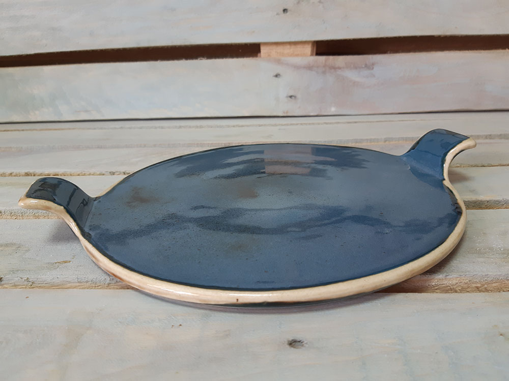 Фарфоровое блюдо для подачи сыра или другой нарезки. Стильное, удобное. Диаметр блюда без ручек - 25 см. Это довольно большая поверхность, на которой можно красиво разместить продукты. Пригодна для использования в посудомоечной машине и микроволновой печи. Зеркальная глянцевая поверхность с сине - голубыми загадочными разводами, бликами и чёрными крапинами.