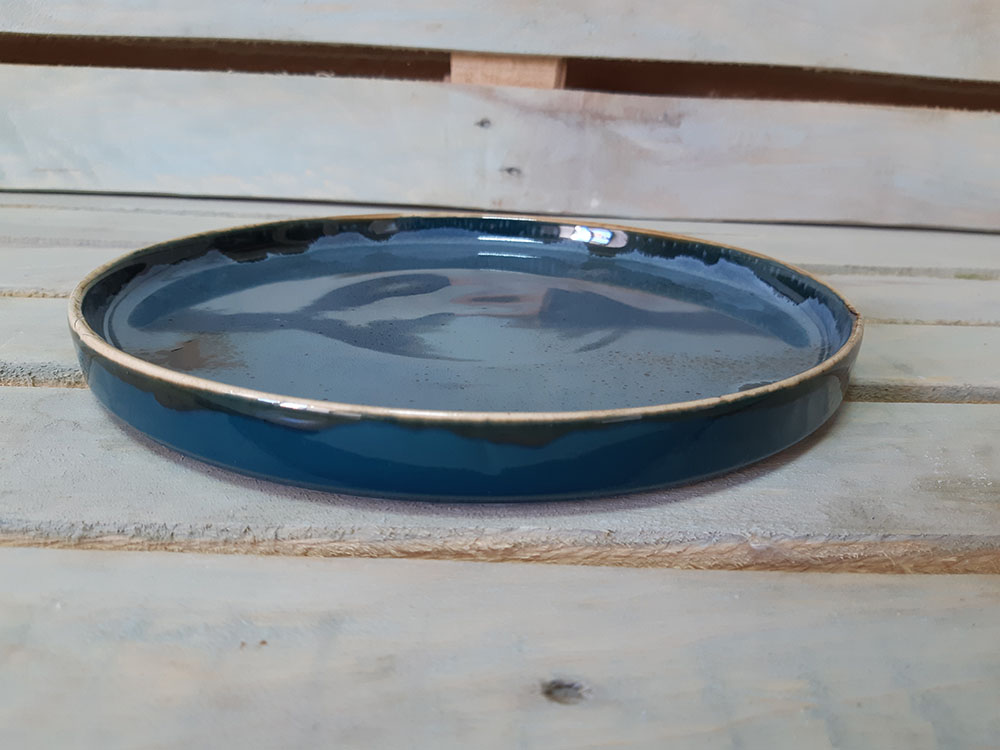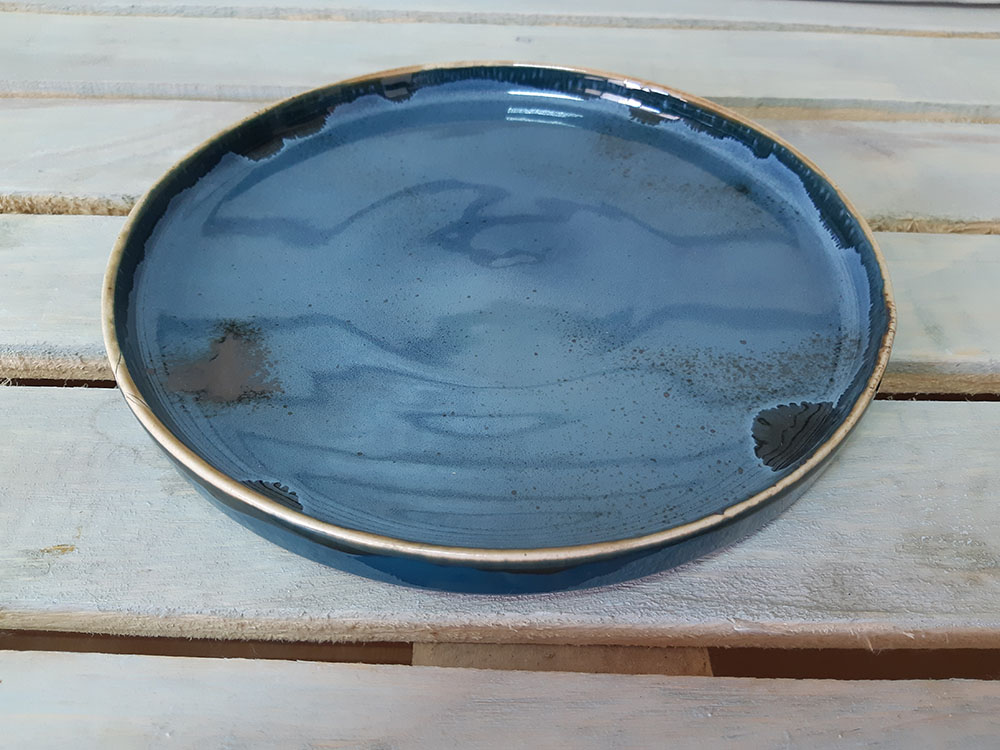 Наша тарелка идеально подходит для размещения сыров, закусок и нарезки, подачи или приготовления пиццы. Модная форма помогает красиво подать разнообразные кулинарные шедевры.Зеркальная глянцевая поверхность с сине - голубыми загадочными разводами, бликами и чёрными крапинами.