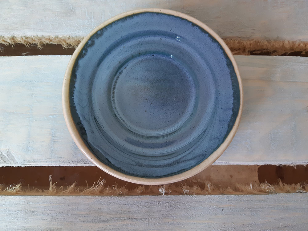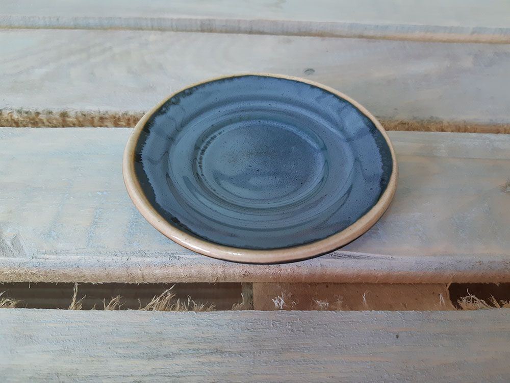 Универсальное малое блюдце для сервировки, может использоваться как подставка под чашку. Специальные бортики предотвращают соскальзывание чашки. Кроме того, эти маленькие тарелочки прекрасно украсят ваш стол. Зеркальная глянцевая поверхность с сине - голубыми загадочными разводами, бликами и чёрными крапинами.