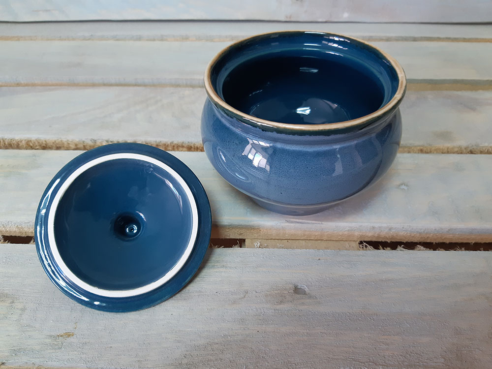 Особо прочный горшок для запекания и оригинальной подачи блюд. Классическая форма, которая позволяет сохранять тепло. Широкое горло горшочка очень удобно в применении. Пригоден для использования в посудомоечной машине и микроволновой печи. Зеркальная глянцевая поверхность с сине - голубыми загадочными разводами, бликами и чёрными крапинами.
