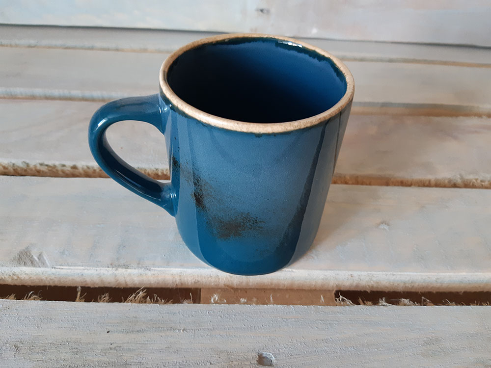 Классическая кружка объемом 0,35 л. Незаменима для подачи горячих и холодных напитков. Пригодна для использования в посудомоечной машине и микроволновой печи. Зеркальная глянцевая поверхность с сине - голубыми загадочными разводами, бликами и чёрными крапинами.