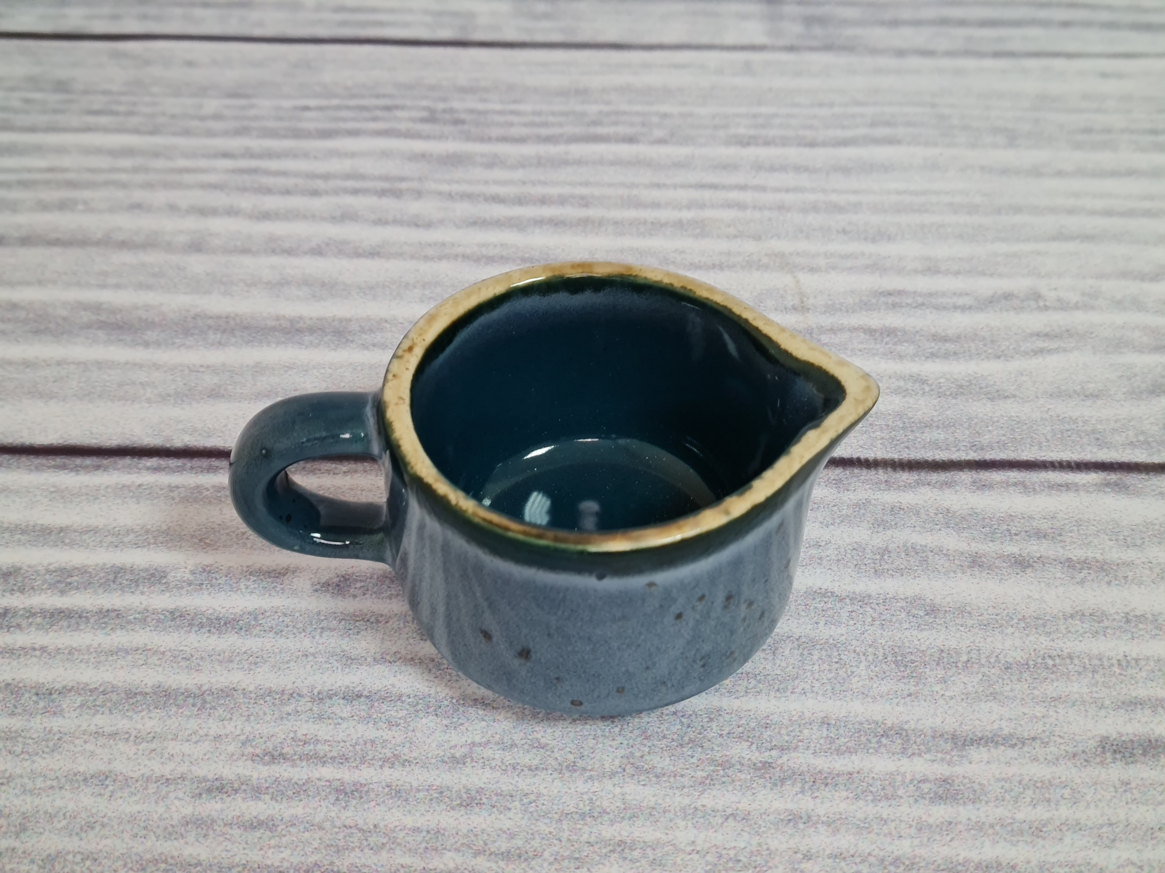 Элегантный маленький сливочник, который легко штабелируется и ставится один на один. Красивое миниатюрное изделие, которое будет приятным штрихом к полноценной сервировке. Зеркальная глянцевая поверхность с сине-голубыми с загадочными разводами, бликами и черными крапинами.