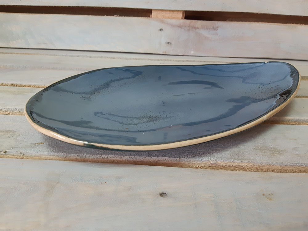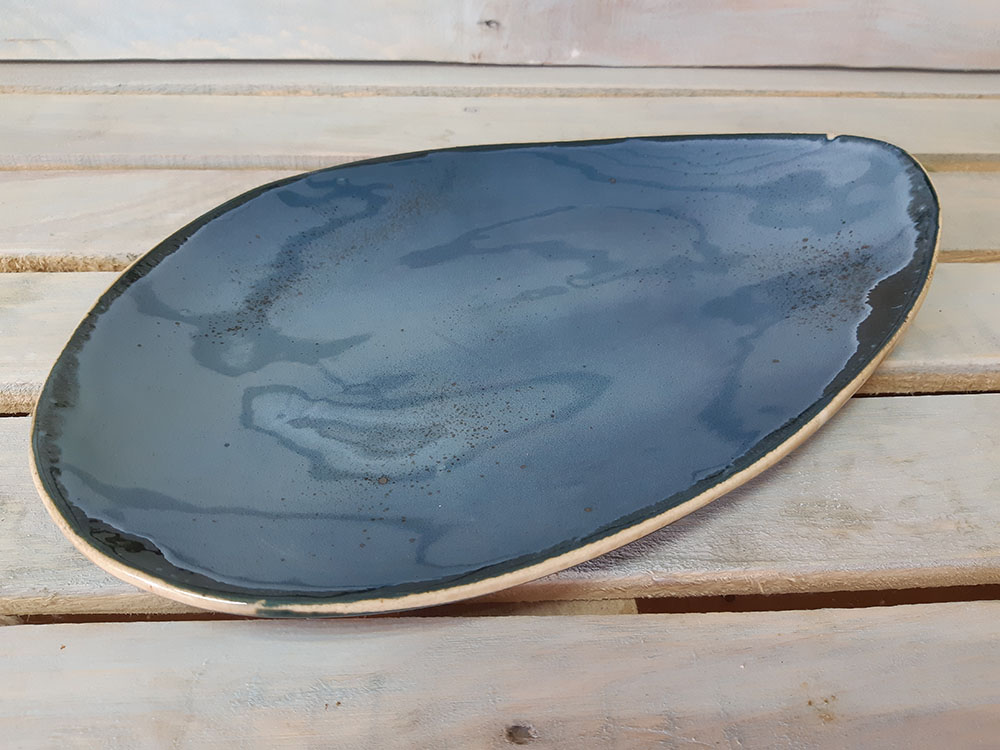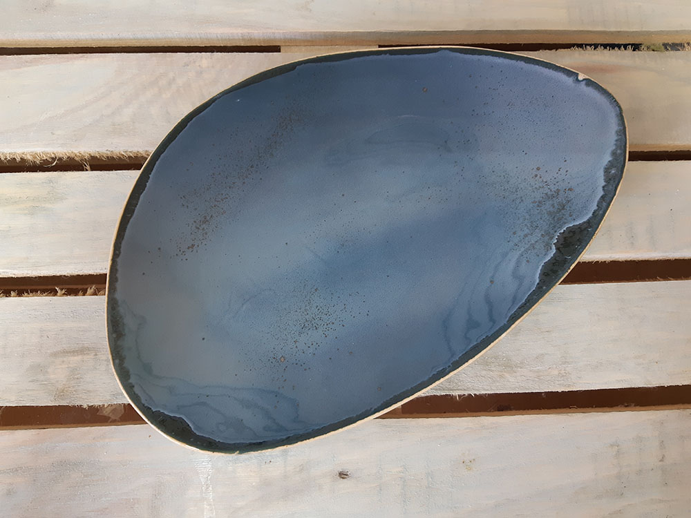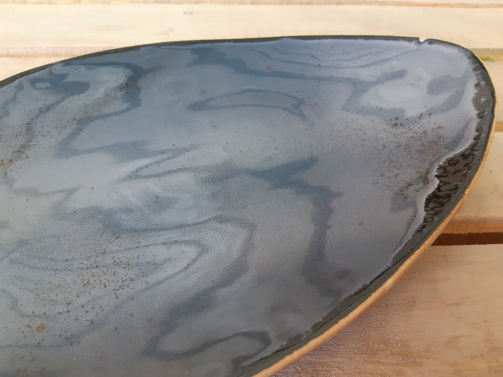Необычная форма тарелки моментально привлекает внимание любого посетителя ресторана. Большой размер сервировочной площади позволит разгуляться фантазии шеф-повара в оригинальной подаче. Является дополнением к тарелке barchetta profondo. Тарелка пригодна для использования в микроволновой печи и посудомоечной машине. Зеркальная глянцевая поверхность с сине - голубыми загадочными разводами, бликами и чёрными крапинами.