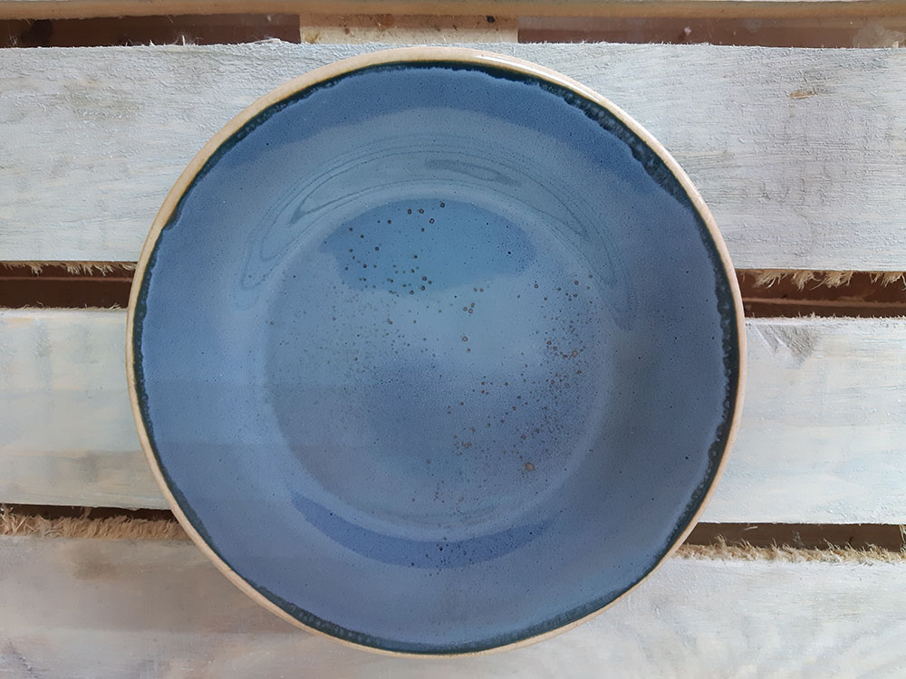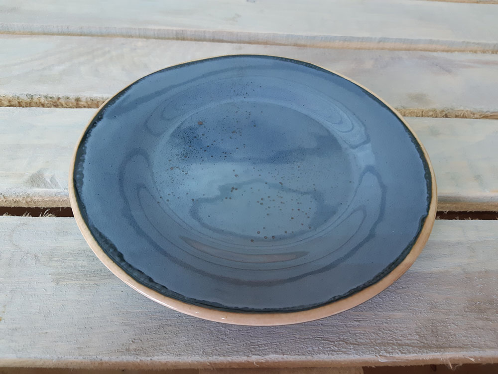 Удобная и практичная тарелка, имеющая утолщенный край. Пригодна для использования в посудомоечной машине и микроволновой печи. Зеркальная глянцевая поверхность с сине - голубыми загадочными разводами, бликами и чёрными крапинами.