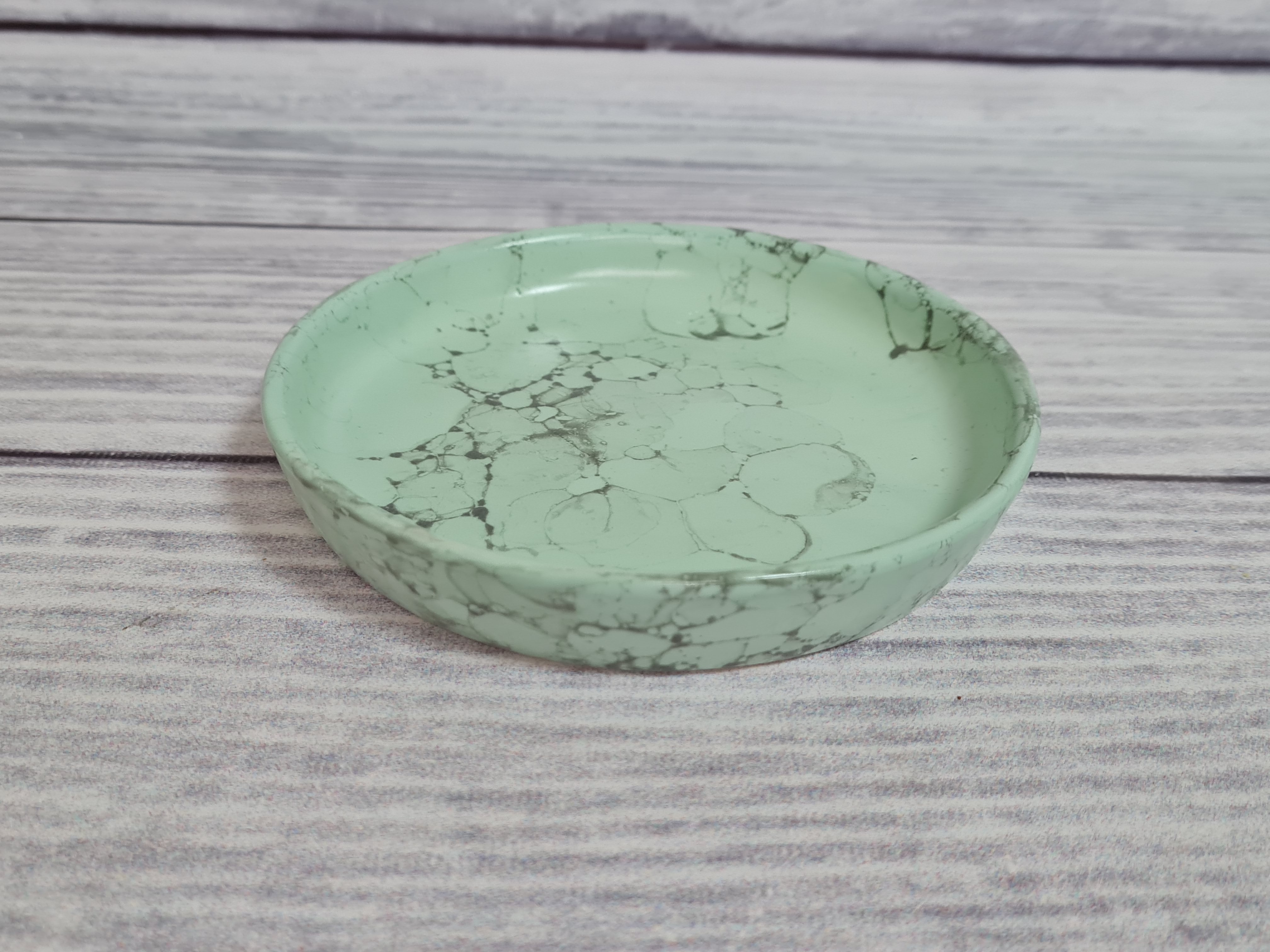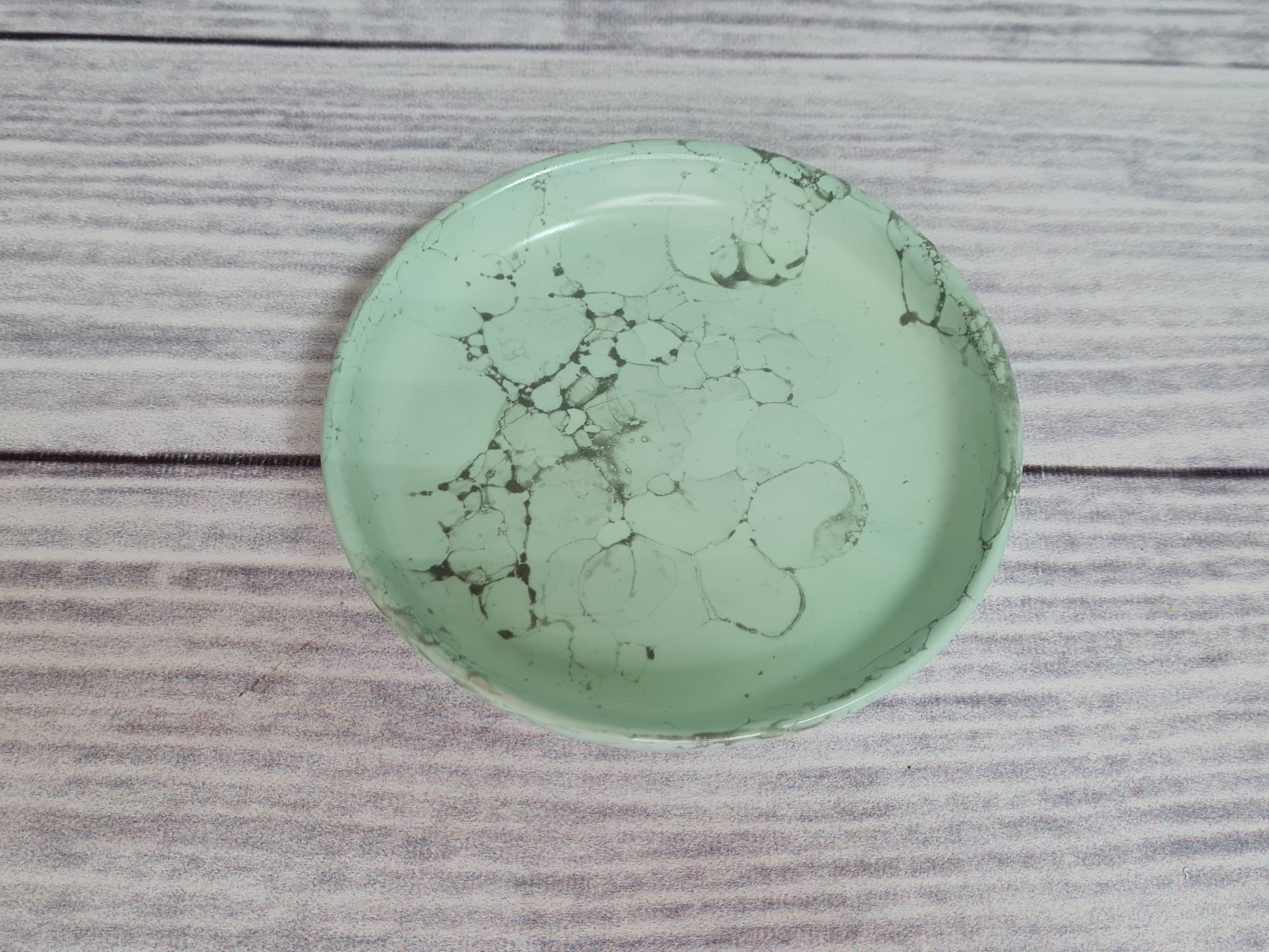 Компактная тарелка сочетает в себе элегантный дизайн с максимальной функциональностью. Поданное на такой тарелке блюдо будет выглядеть необычно, вкусно и модно. Подходит для использования в микроволновой печи и посудомоечной машине. Матовая поверхность мятного цвета с серыми разводами.