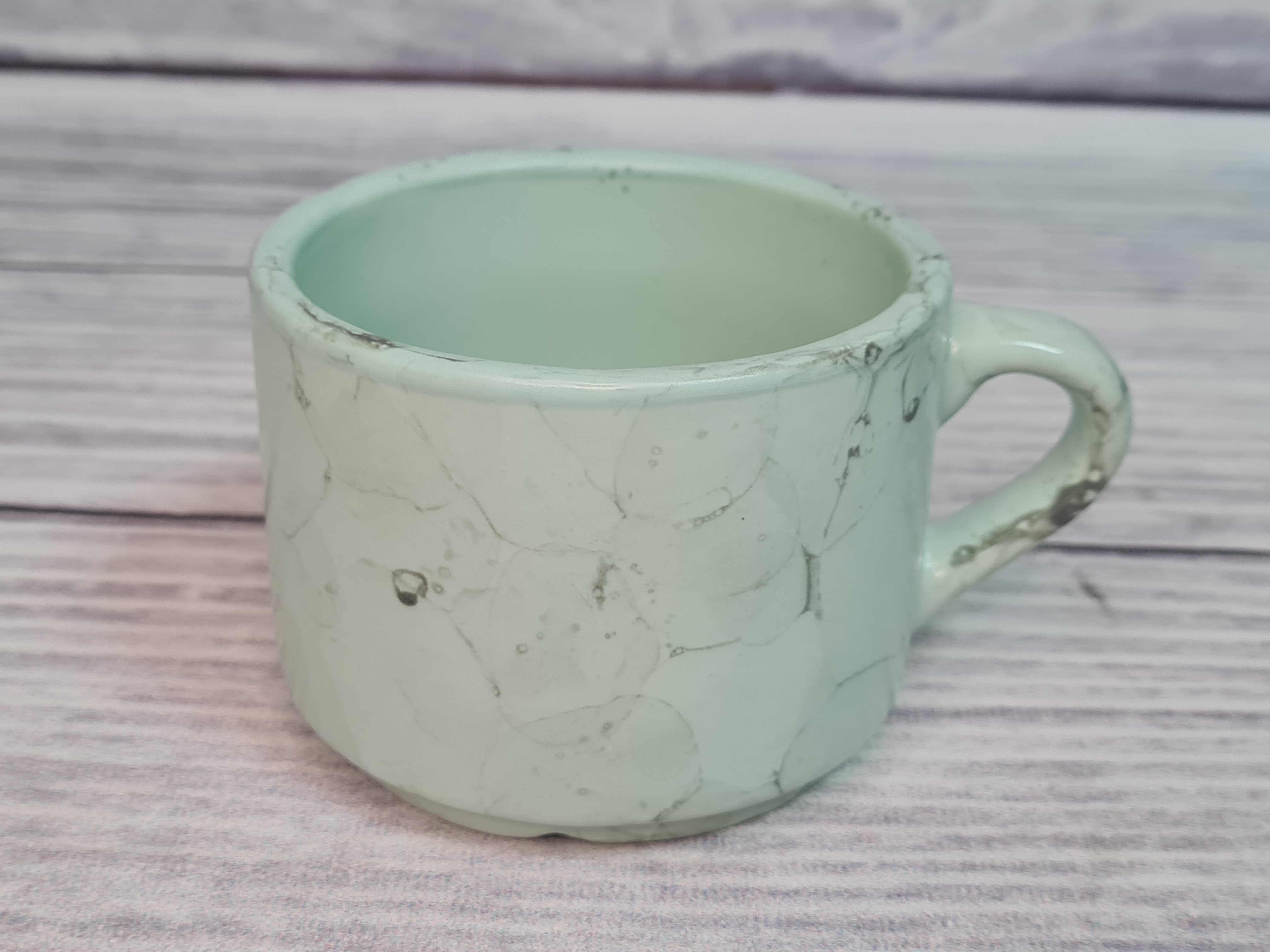 Оригинальная штабелируемая чашка. Идеально подойдет для подачи как капучино, так и чая. Штабелируется и экономит место. Пригодна для использования в посудомоечной машине и микроволновой печи. Матовая поверхность мятного цвета с серыми разводами.