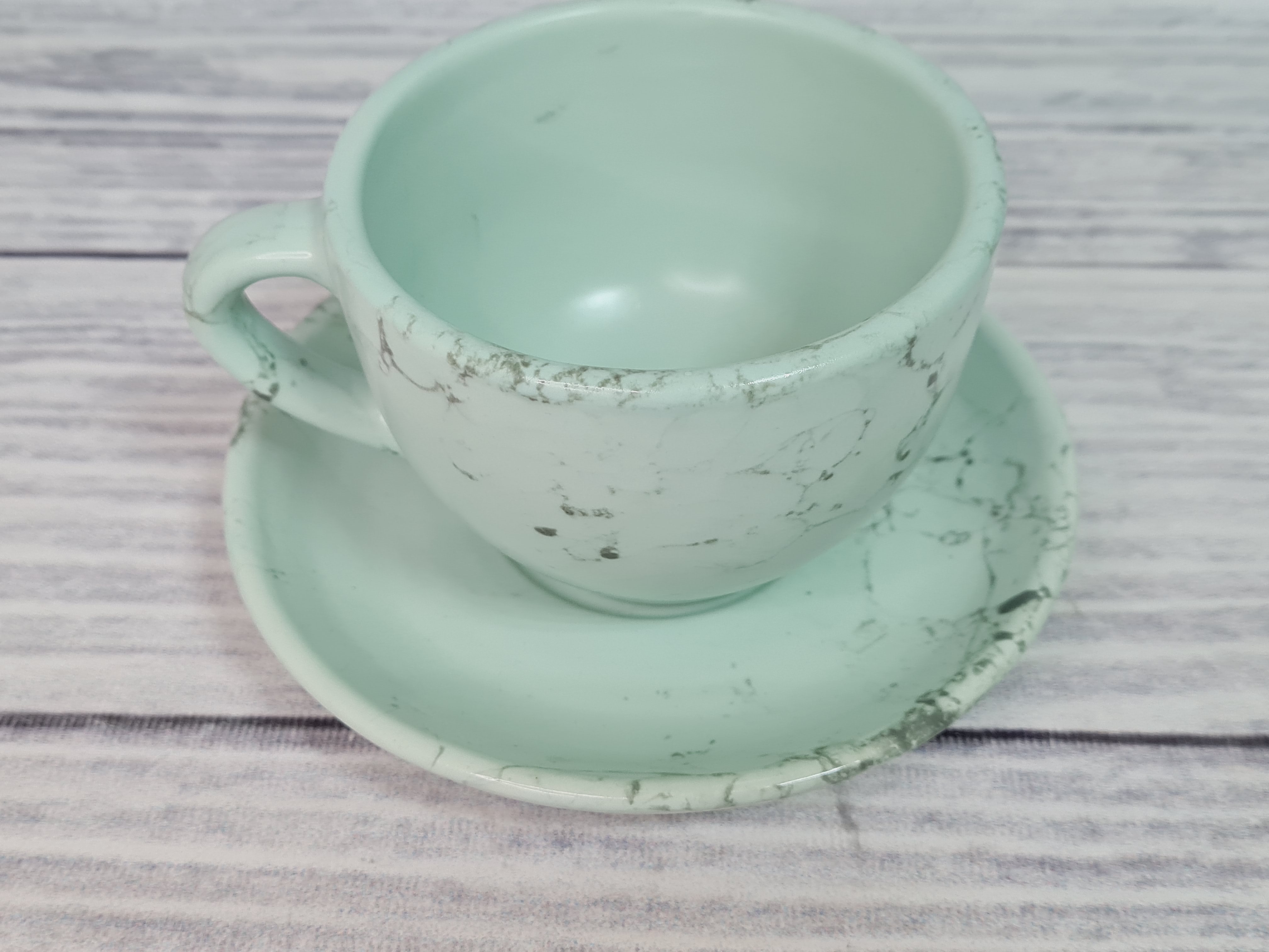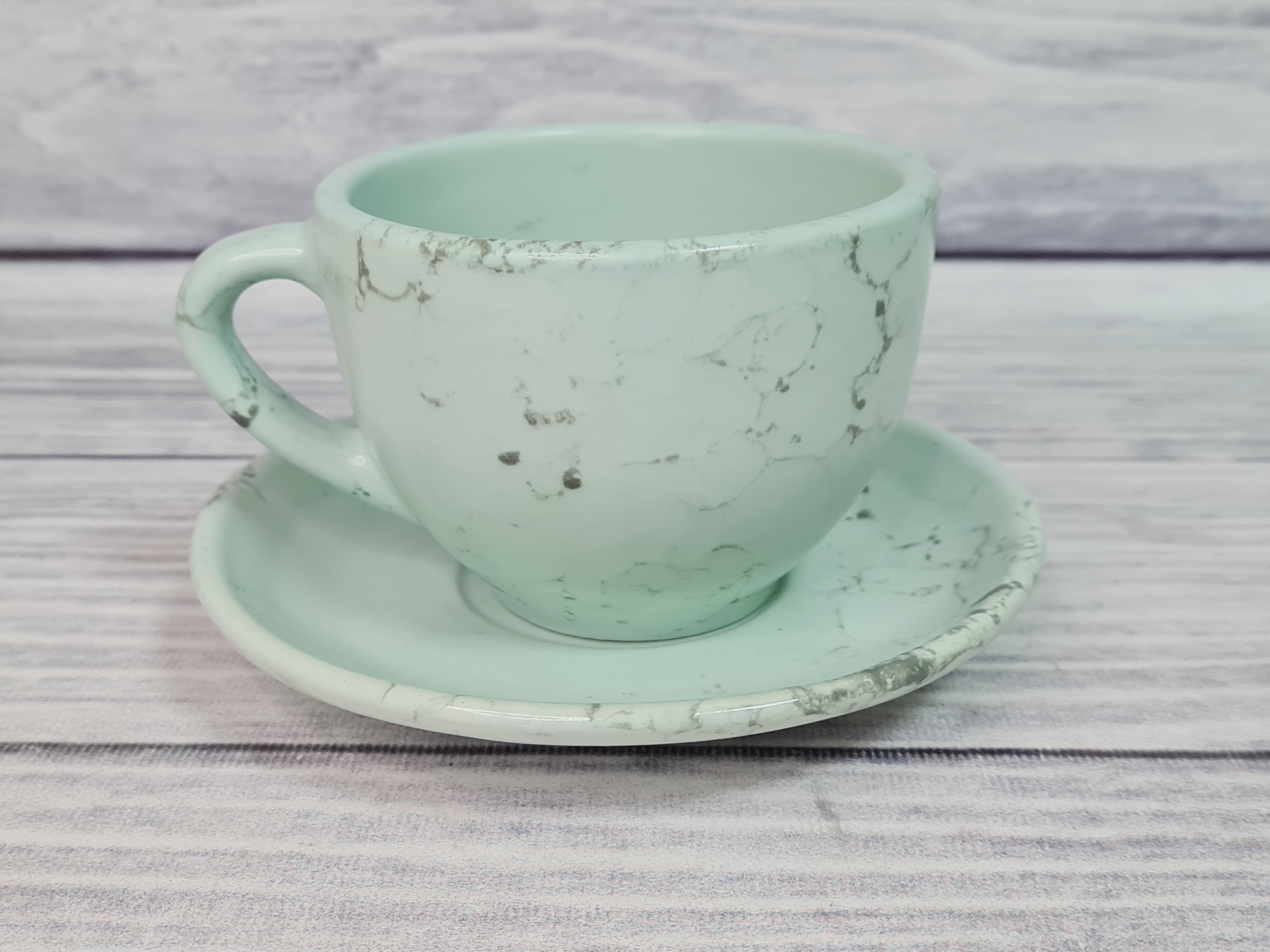Чашка raffinato имеет форму полусферы, она очень удобна в использовании. Чашка raffinato выполнена из фарфора и обладает отличным качеством, хорошо сохраняет тепло и смотрится очень элегантно и эстетично. Предназначена для подачи горячих и холодных напитков. В комплект также входит практичное блюдце. Матовая поверхность мятного цвета с серыми разводами.