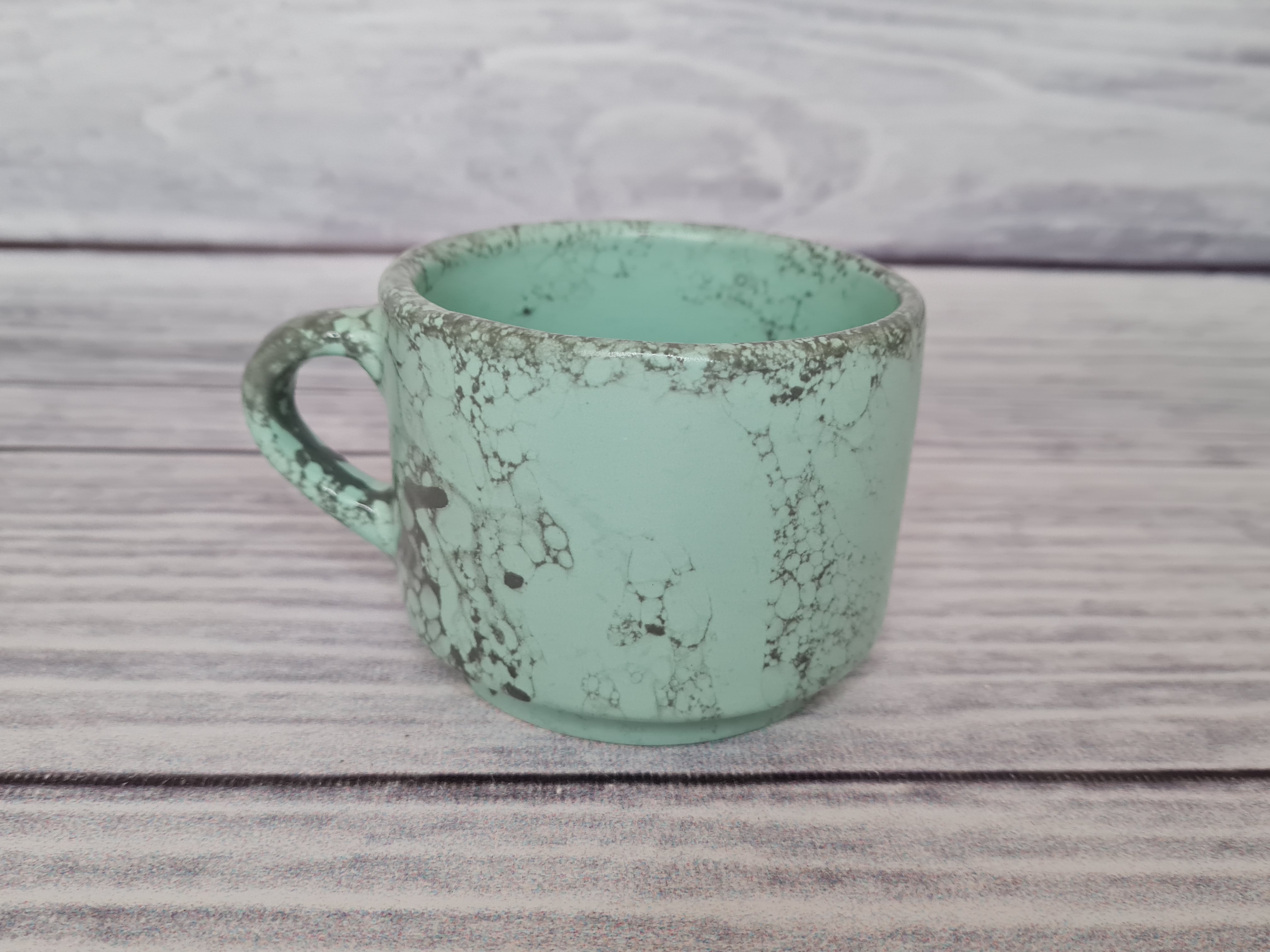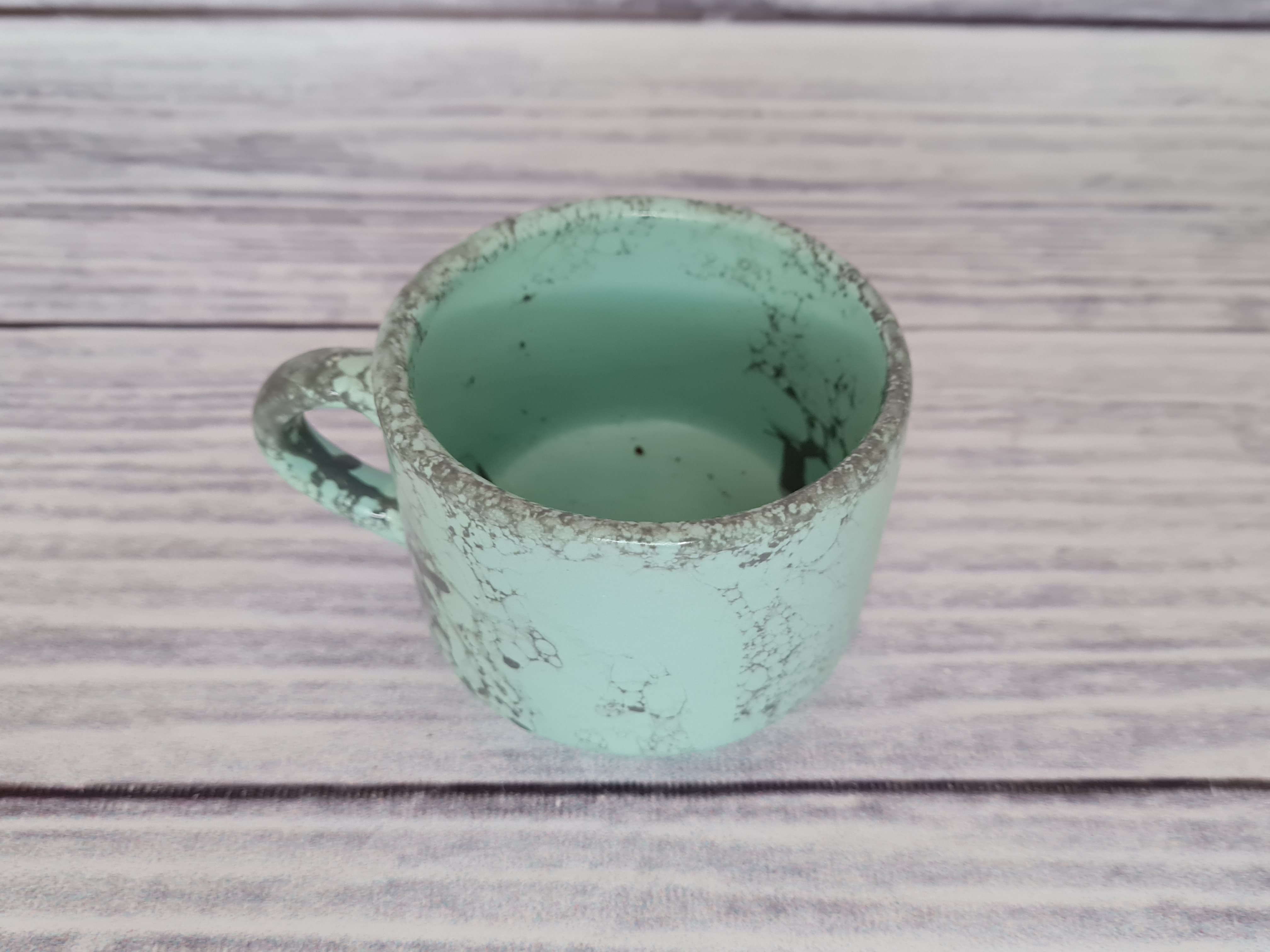Элегантный дизайн. Идеальна для подачи кофе. Штабелируется и экономит место. Друг на друга можно ставить свыше 10 шт. Пригодна для использования в посудомоечной машине и микроволновой печи. Матовая поверхность мятного цвета с серыми разводами.