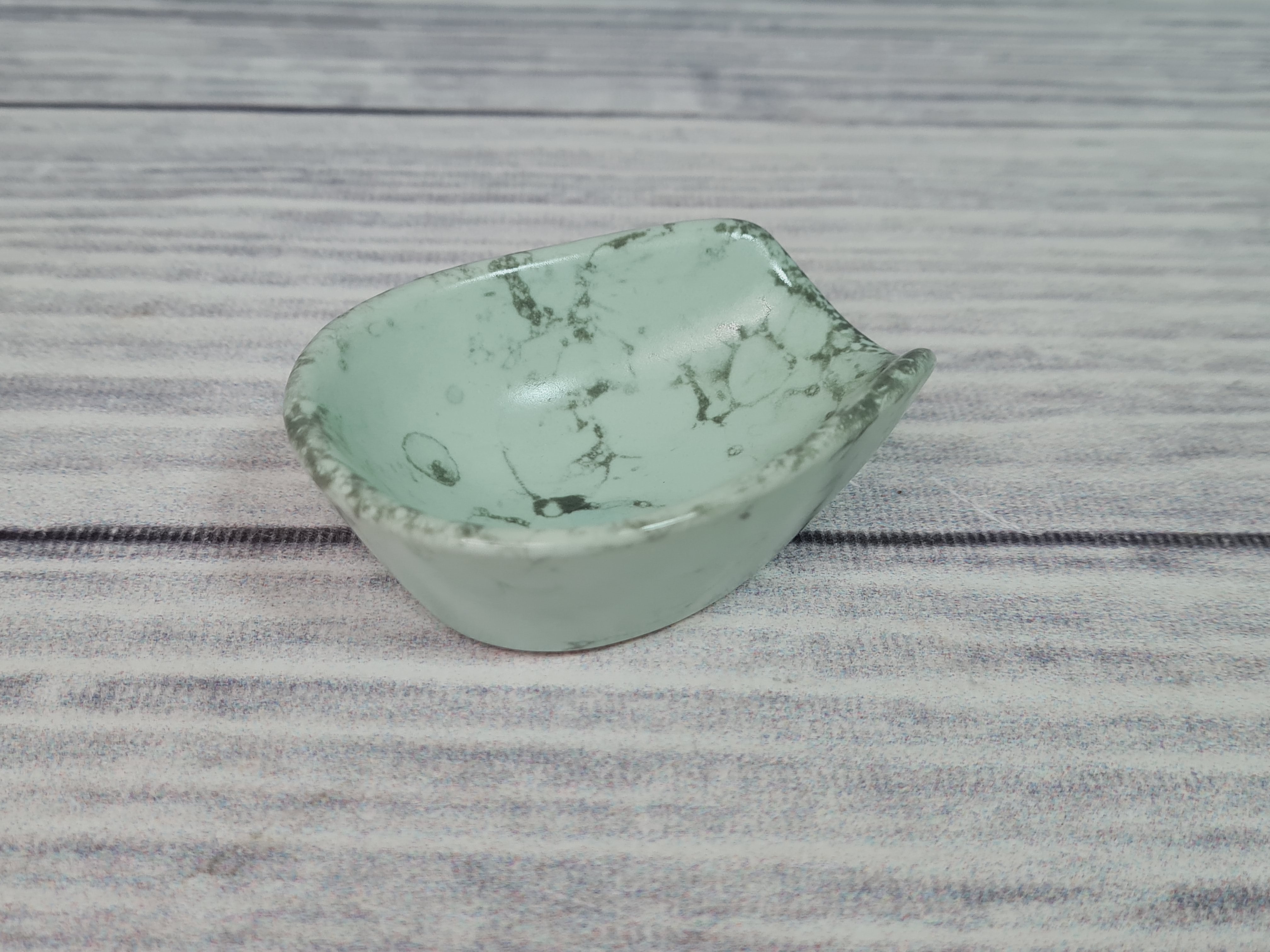 Фарфоровая подставка под фарфоровую ложку для мисо-супа – это одна из составляющих частей общего набора, состоящего из ложки и подставки. Набор отличается небольшими размерами и удобной ручкой ложки. Элегантный дизайн придает подставке особую утонченность и изысканность. Вы можете подобрать любое сочетание подставки и ложки. Матовая поверхность мятного цвета с серыми разводами.