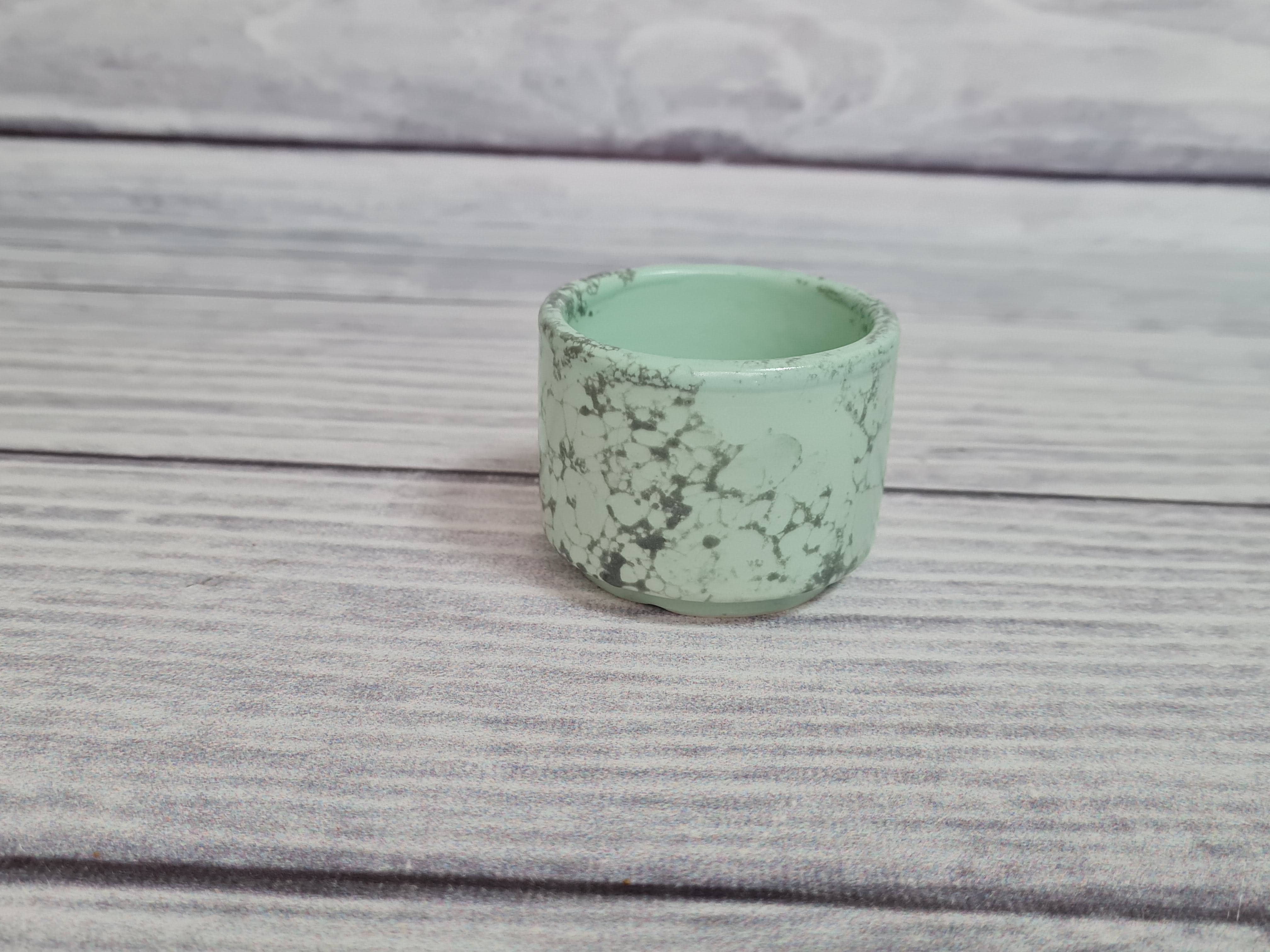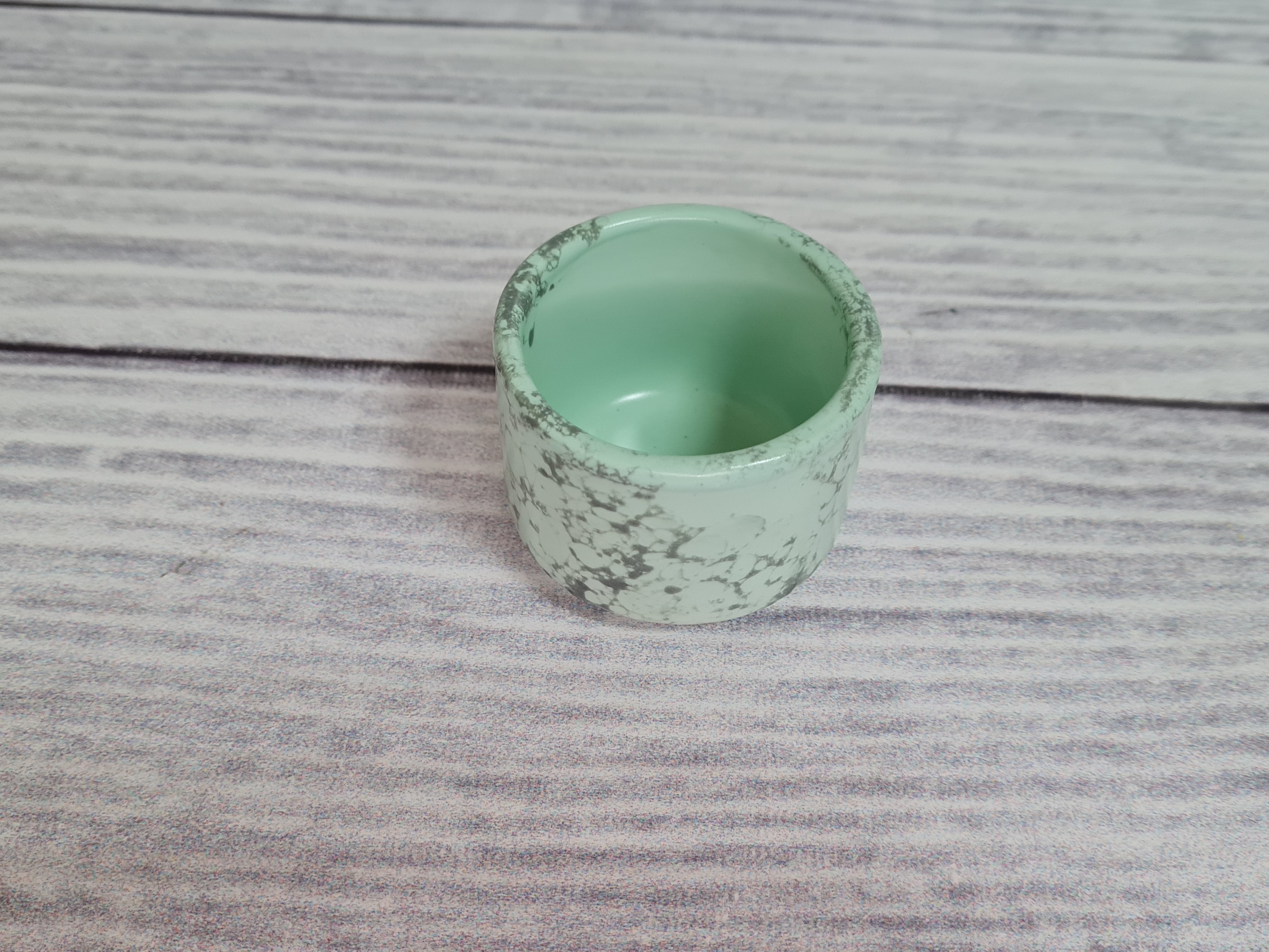 Фарфоровый соусник для подачи различных соусов, которые дополняют основное блюдо. Красивое, удобное и очень нужное изделие, которое будет приятным штрихом к полноценной сервировке. Легко штабелируется и ставится один на один. Отличается особой прочностью и долговечностью, устойчив к сколам и трещинам, пригоден для использования в посудомоечной машине и микроволновой печи. Матовая поверхность мятного цвета с серыми разводами.