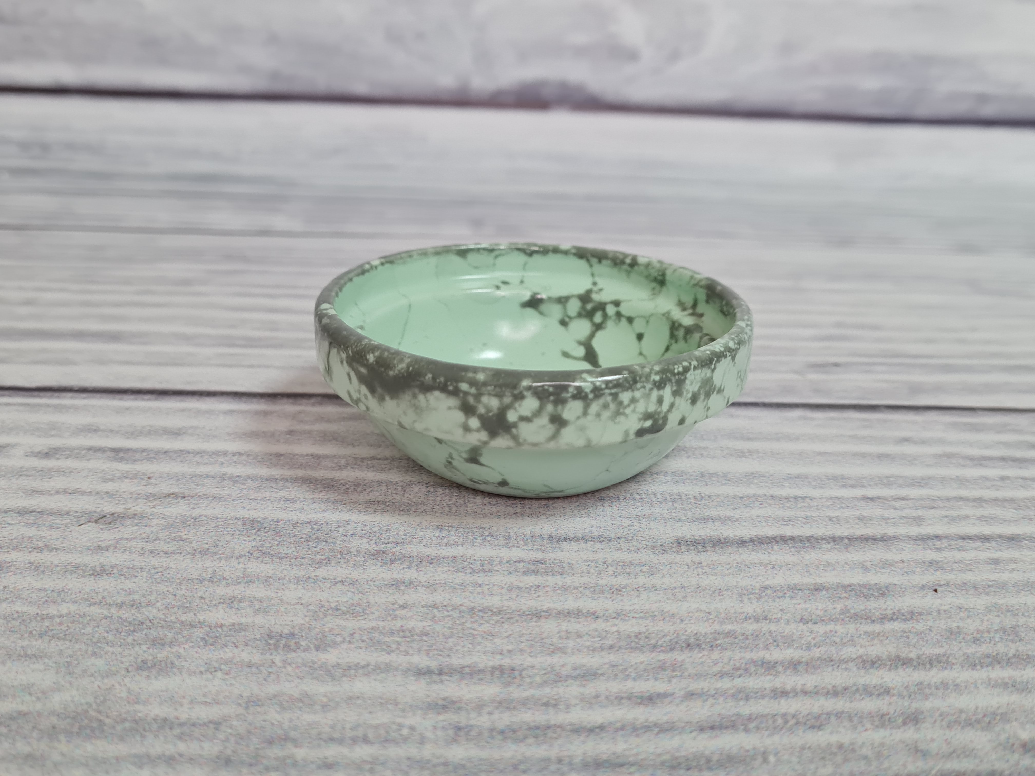 Фарфоровый соусник для подачи различных соусов, которые дополняют основное блюдо. Красивое, удобное и очень нужное изделие, которое будет приятным штрихом к полноценной сервировке. Пригоден для использования в посудомоечной машине и микроволновой печи. Матовая поверхность мятного цвета с серыми разводами.