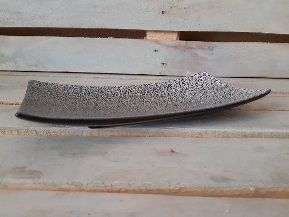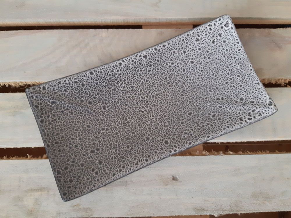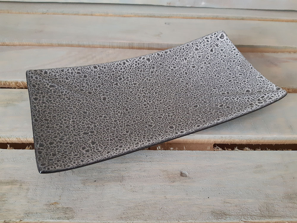 Фарфоровое блюдо для суши прямоугольной формы с приподнятыми краями. Очень практично в использовании и хранении, занимает мало места. Элегантный дизайн придает блюду утонченность и изысканность. Отличная идея для красивой подачи суши и роллов. Матовая рельефная поверхность с хаотичными черно-белыми кратерами.