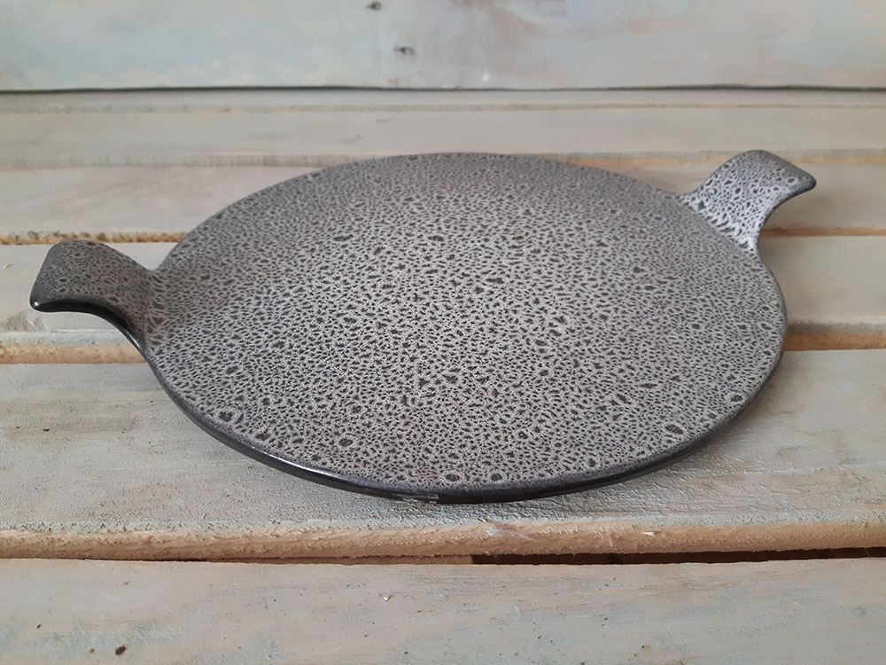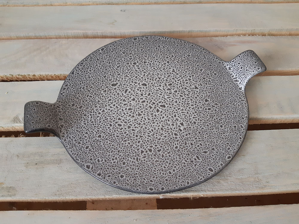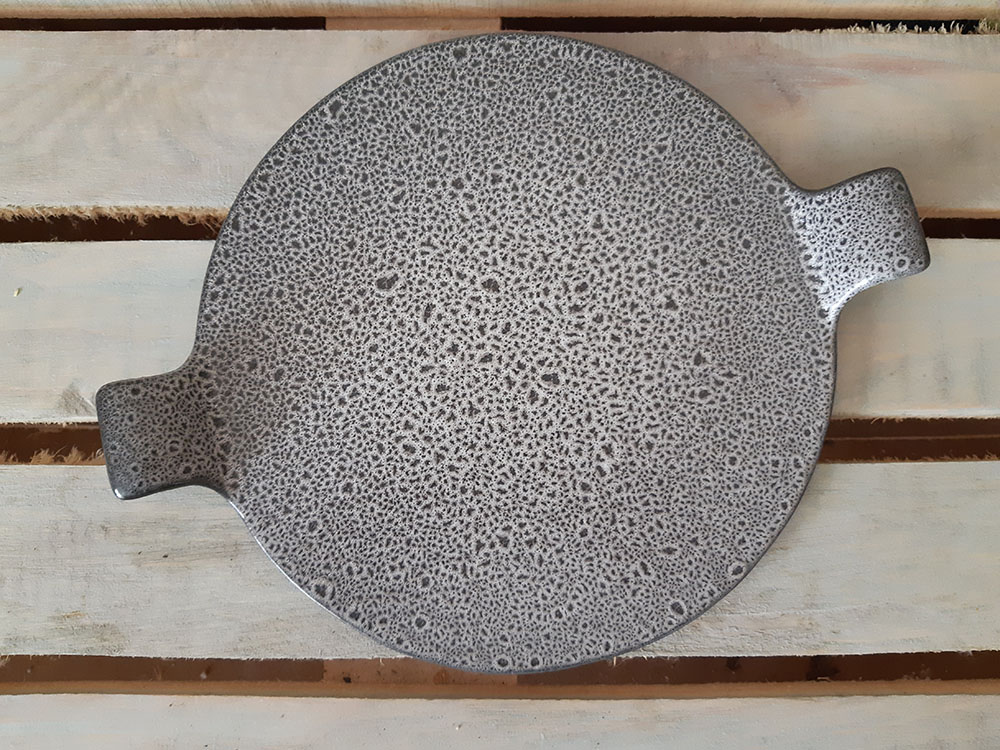 Фарфоровое блюдо для подачи сыра или другой нарезки. Стильное, удобное. Диаметр блюда без ручек - 25 см. Это довольно большая поверхность, на которой можно красиво разместить продукты. Пригодна для использования в посудомоечной машине и микроволновой печи. Зеркальная зеленая глянцевая поверхность на кремовом фоне с загадочными разводами, бликами и черными крапинами.