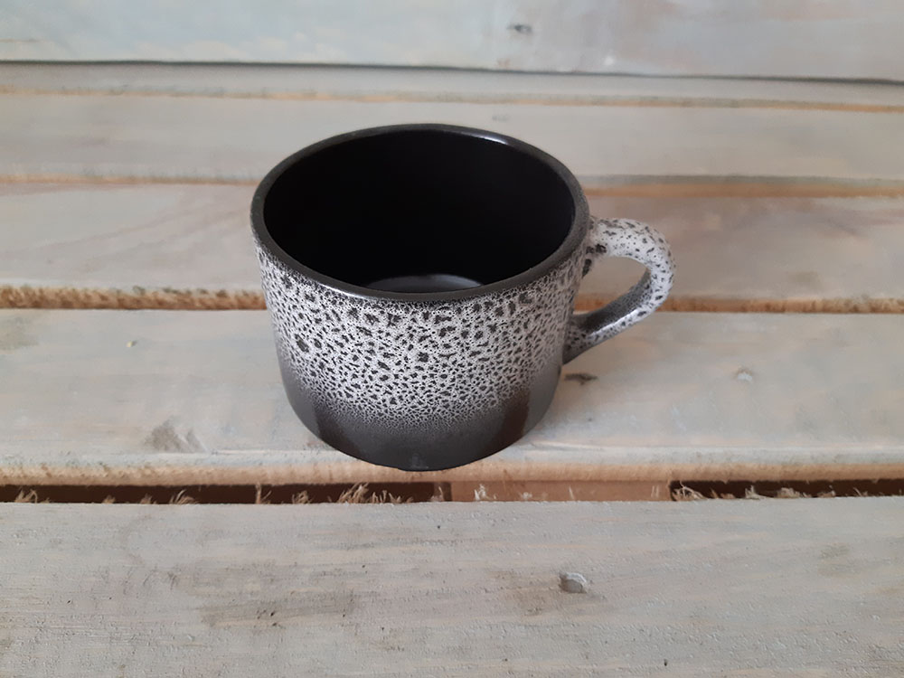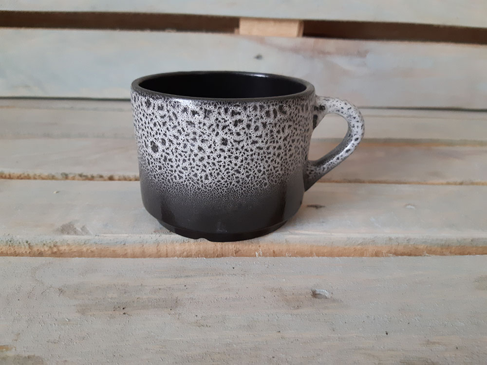 Элегантный дизайн. Чашка идеально подойдет для подачи как капучино, так и чая. Штабелируется и экономит место. Пригодна для использования в посудомоечной машине и микроволновой печи. Матовая рельефная поверхность с хаотичными черно-белыми кратерами.
