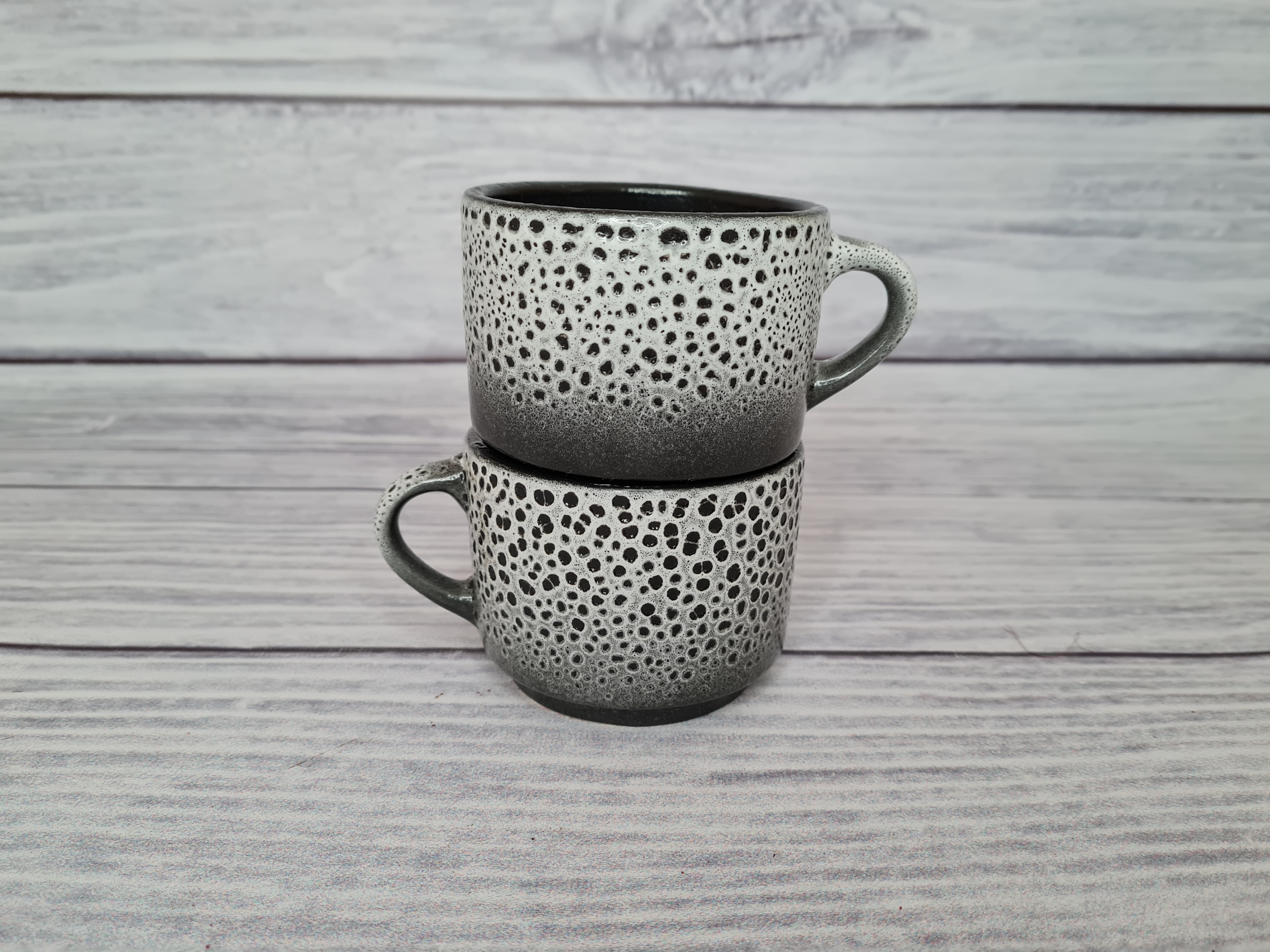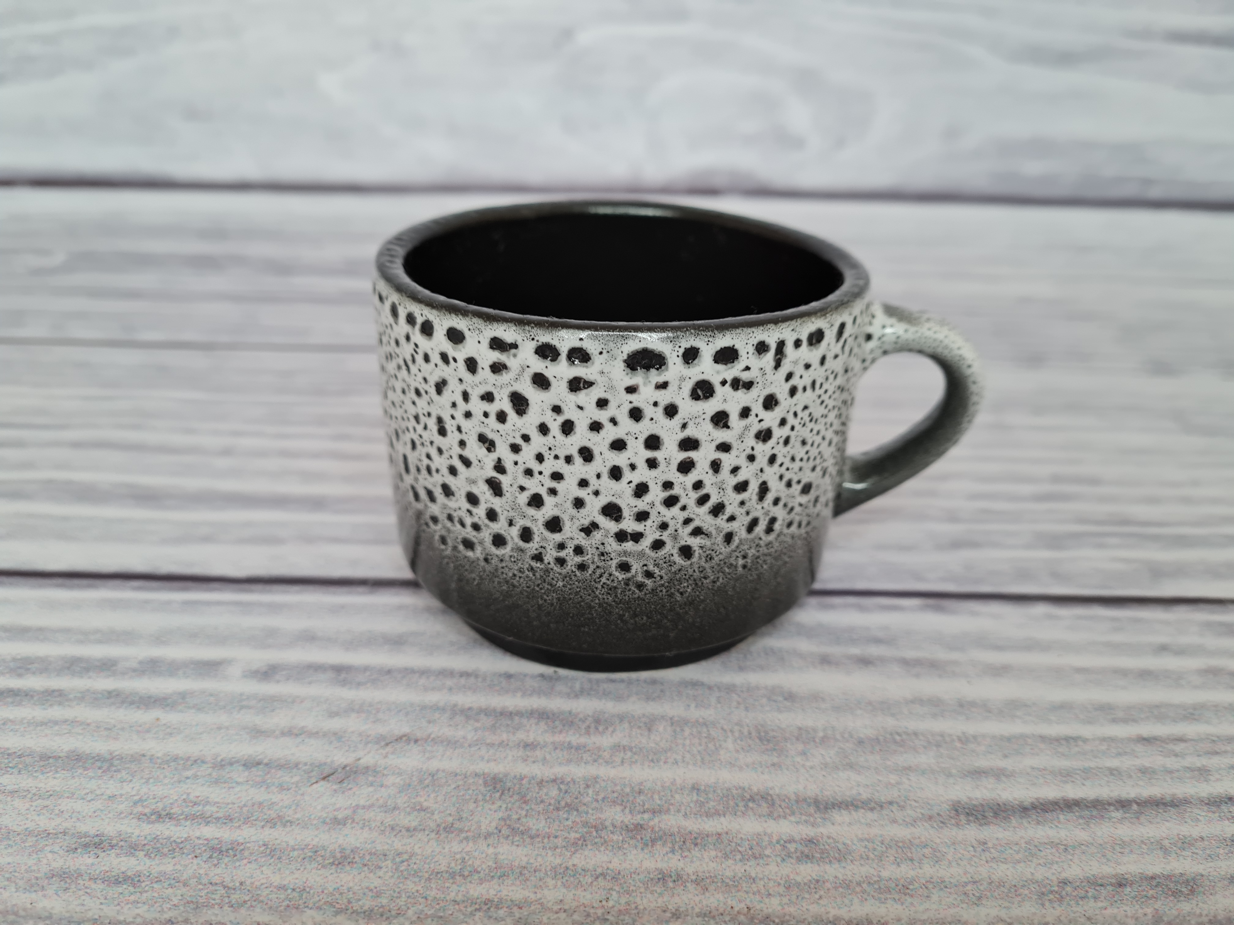Элегантный дизайн. Идеальна для подачи кофе. Штабелируется и экономит место. Друг на друга можно ставить свыше 10 шт. Пригодна для использования в посудомоечной машине и микроволновой печи. Матовая рельефная поверхность с хаотичными черно-белыми кратерами.