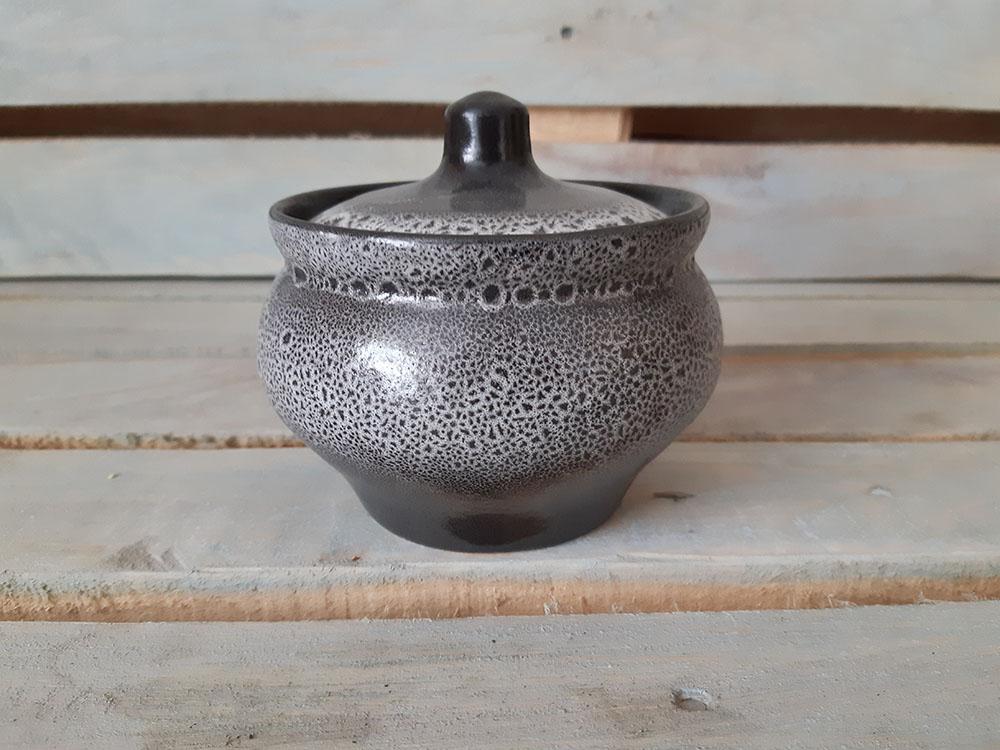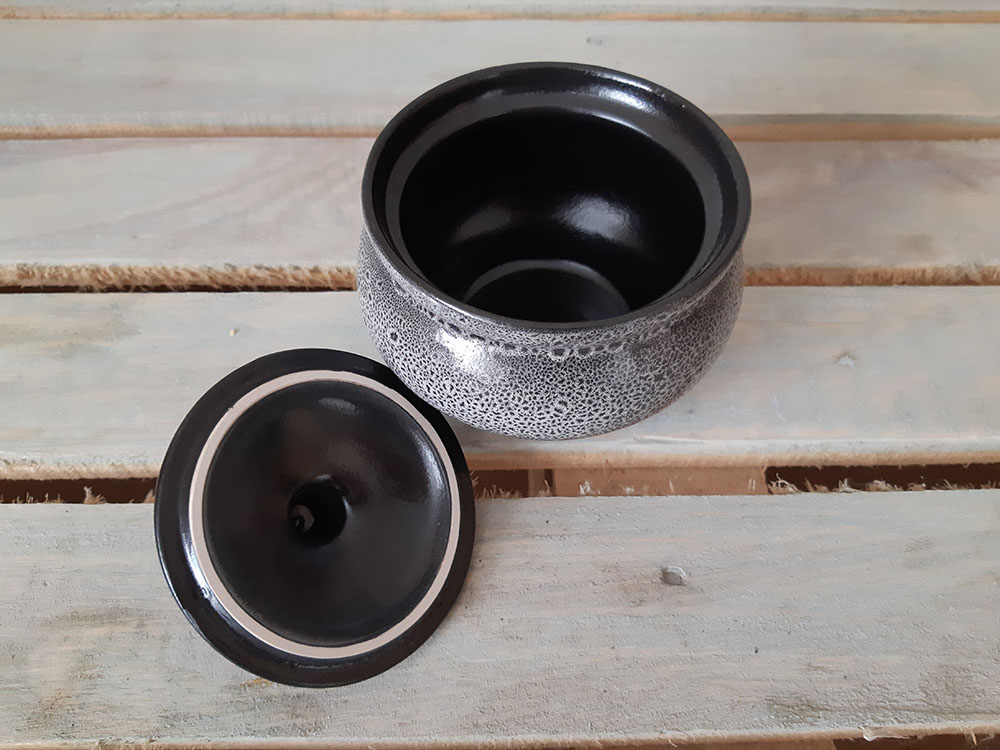 Особо прочный горшок для запекания и оригинальной подачи блюд. Классическая форма, которая позволяет сохранять тепло. Широкое горло горшочка очень удобно в применении. Пригоден для использования в посудомоечной машине и микроволновой печи. Матовая рельефная поверхность с хаотичными черно-белыми кратерами.