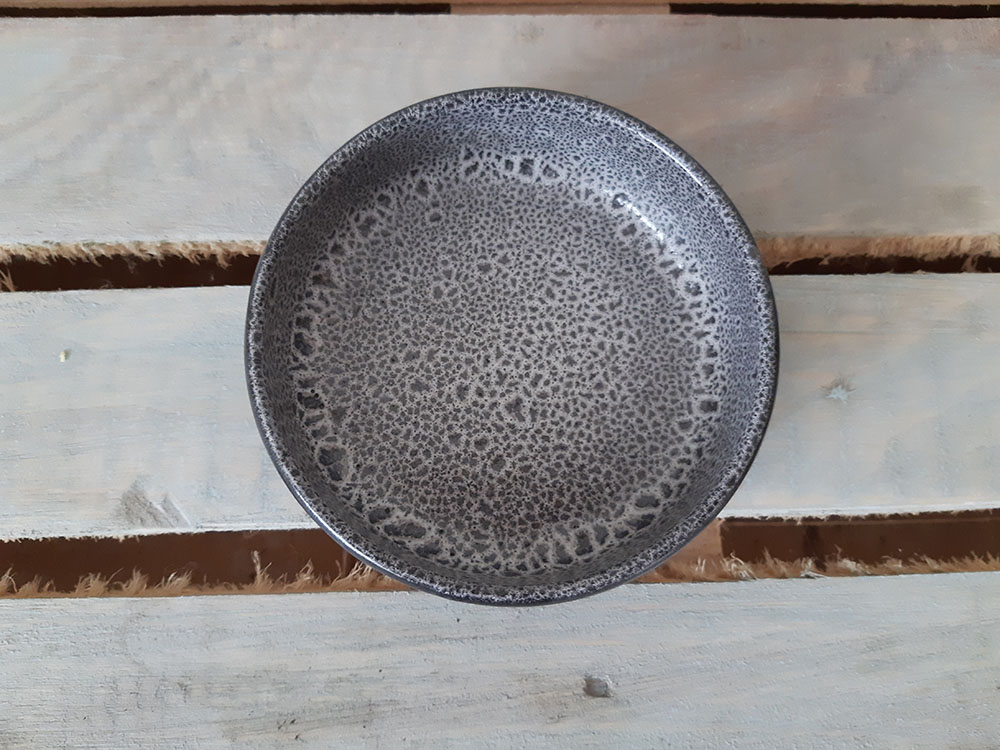 Салатник с прямыми стенками, который подчеркнет интерьер и будет отлично смотреться на столе. Идеален для запеченых блюд. Пригоден для использования в посудомоечной машине и микроволновой печи. Матовая рельефная поверхность с хаотичными черно-белыми кратерами.