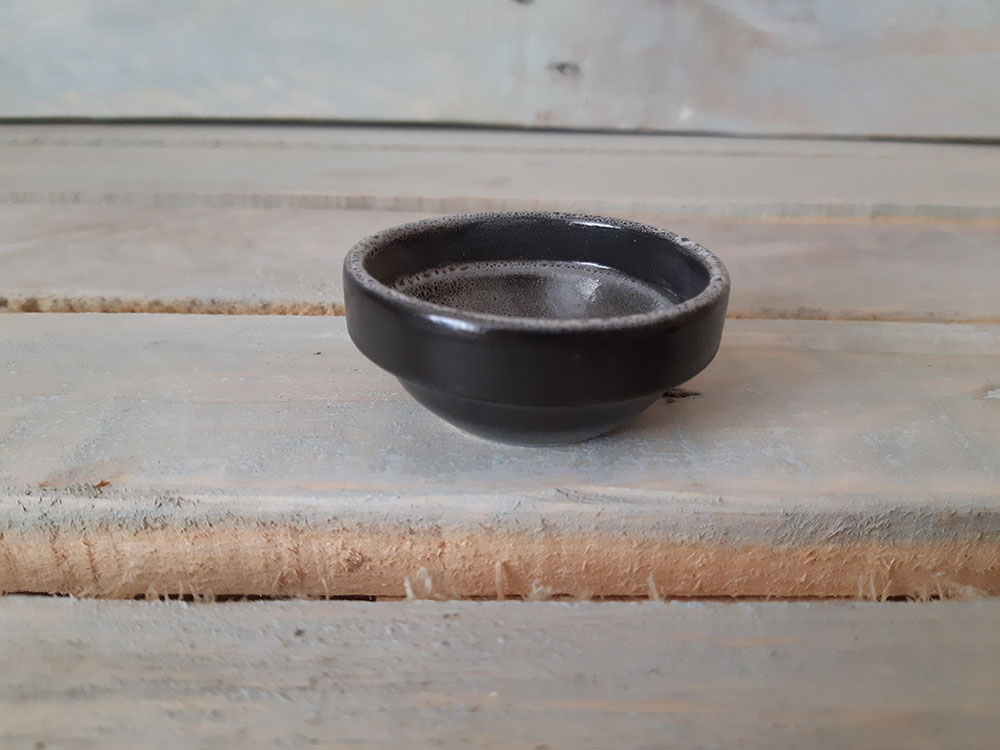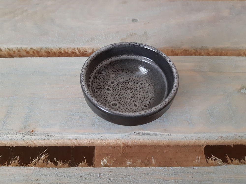 Элегантный порционный соусник для подачи сметаны, кетчупа и других соусов, которые дополняют основное блюдо. Легко штабелируется и ставится один на один. Красивое миниатюрное изделие, которое будет приятным штрихом к полноценной сервировке. Пригоден для использования в посудомоечной машине и микроволновой печи. Матовая рельефная поверхность с хаотичными черно-белыми кратерами.