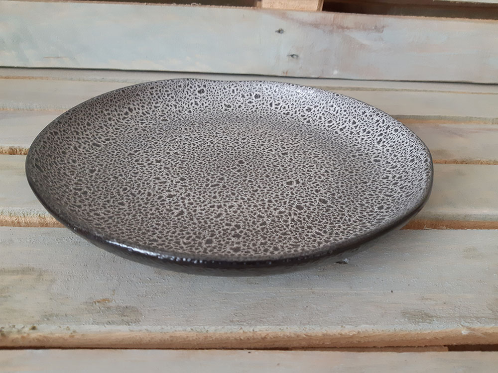 Компактная тарелка сочетает в себе изысканный дизайн с максимальной функциональностью. Воодушевит вас на создание новых блюд. Производится из современного и экологически чистого материала - фарфора. Подходит для использования в микроволновой печи и посудомоечной машине. Матовая рельефная поверхность с хаотичными черно-белыми кратерами.