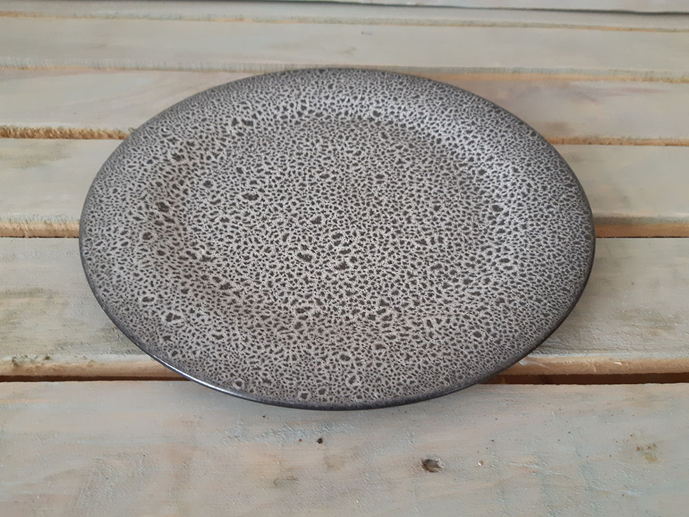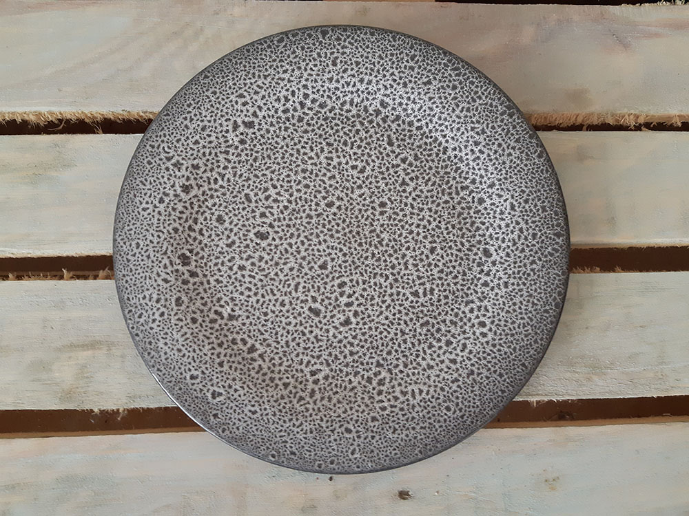 Яркий дизайн, удобная форма тарелки, имеющая утолщенный край. Блюдо, поданное на такой тарелке будет выглядеть вкуснее и придаст вам хорошую нотку настроения. Пригодна для использования в посудомоечной машине и микроволновой печи. Матовая рельефная поверхность с хаотичными черно-белыми кратерами.