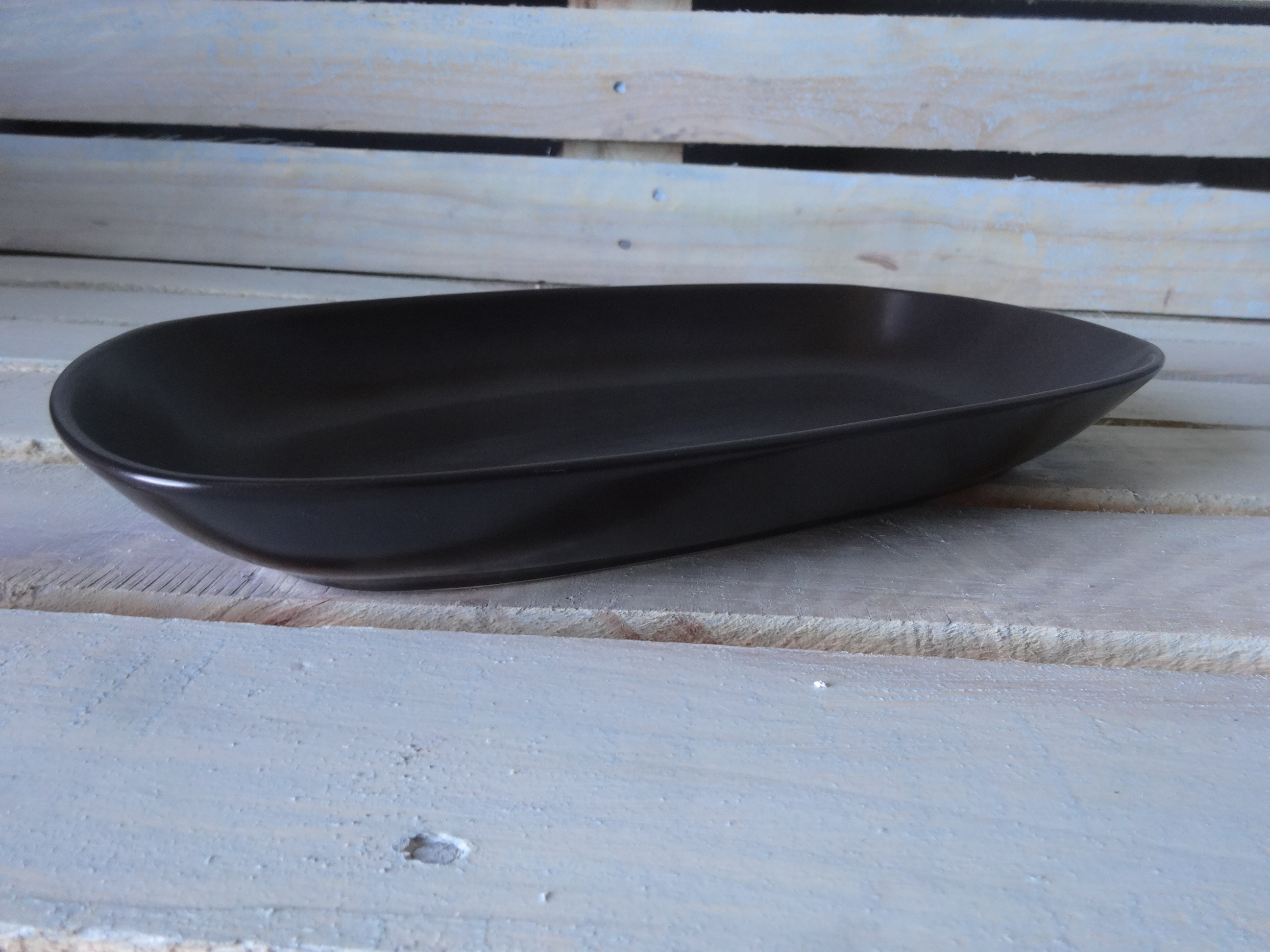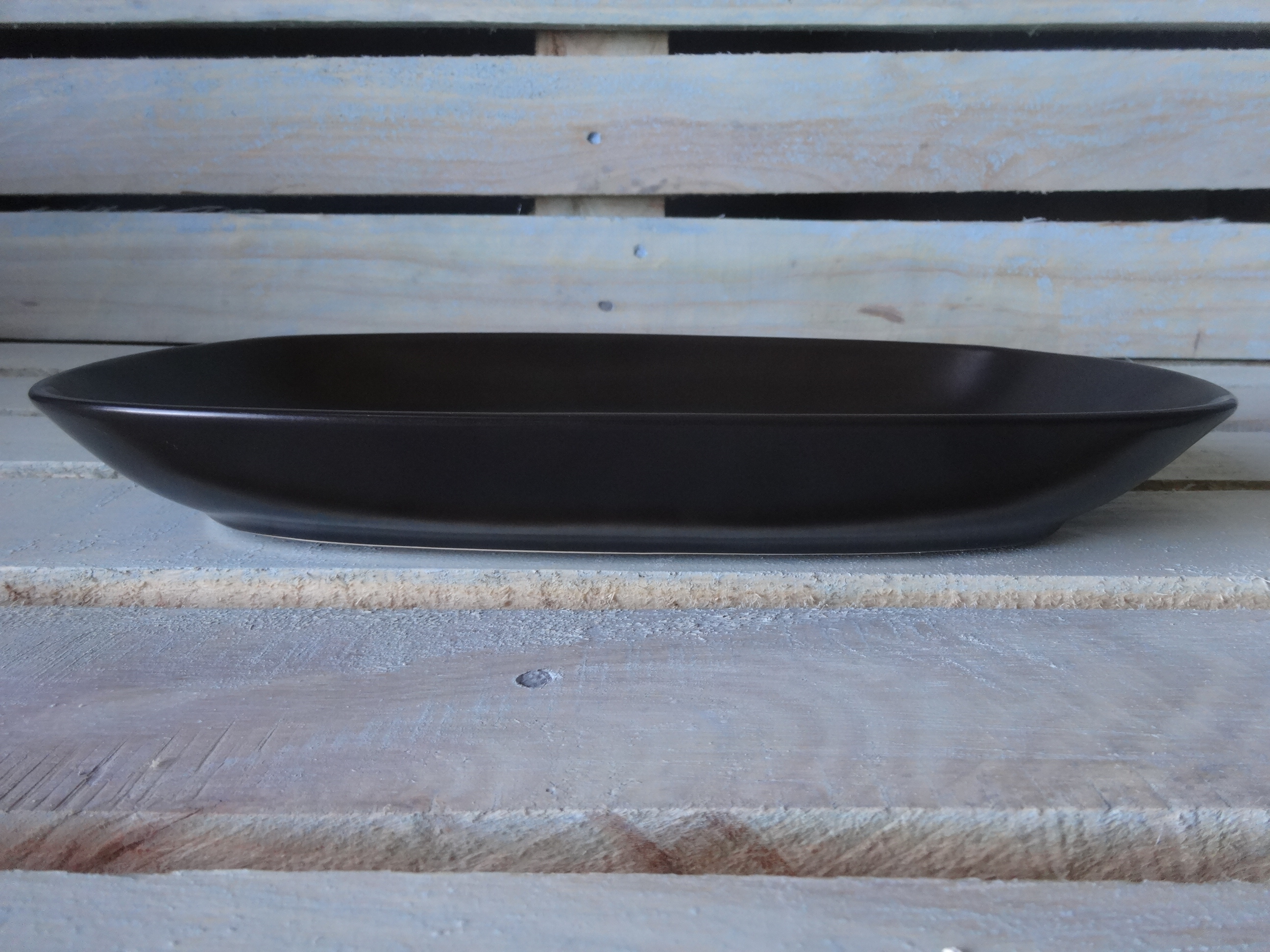 Большое блюдо овально-прямоугольной формы с высокими бортиками. Оригинальная подача в таком блюде гарантирована. Матовая поверхность.
