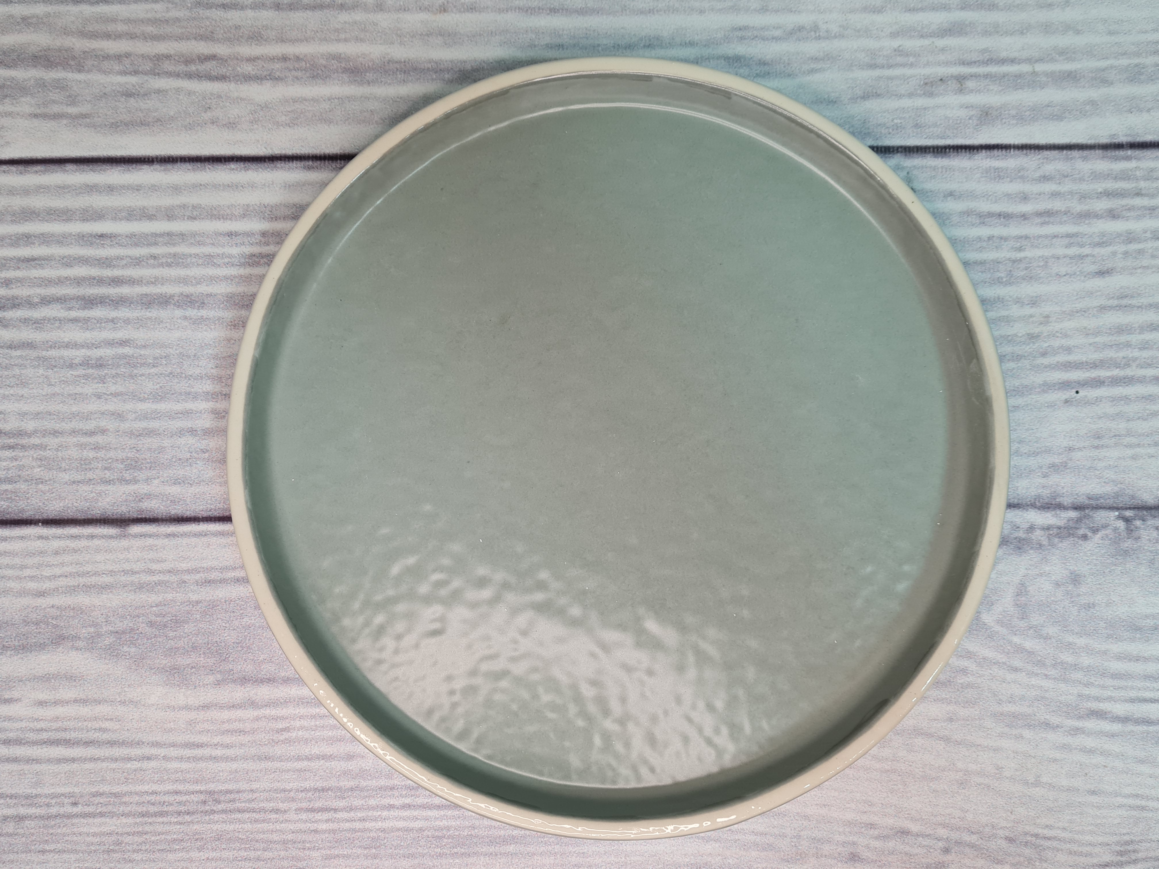 Наша тарелка идеально подходит для размещения сыров, закусок и нарезки, подачи или приготовления пиццы. Модная форма помогает красиво подать разнообразные кулинарные шедевры. Рельефная поверхность мелкими бугорками, матовый серый цвет и светлая кайма.