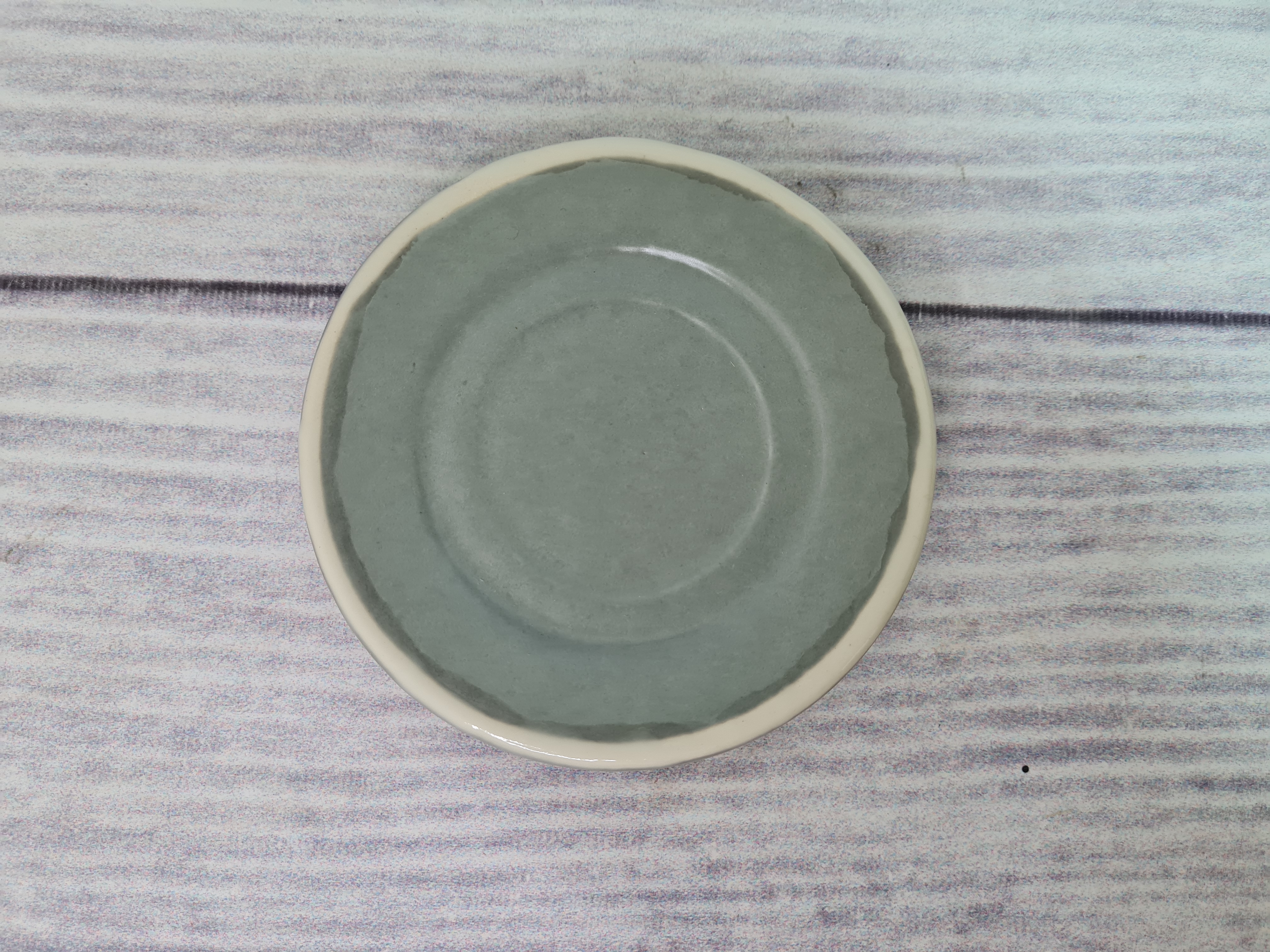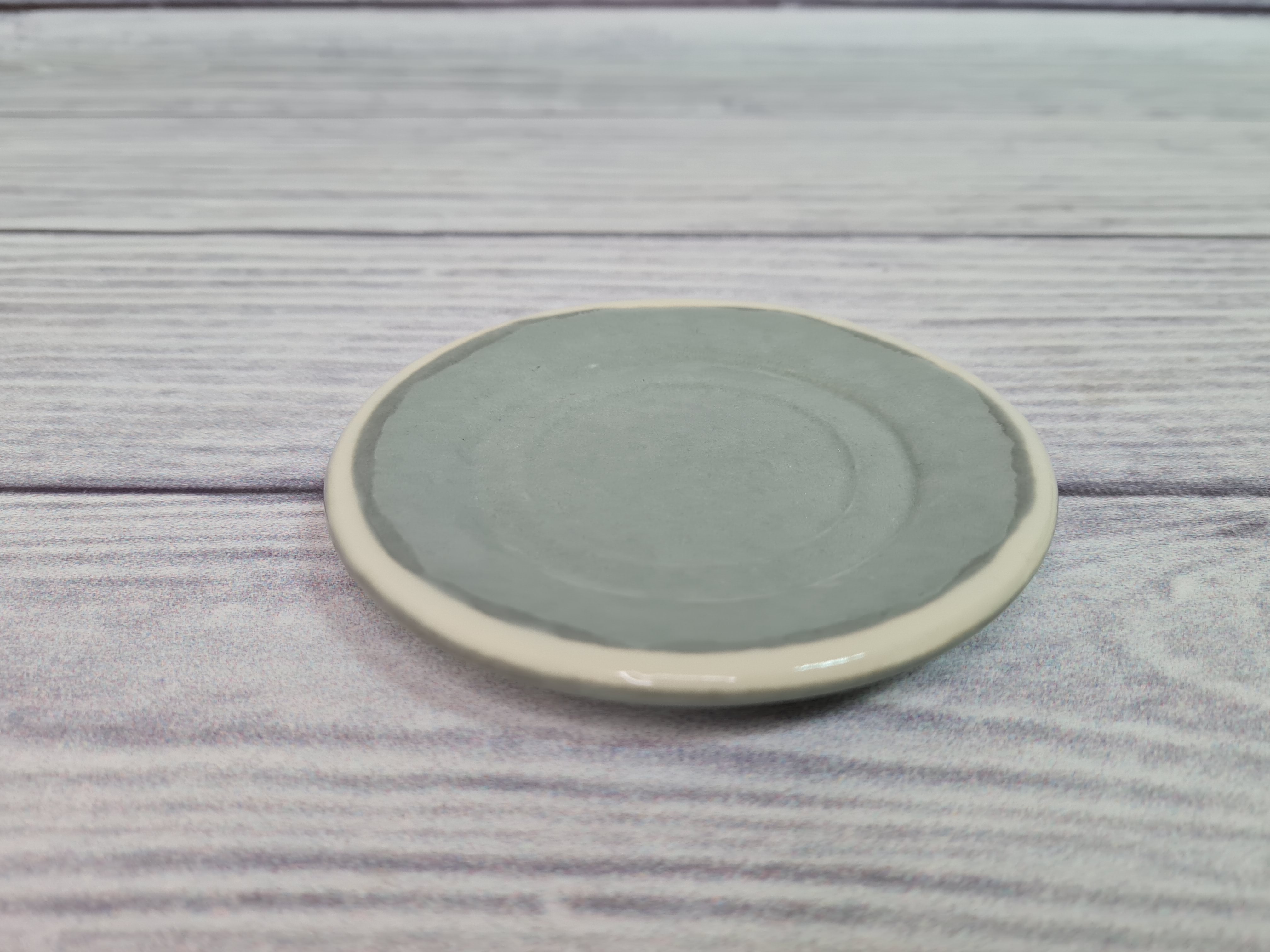 Универсальное малое блюдце для сервировки, может использоваться как подставка под чашку. Специальные бортики предотвращают соскальзывание чашки. Кроме того, эти маленькие тарелочки прекрасно украсят ваш стол. Рельефная поверхность мелкими бугорками, матовый серый цвет и светлая кайма.