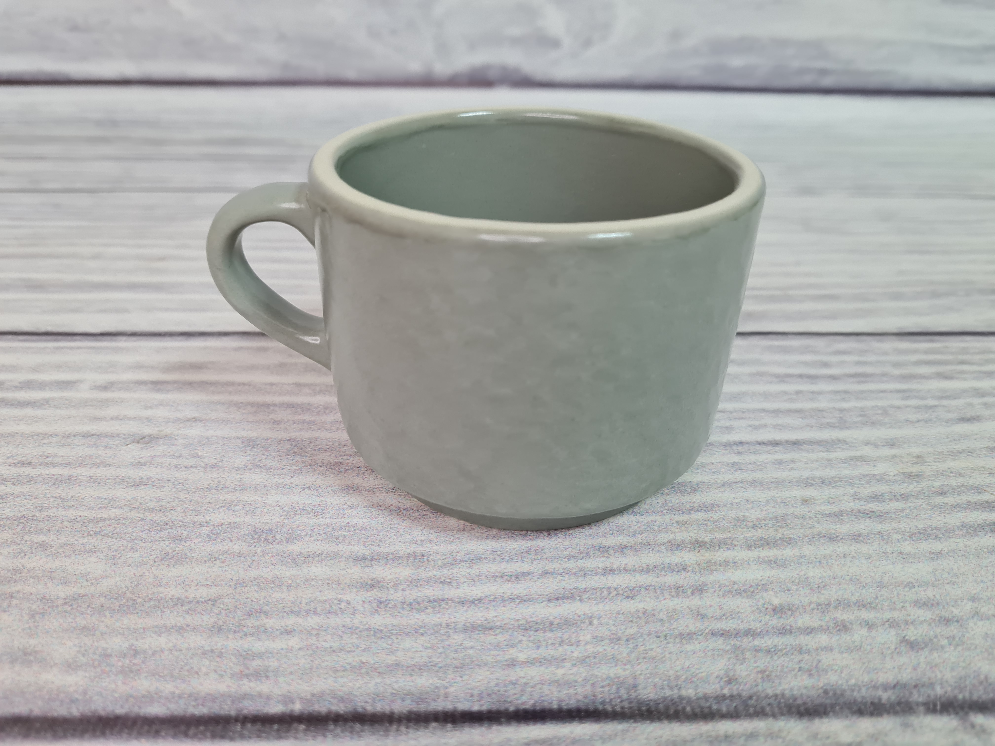 Элегантный дизайн. Идеальна для подачи кофе. Штабелируется и экономит место. Друг на друга можно ставить свыше 10 шт. Пригодна для использования в посудомоечной машине и микроволновой печи. Рельефная поверхность мелкими бугорками, матовый серый цвет и светлая кайма.