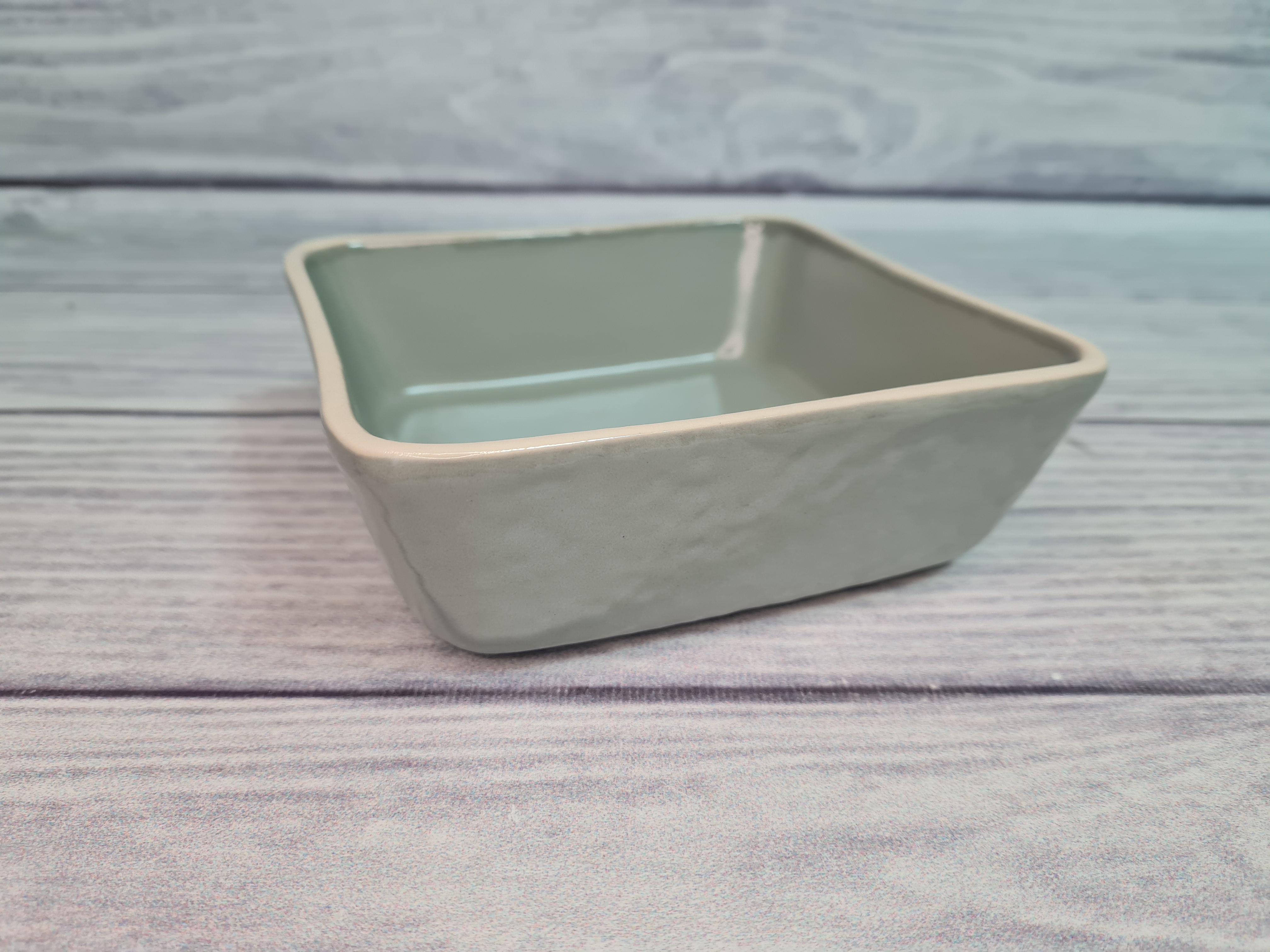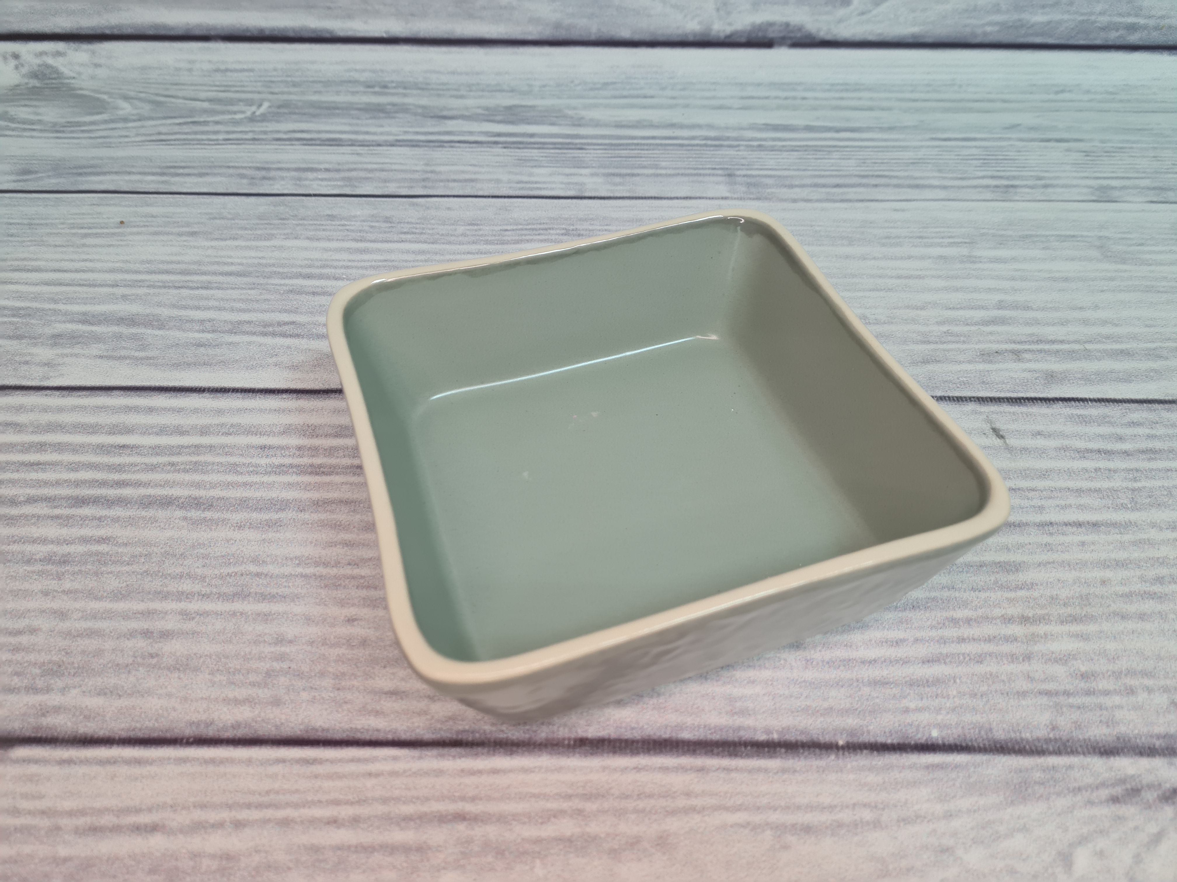 Квадратная форма с широким дном и закругленными углами – это идея для оригинальной подачи блюд. Сейчас в мировом тренде - преподнести привычные блюда в необычном виде, наш салатник – это помощник в организации необычной подачи блюд. Как обычно, салатник отличается особой прочностью и долговечностью, устойчив к сколам и трещинам, легко моется в посудомоечной машине. Рельефная поверхность мелкими бугорками, матовый серый цвет и светлая кайма.