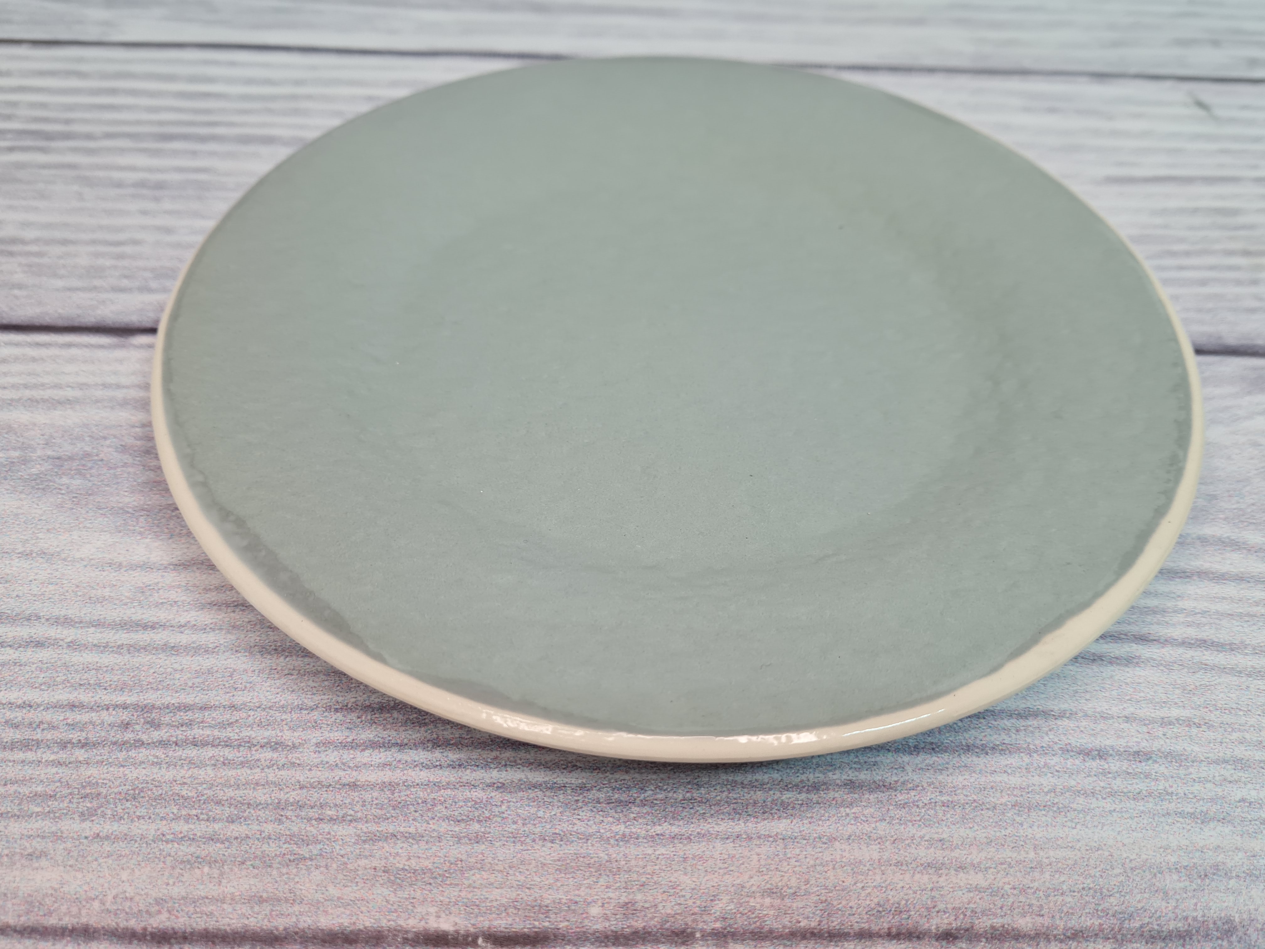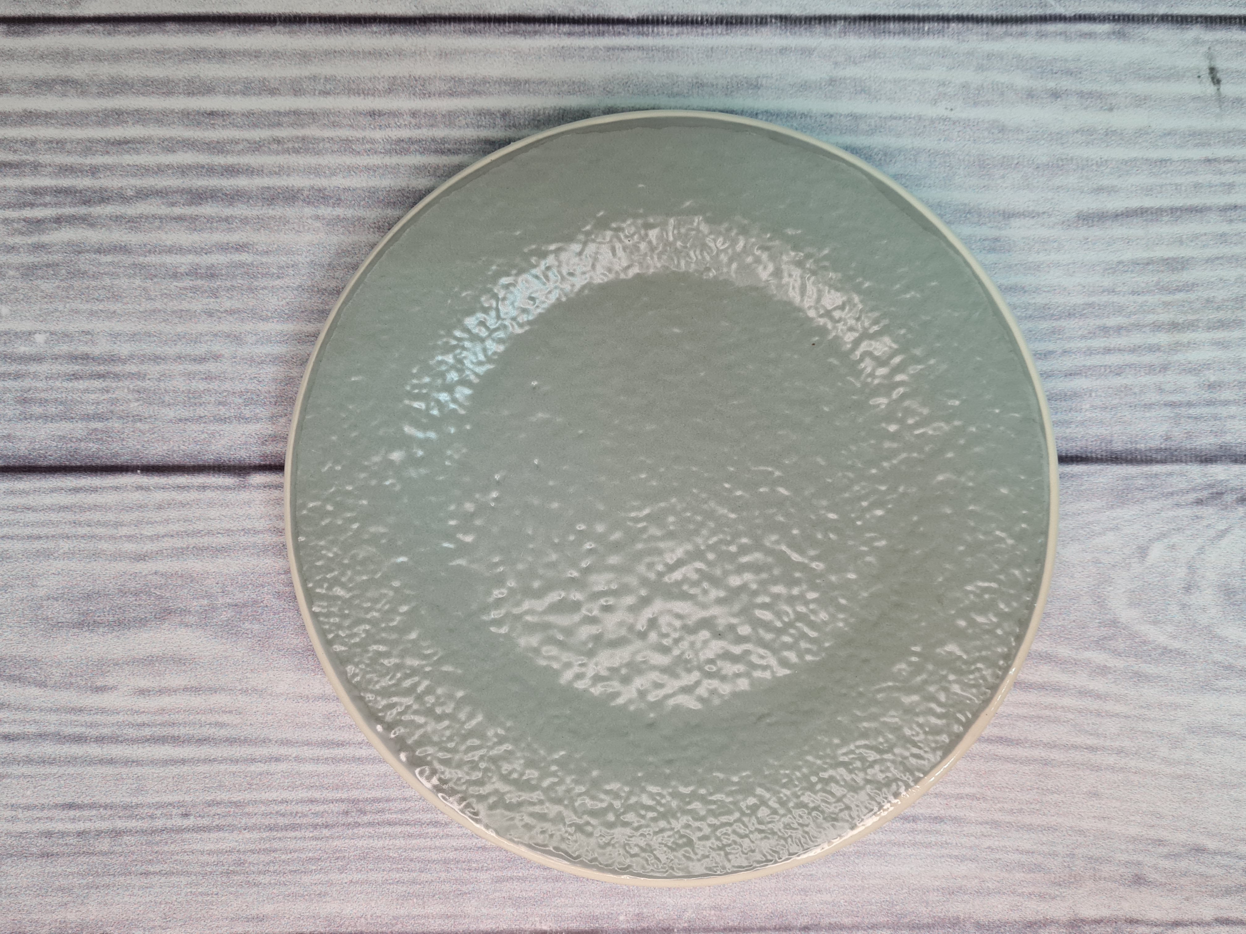 Удобная и практичная тарелка, имеющая утолщенный край. Пригодна для использования в посудомоечной машине и микроволновой печи. Рельефная поверхность мелкими бугорками, матовый серый цвет и светлая кайма.