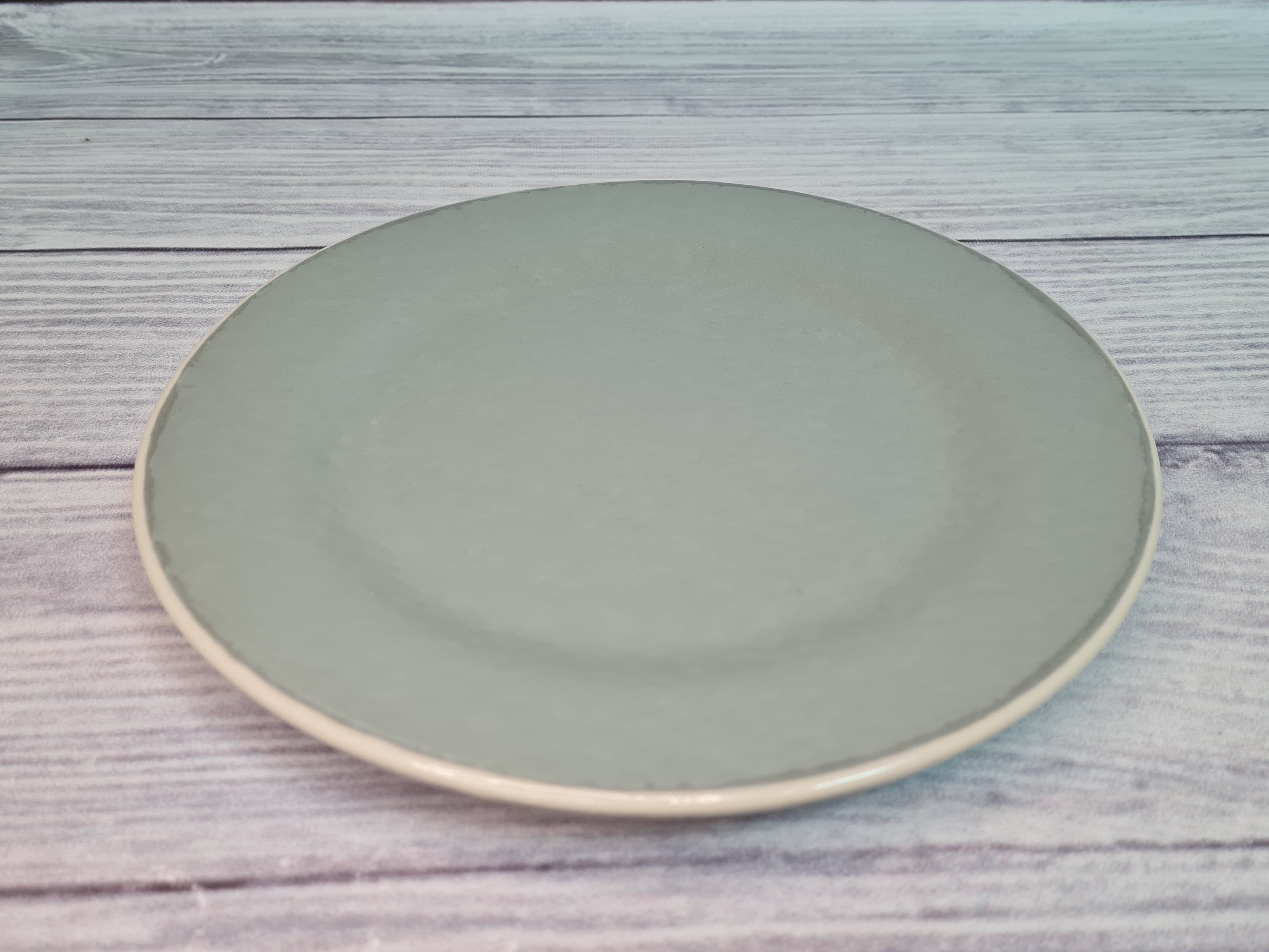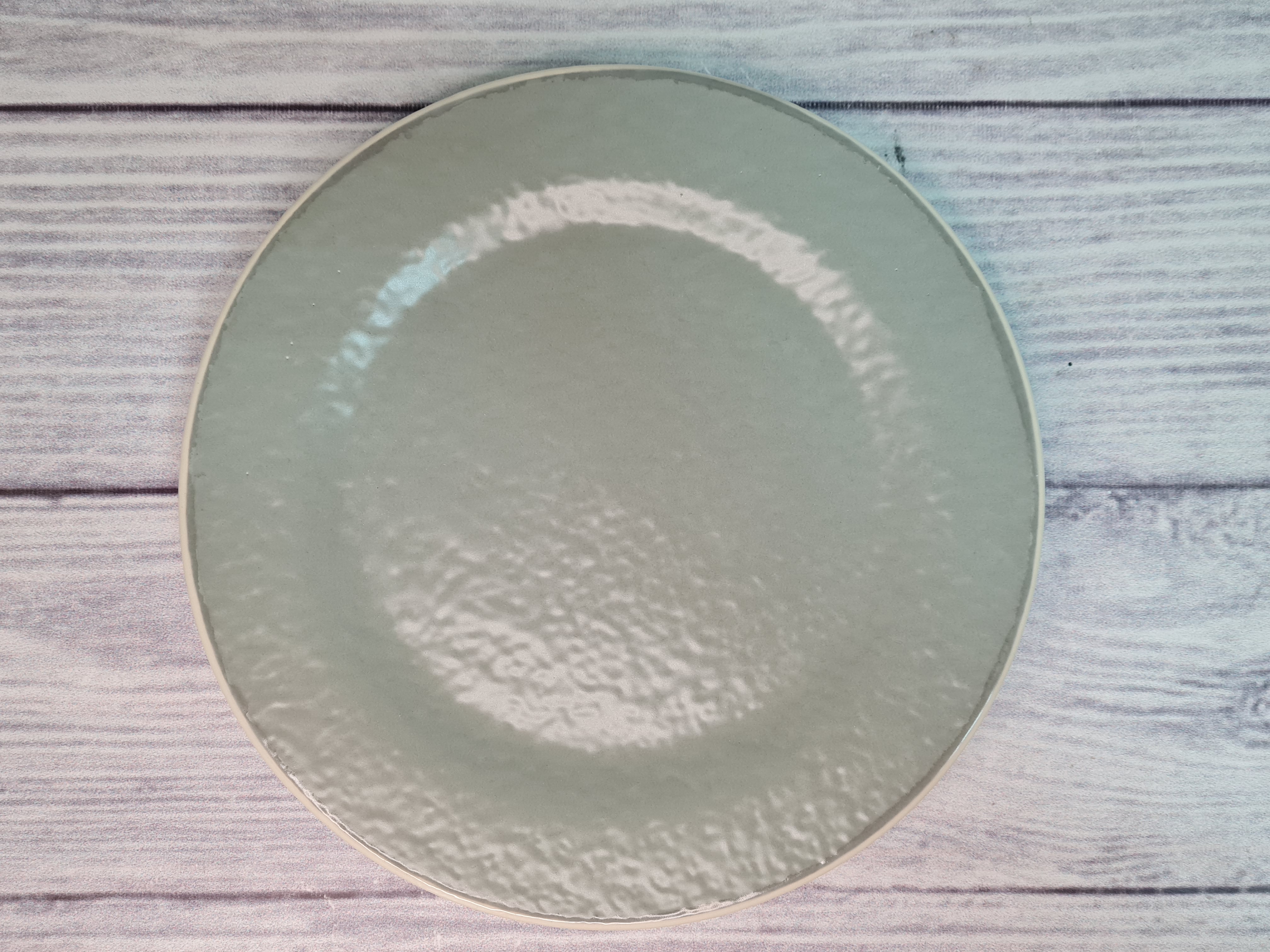 Удобная и практичная тарелка, имеющая утолщенный край. Пригодна для использования в посудомоечной машине и микроволновой печи. Рельефная поверхность мелкими бугорками, матовый серый цвет и светлая кайма.