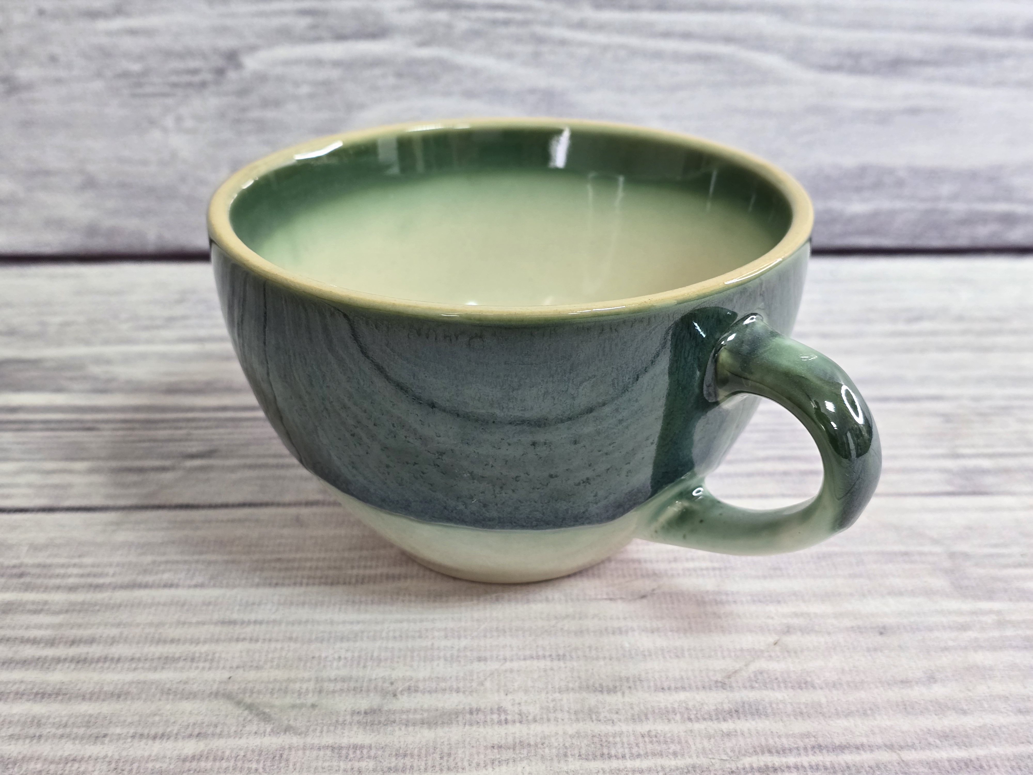 Чашка alba mega grande может использоваться для подачи кофе, капучино, чая, латте или бульона. Большой объем и толстые стенки чашки долго сохранят ваш напиток горячим. Удобная ручка, которая не заставляет упираться пальцы в горячую посуду. Вы можете удобно обхватить большую кружку, размера xxl двумя руками. Зеркальная зеленая глянцевая поверхность на кремовом фоне с загадочными разводами, бликами и черными крапинами.