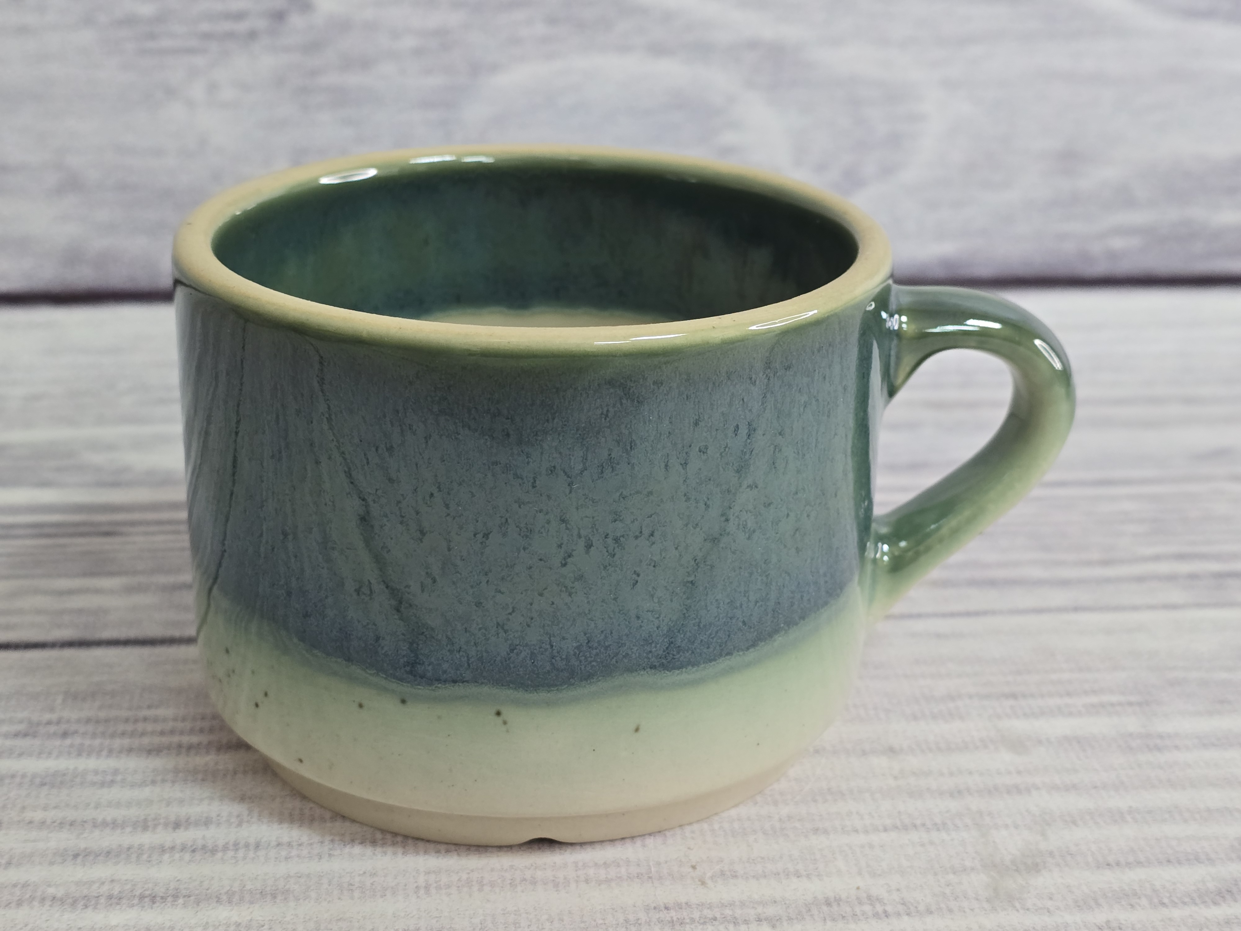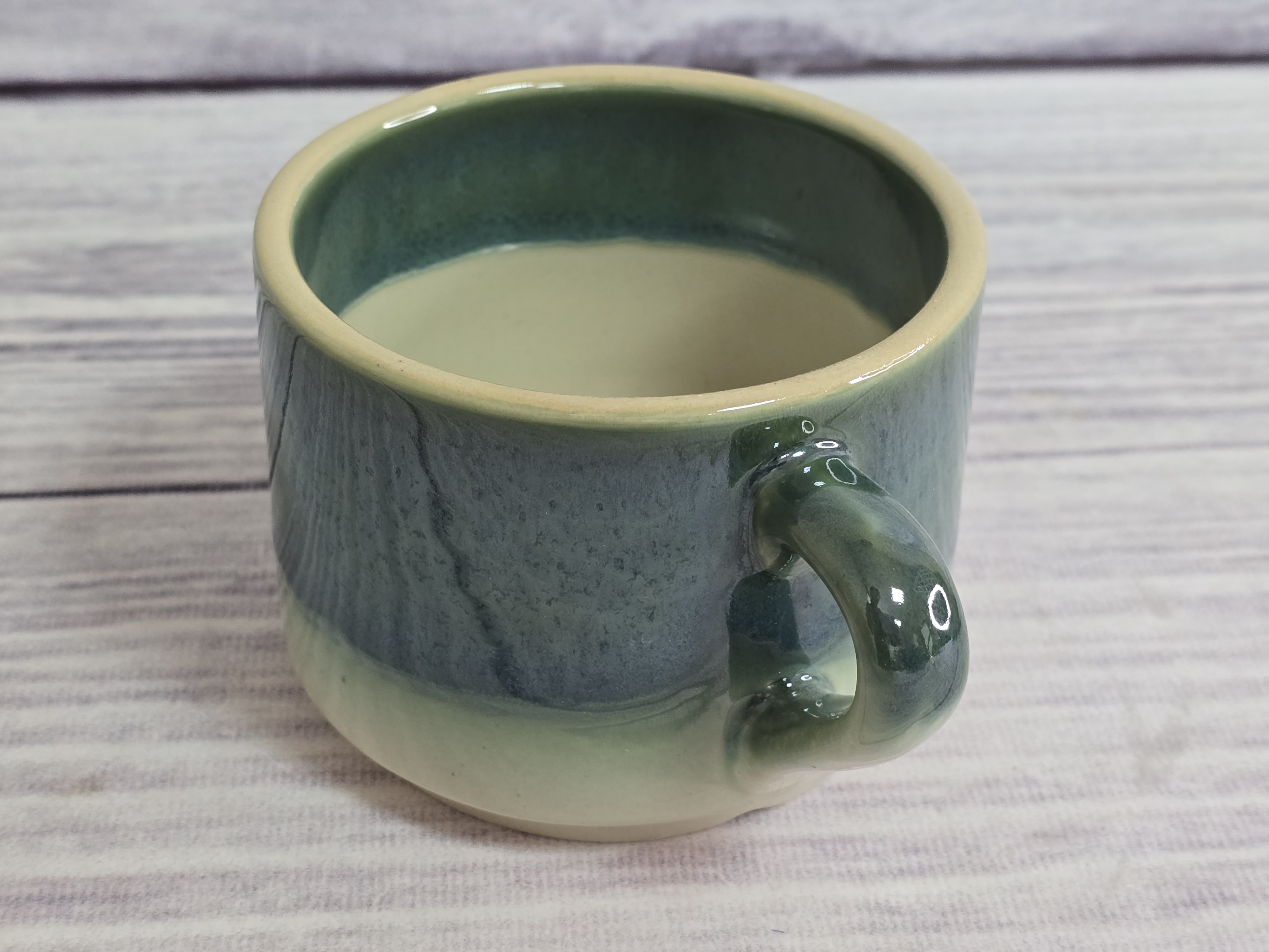 Элегантный дизайн. Чашка идеально подойдет для подачи как капучино, так и чая. Штабелируется и экономит место. Пригодна для использования в посудомоечной машине и микроволновой печи. Зеркальная зеленая глянцевая поверхность на кремовом фоне с загадочными разводами, бликами и черными крапинами.