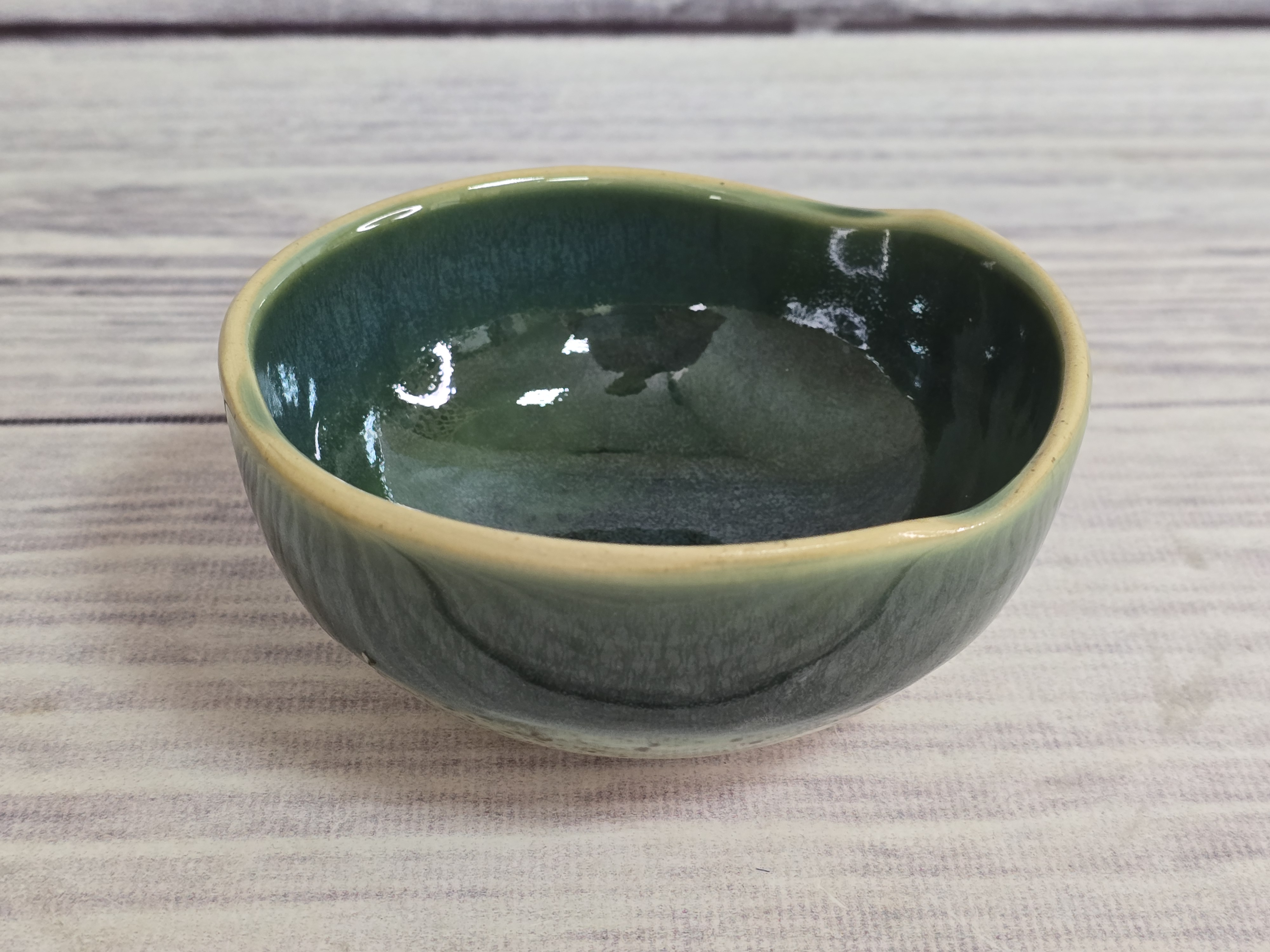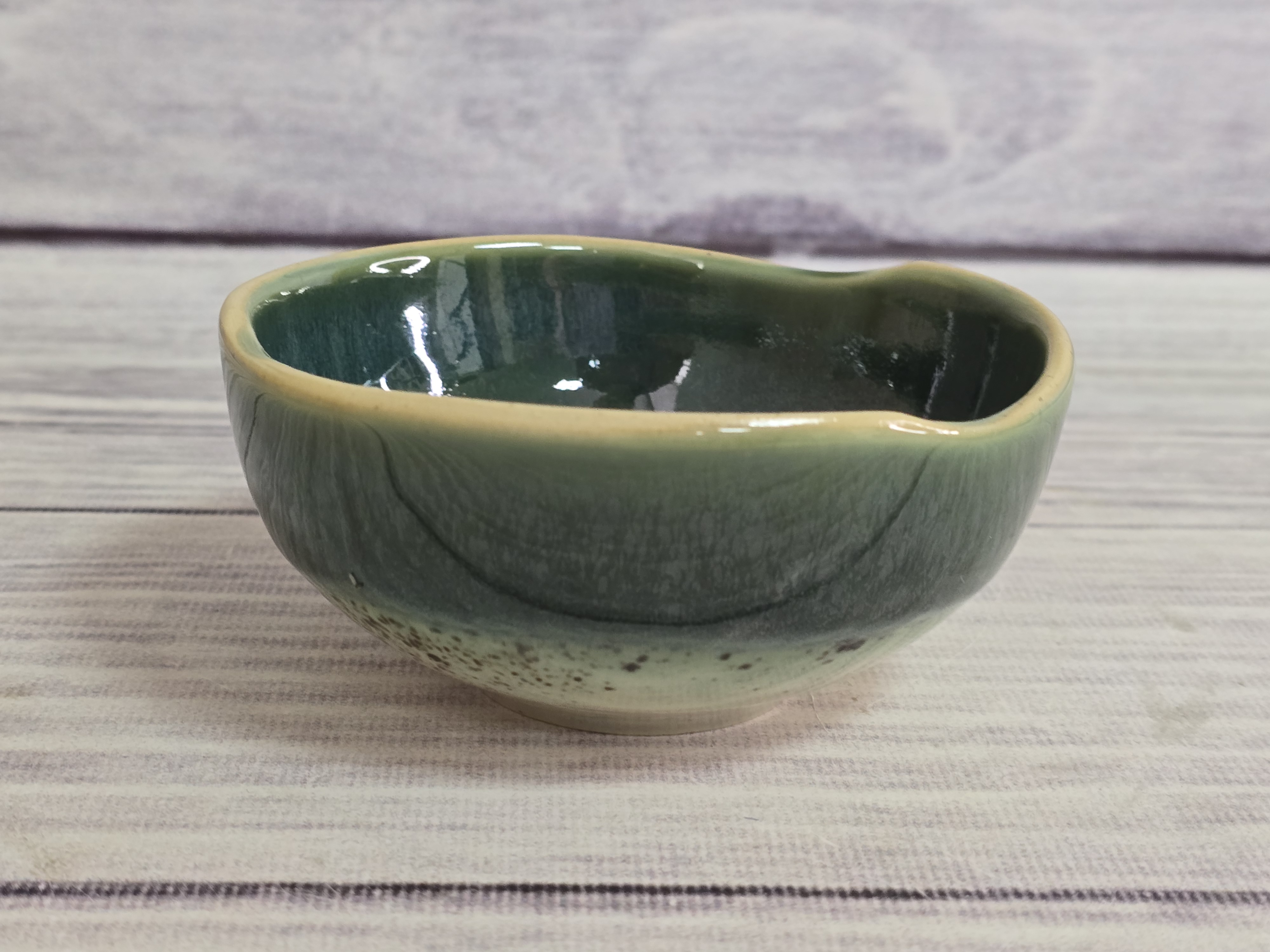 Элегантная розетка organico grande идеально подойдет для подачи таких вкусовых дополнений как сметана, кетчуп и других соусов, которые дополняют основное блюдо. Зеркальная зеленая глянцевая поверхность на кремовом фоне с загадочными разводами, бликами и черными крапинами.