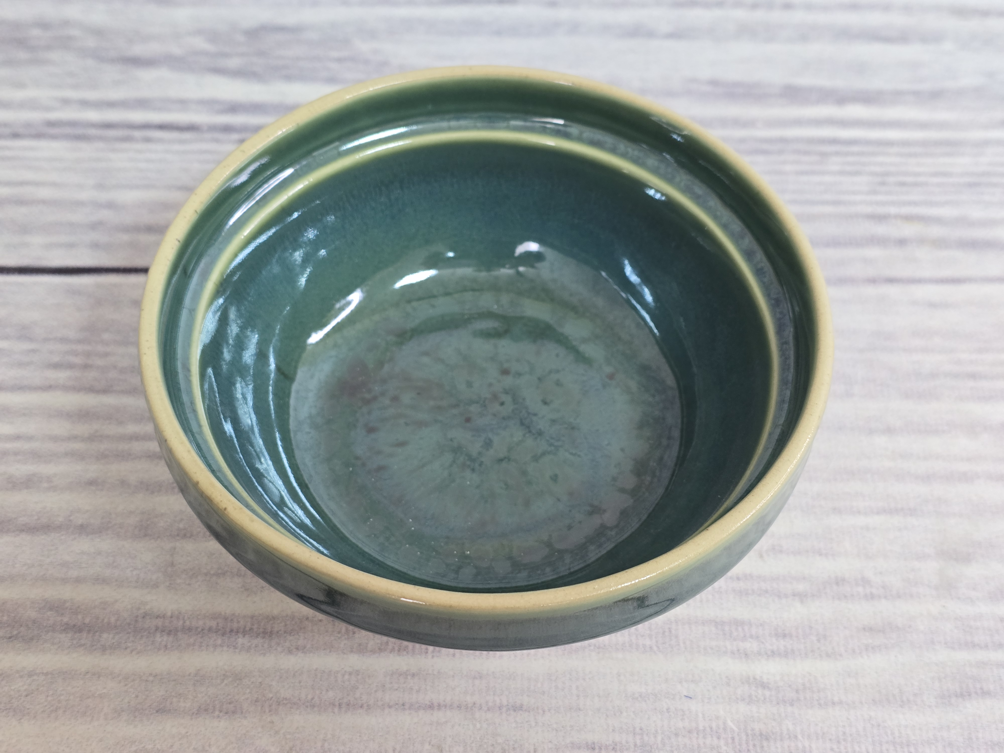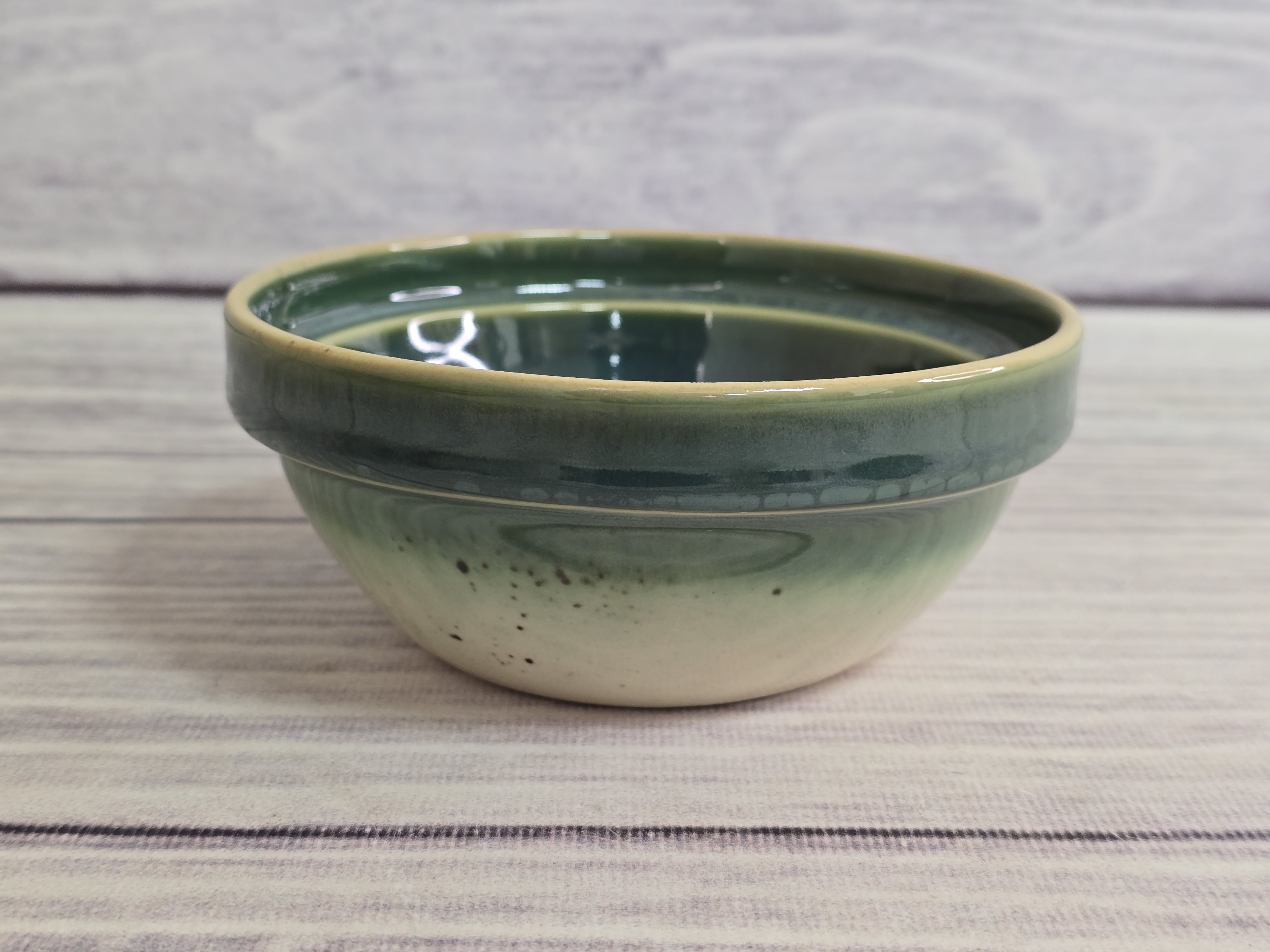 Компактный салатник, который может быть использован и для первых блюд. Штабелируется и экономит место. Пригоден для использования в посудомоечной машине и микроволновой печи. Зеркальная зеленая глянцевая поверхность на кремовом фоне с загадочными разводами, бликами и черными крапинами.
