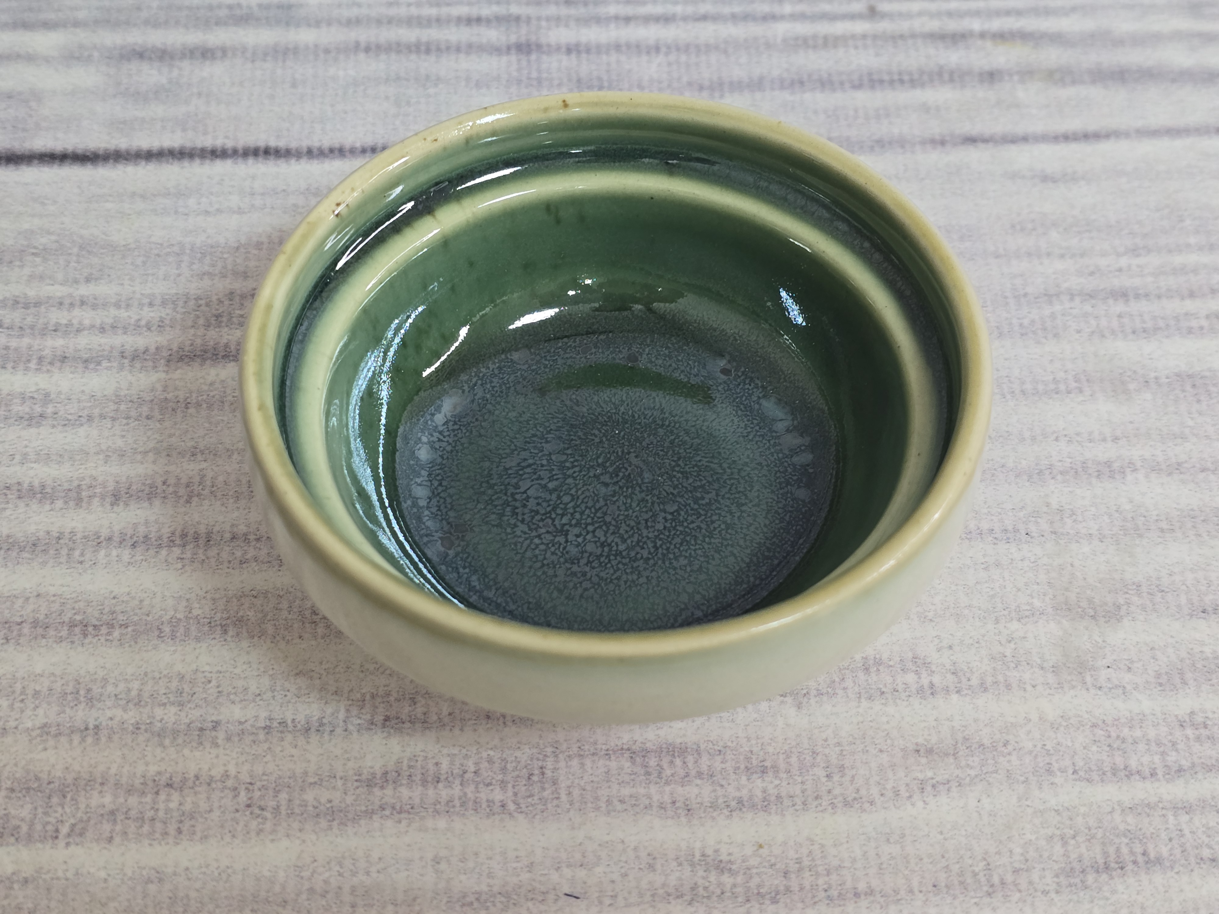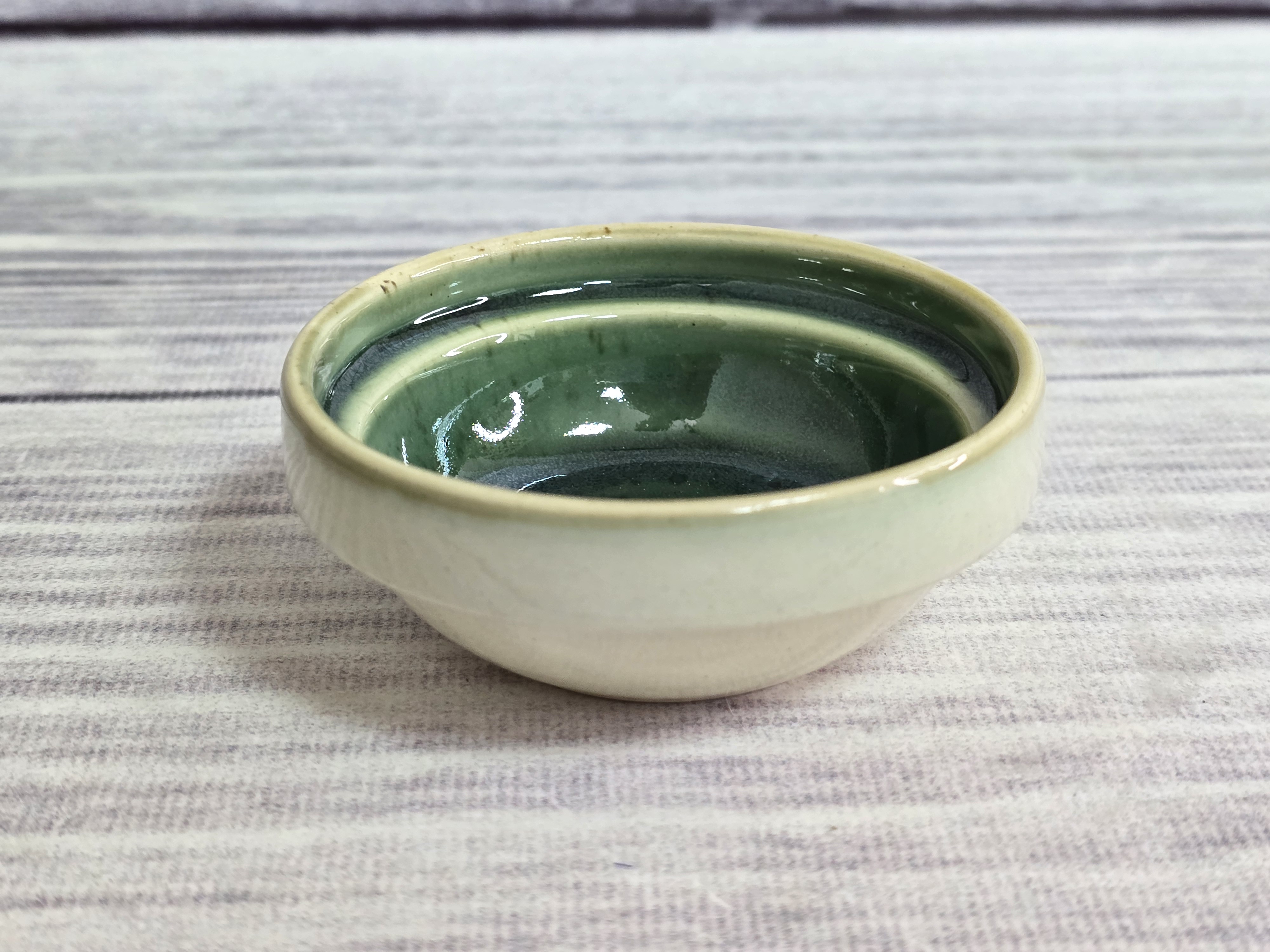 Фарфоровый соусник для подачи различных соусов, которые дополняют основное блюдо. Красивое, удобное и очень нужное изделие, которое будет приятным штрихом к полноценной сервировке. Пригоден для использования в посудомоечной машине и микроволновой печи. Зеркальная зеленая глянцевая поверхность на кремовом фоне с загадочными разводами, бликами и черными крапинами.