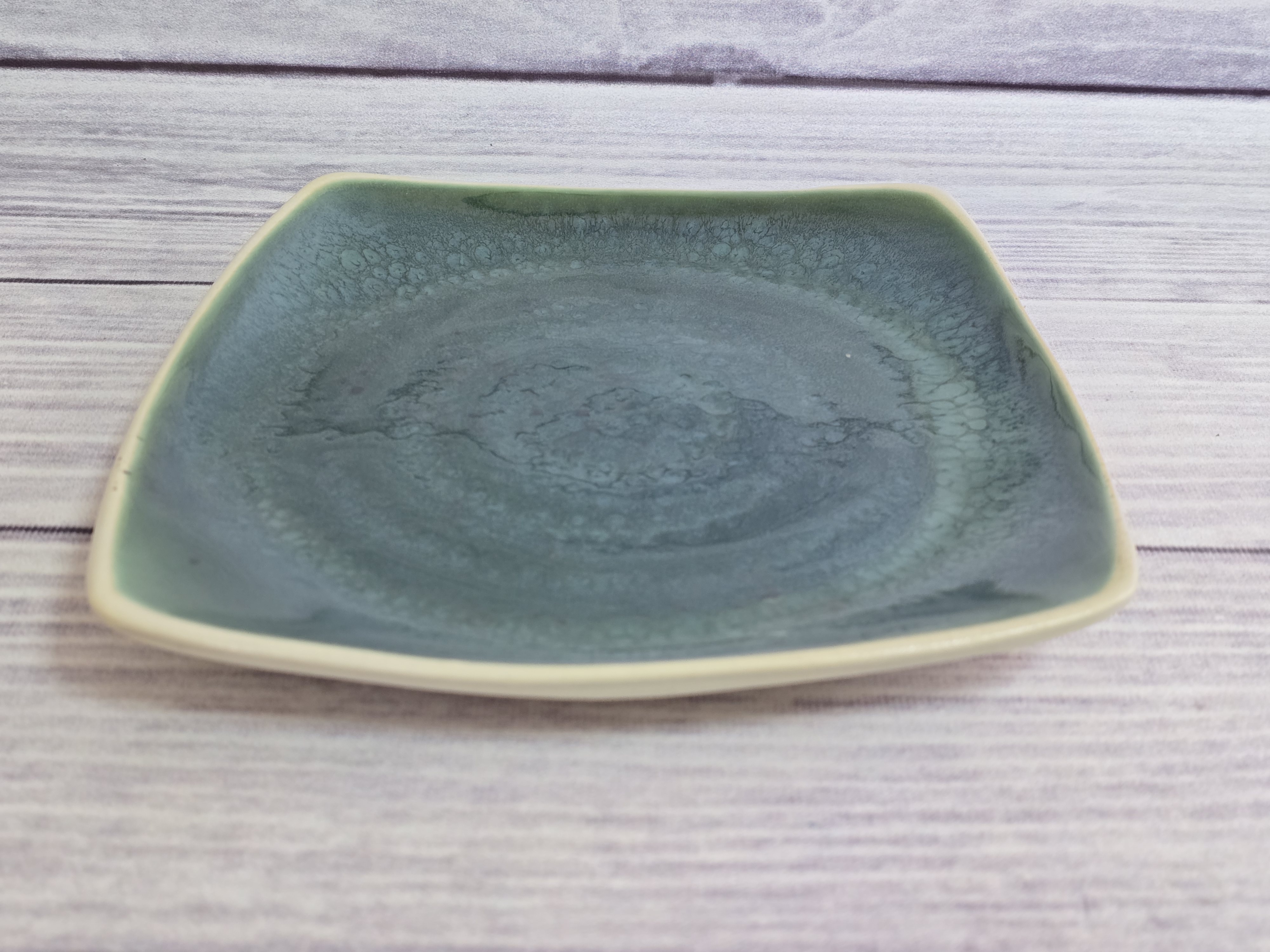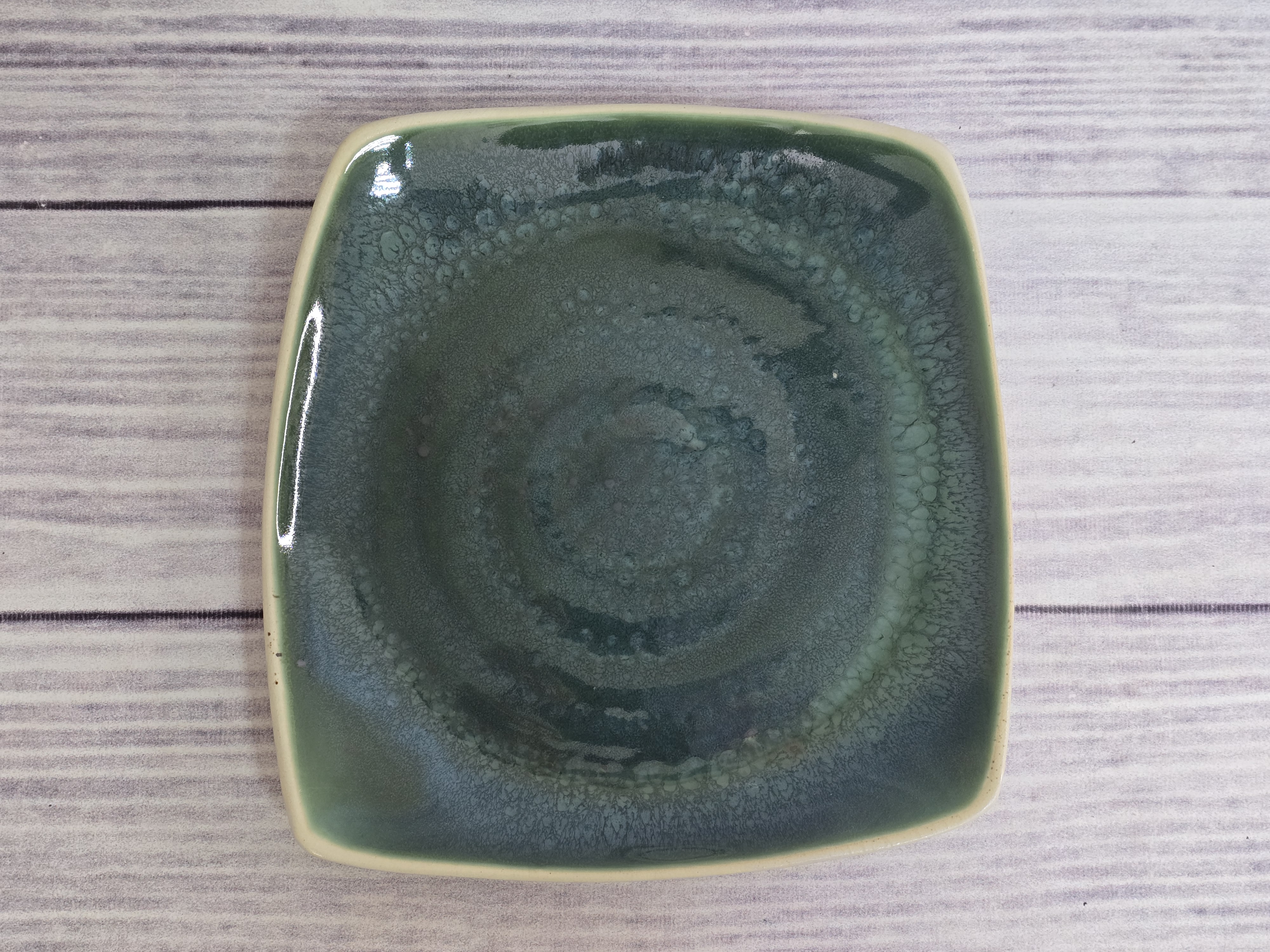Тарелка di modo ассиметричной формы с рельефной поверхностью. Оригинальная форма, утолщенные края. Для стильной подачи блюд и подчеркивания интерьера заведения. Пригодна для использования в посудомоечной машине и микроволновой печи. Зеркальная зеленая глянцевая поверхность на кремовом фоне с загадочными разводами, бликами и черными крапинами.