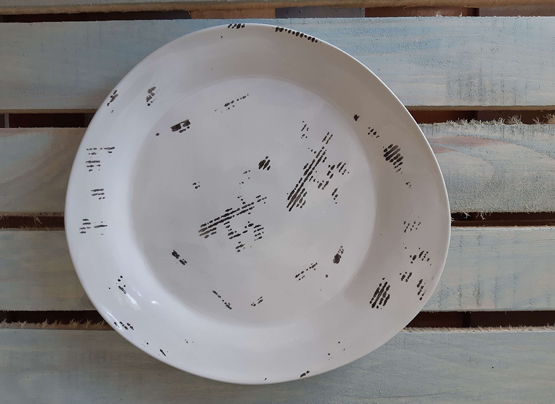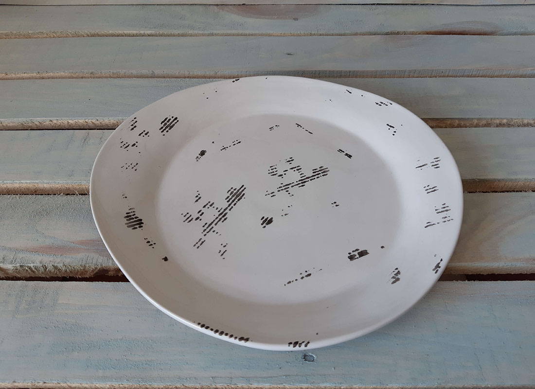 Тарелка больших размеров неправильной формы. Оригинальный дизайн позволяет сделать красивую выкладку блюда в соответствии с замыслом шеф-повара. Как говорится – ничего лишнего – поданное на такой тарелке блюдо будет выглядеть необычно и вкусно. Глянцевая поверхность.