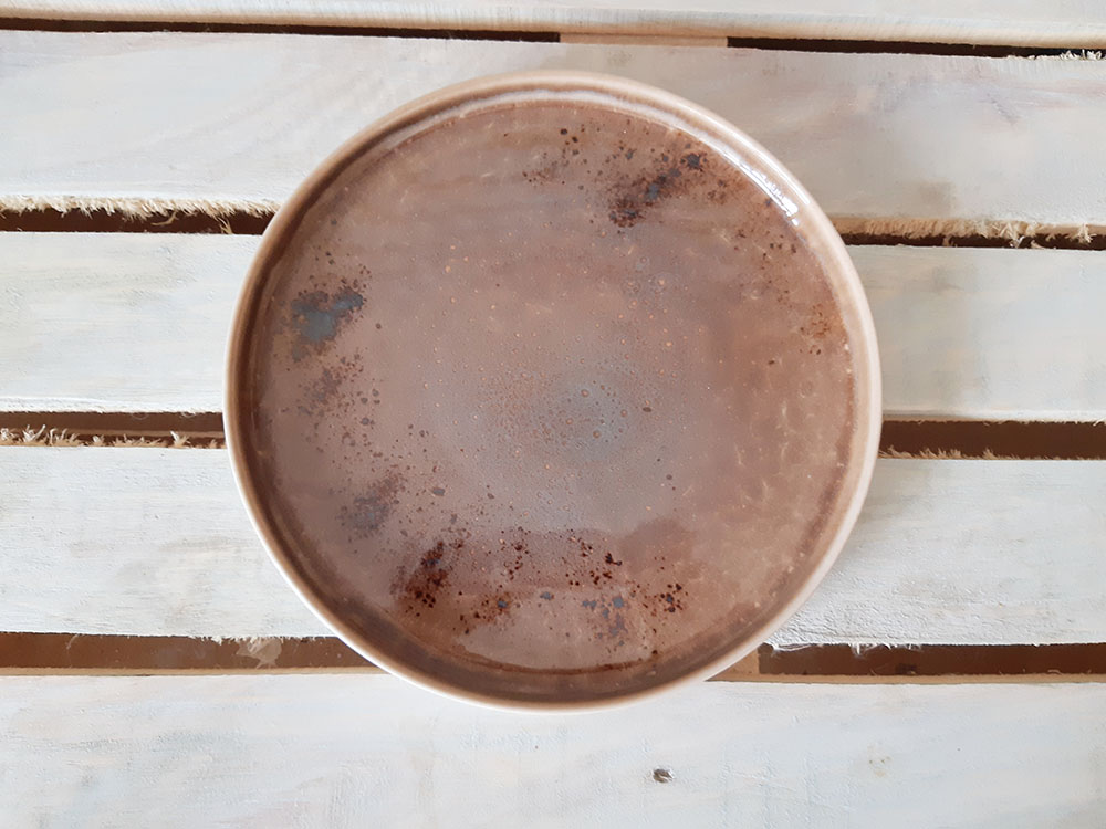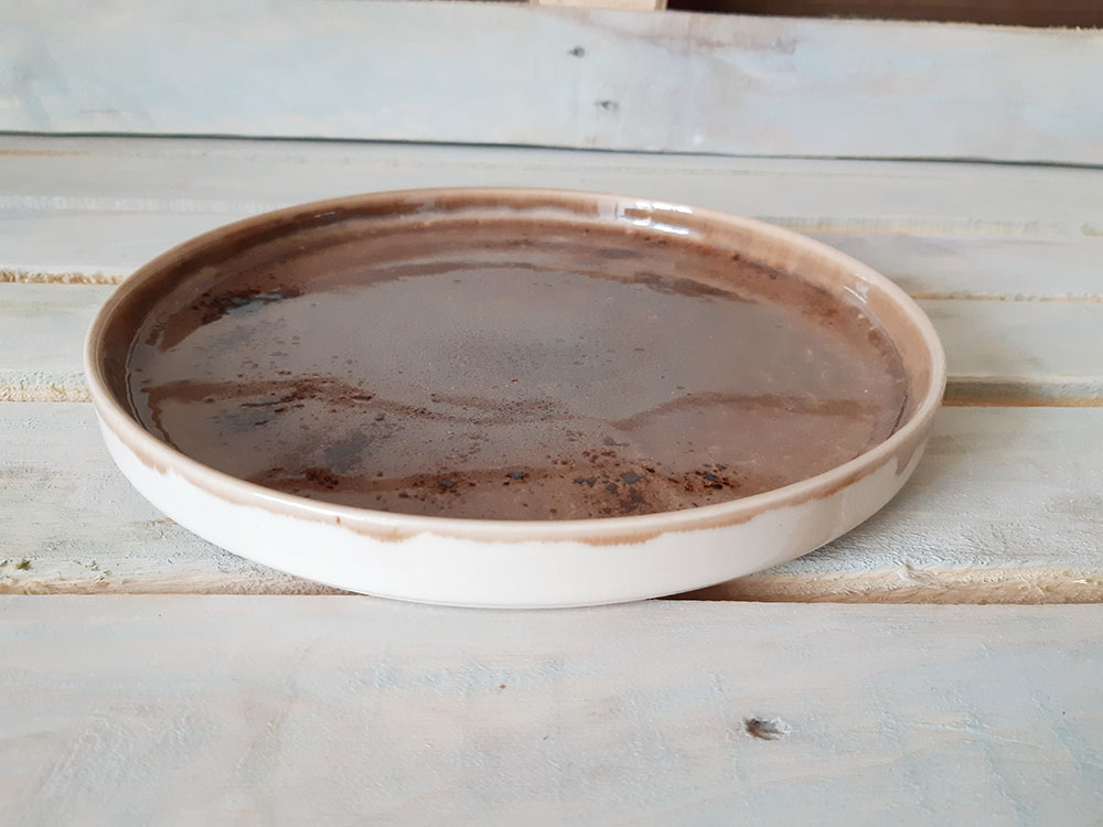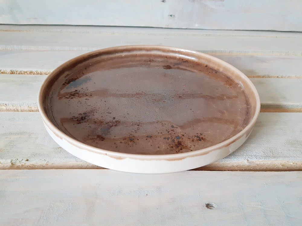 Наша тарелка идеально подходит для размещения сыров, закусок и нарезки, подачи или приготовления пиццы. Модная форма помогает красиво подать разнообразные кулинарные шедевры. Зеркальная глянцевая поверхность c серо-коричнево-белыми загадочными разводами, бликами и черными крапинами.