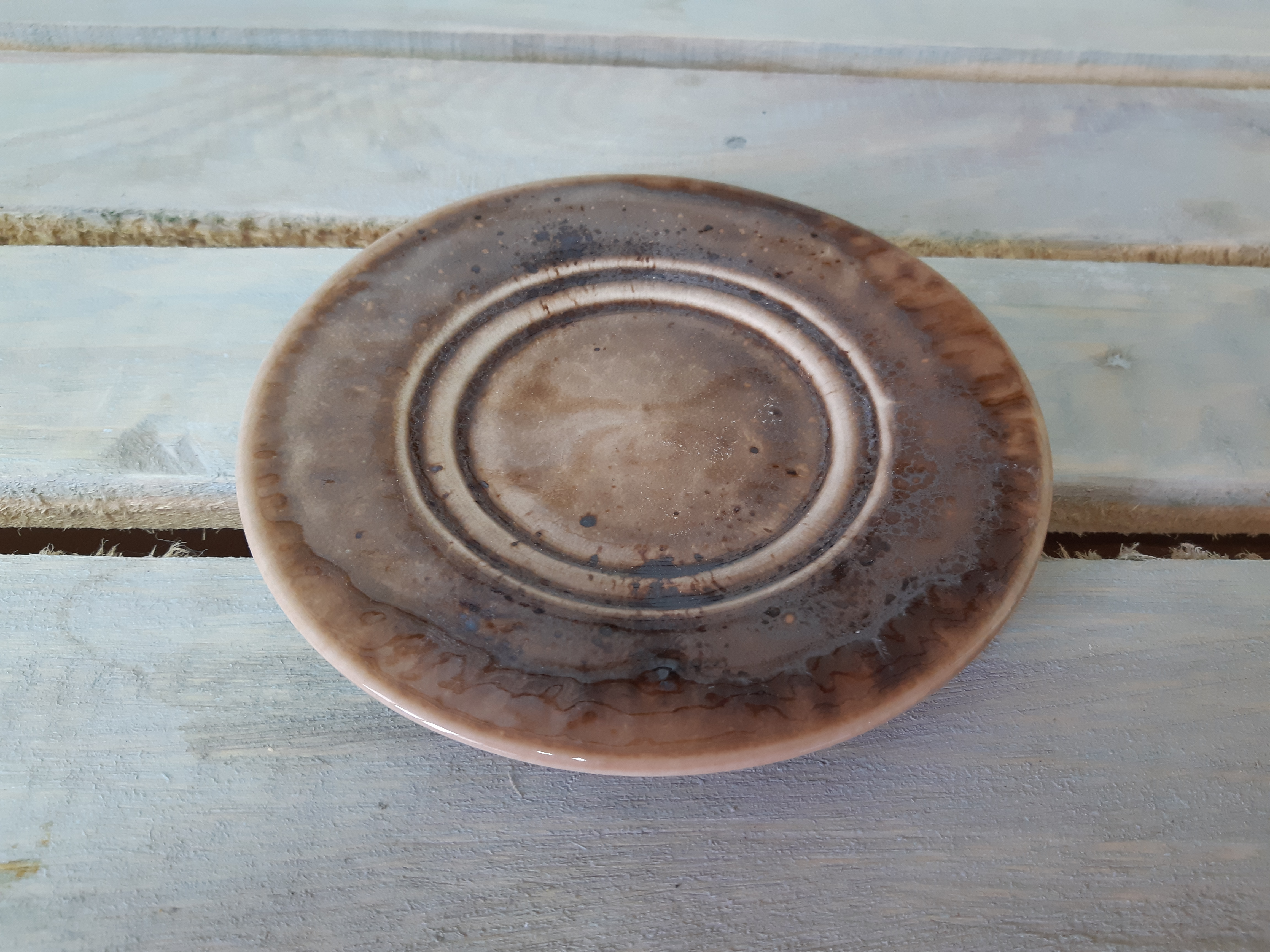 Универсальное блюдце для сервировки, может использоваться как подставка под чашку и бульонницу. Специальные бортики предотвращают соскальзывание чашки. Зеркальная глянцевая поверхность c серо-коричнево-белыми загадочными разводами, бликами и черными крапинами
