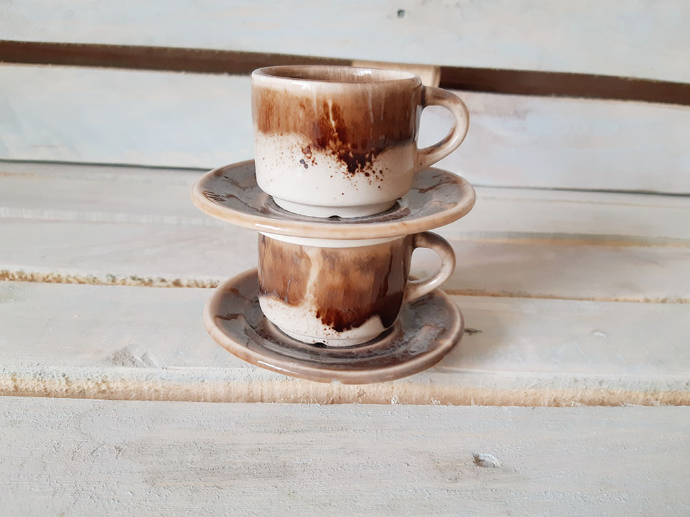 Оригинальная штабелируемая чашка с блюдцем. Идеально подойдет для подачи как эспрессо, так и чая. Штабелируется и экономит место. Пригодна для использования в посудомоечной машине и микроволновой печи. Зеркальная глянцевая поверхность c серо-коричнево-белыми загадочными разводами, бликами и черными крапинами.