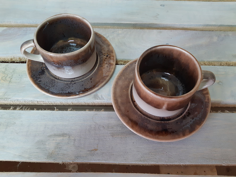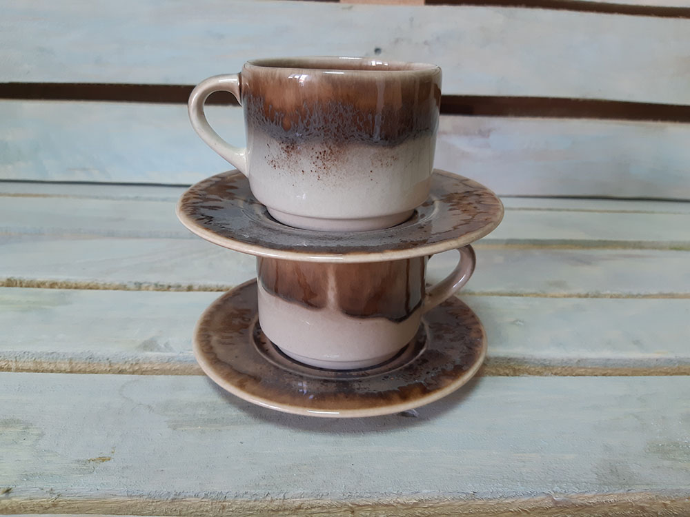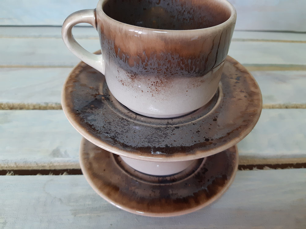 Элегантный дизайн чашки с удобным блюдцем. Идеальна для подачи кофе. Штабелируется и экономит место. Чашки друг на друга можно ставить свыше 10 шт. Пригодна для использования в посудомоечной машине и микроволновой печи. Зеркальная глянцевая поверхность c серо-коричнево-белыми загадочными разводами, бликами и черными крапинами.