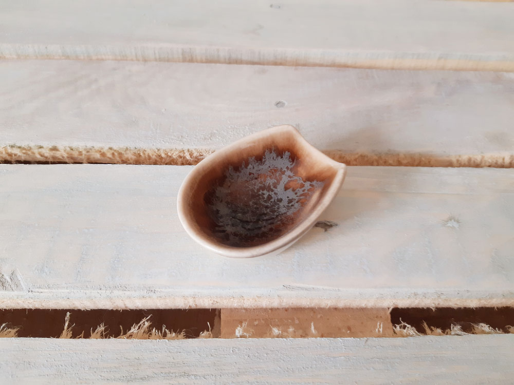 Фарфоровая подставка под фарфоровую ложку для мисо-супа – это одна из составляющих частей общего набора, состоящего из ложки и подставки. Набор отличается небольшими размерами и удобной ручкой ложки. Элегантный дизайн придает подставке особую утонченность и изысканность. Вы можете подобрать любое сочетание подставки и ложки. Зеркальная глянцевая поверхность c серо-коричнево-белыми загадочными разводами, бликами и черными крапинами.