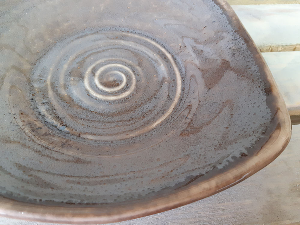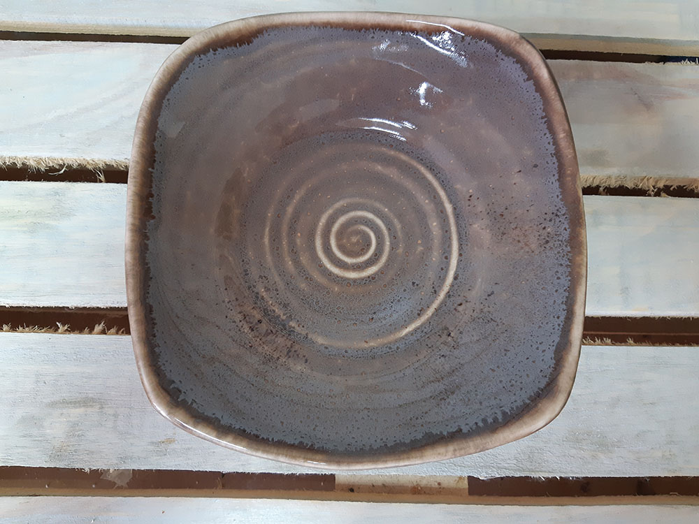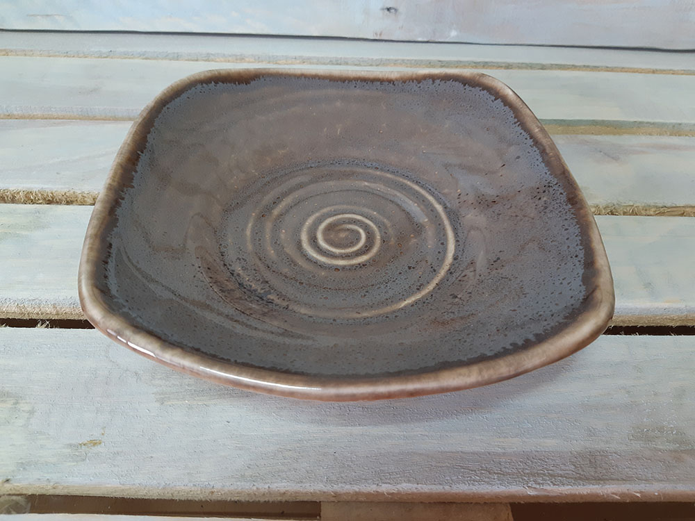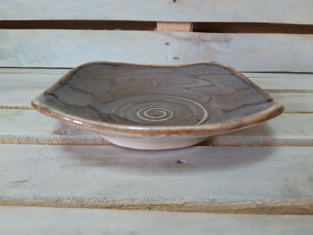 Фарфоровая тарелка с рельефной поверхностью, имитирующей гончарную работу. Оригинальная форма придаст блюду изысканности и подчеркнет интерьер заведения. Идеальная для подачи салатов и десертов. Является дополнением к тарелкам di modo и di modo profondo. Пригодна для использования в микроволновой печи и посудомоечной машине. Зеркальная глянцевая поверхность c серо-коричнево-белыми загадочными разводами, бликами и черными крапинами.