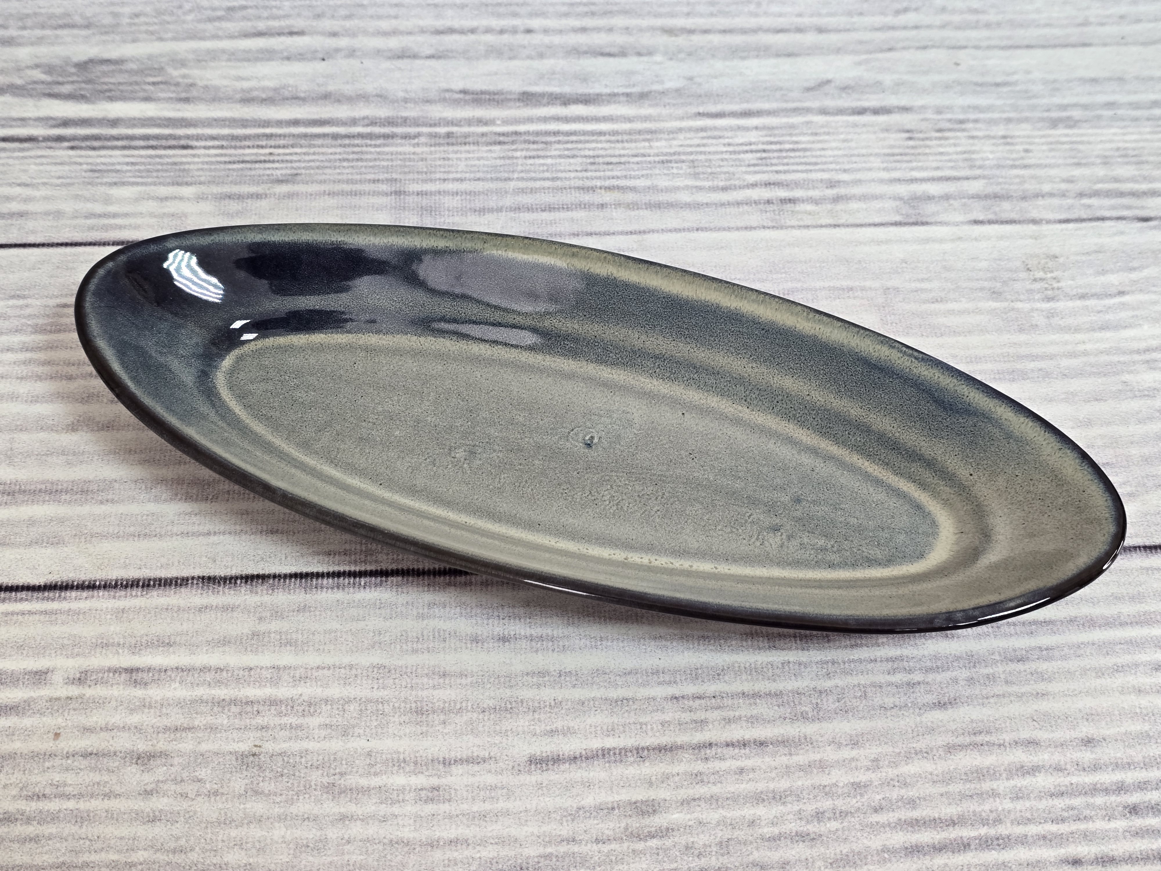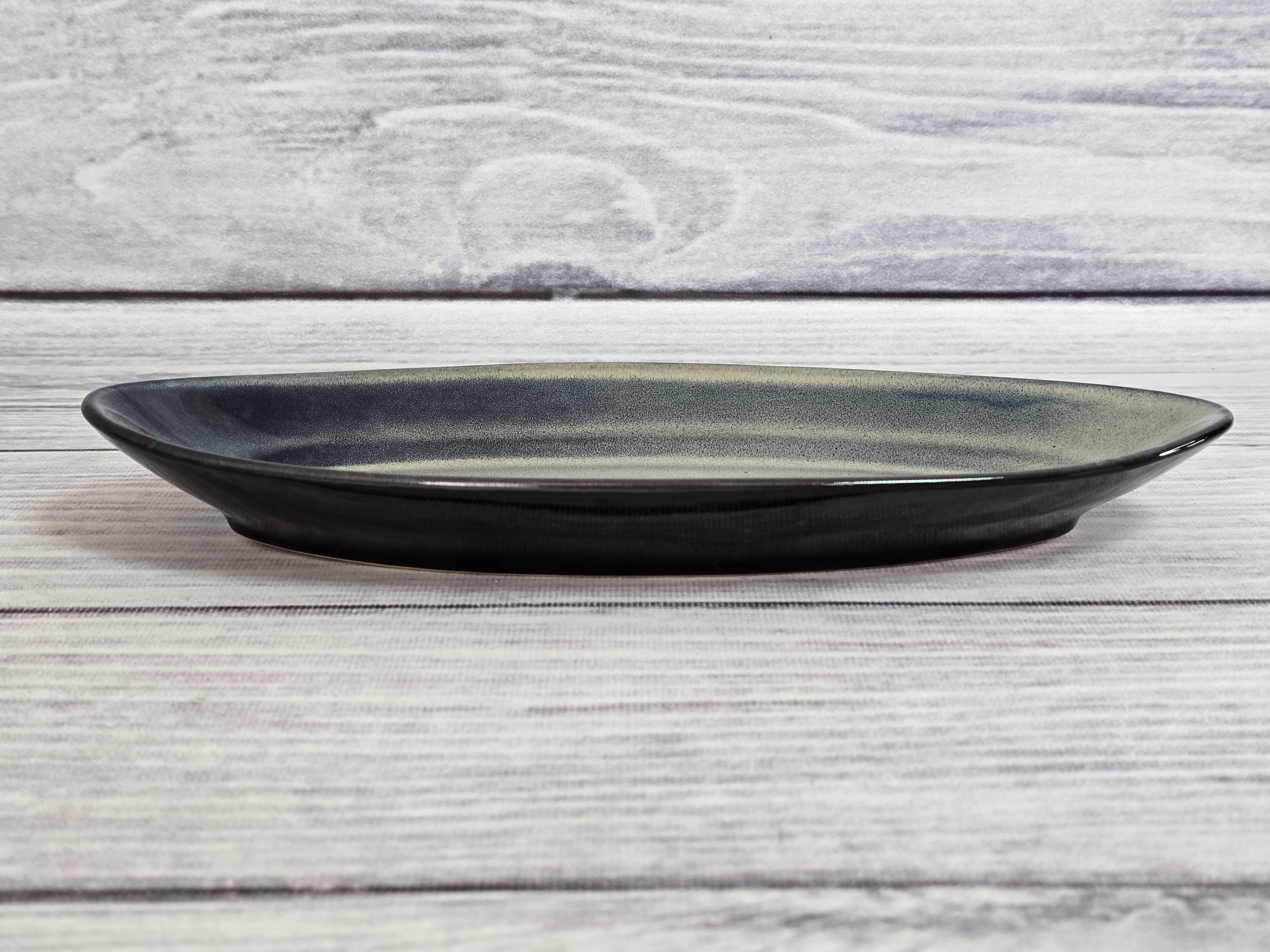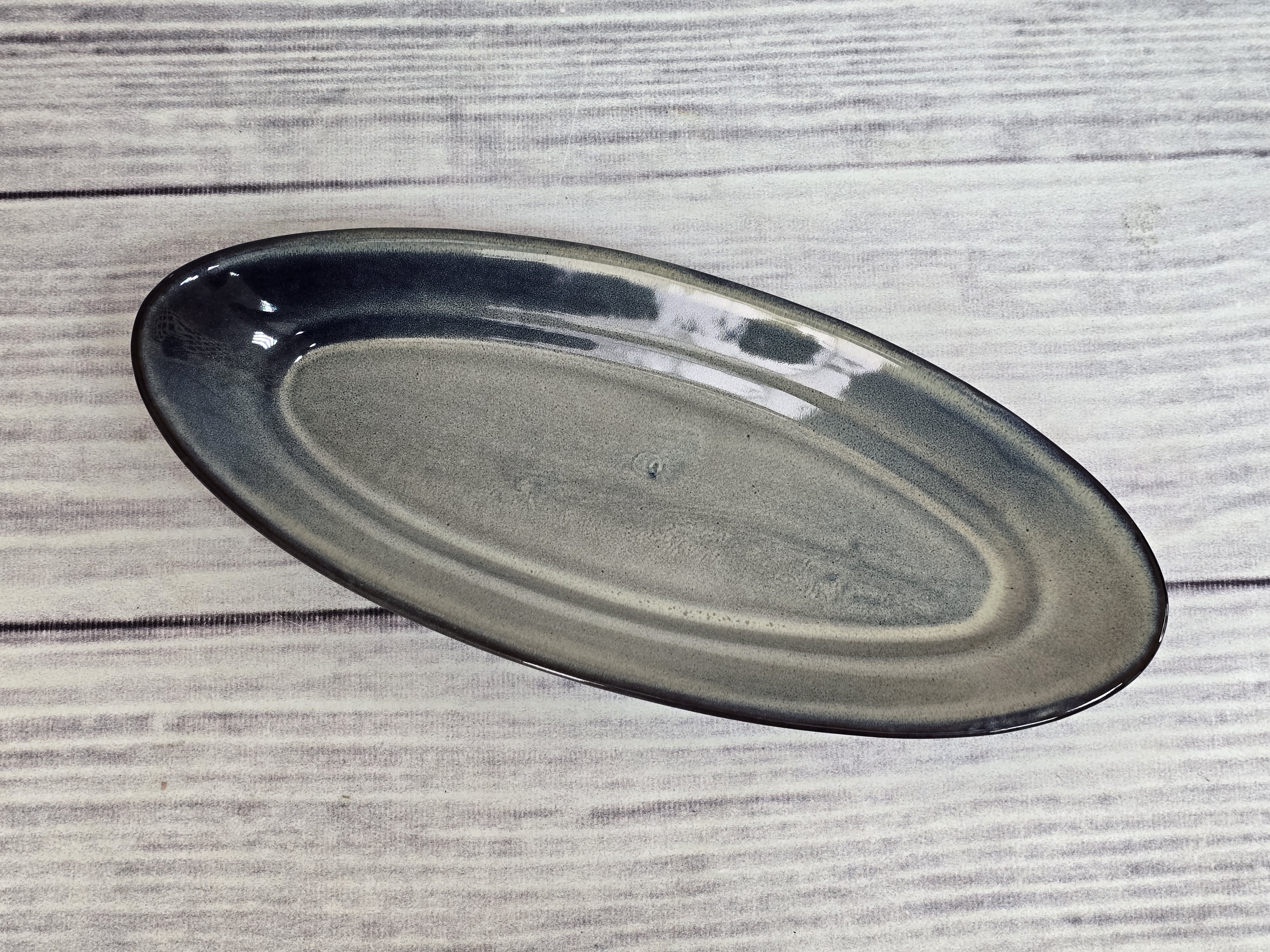 Сервировочное блюдо для подачи рыбы и любых других продуктов. Овальная форма позволяет подавать рыбу целиком, чего требуют многие блюда. Можно мыть в посудомоечной машинке. Глянцевая поверхность с бежево-синими хаотичными переливами.